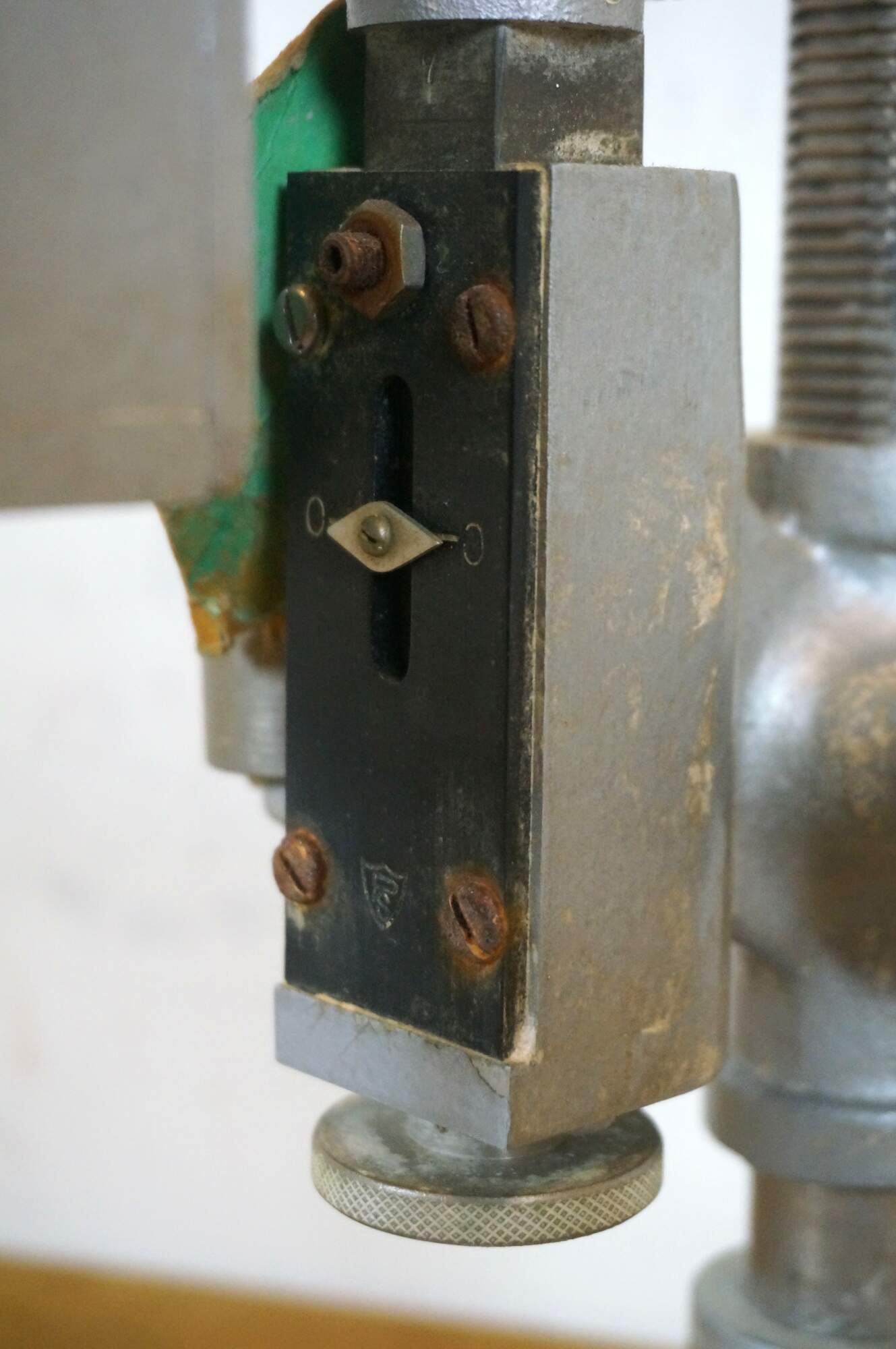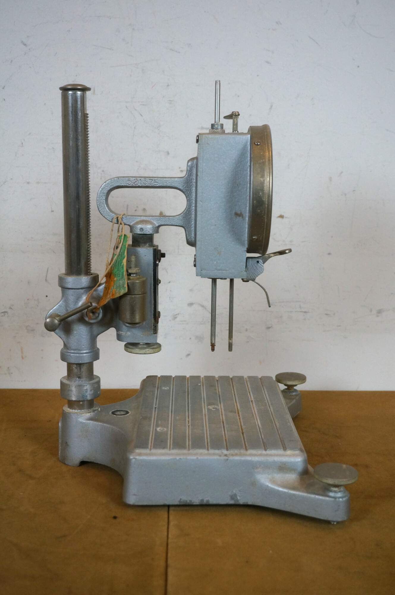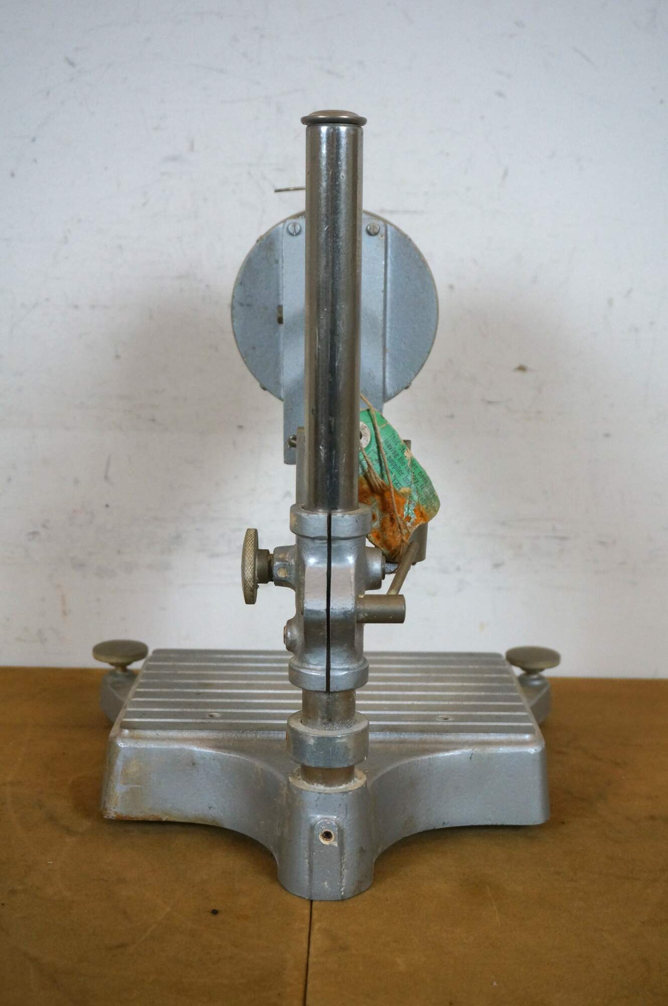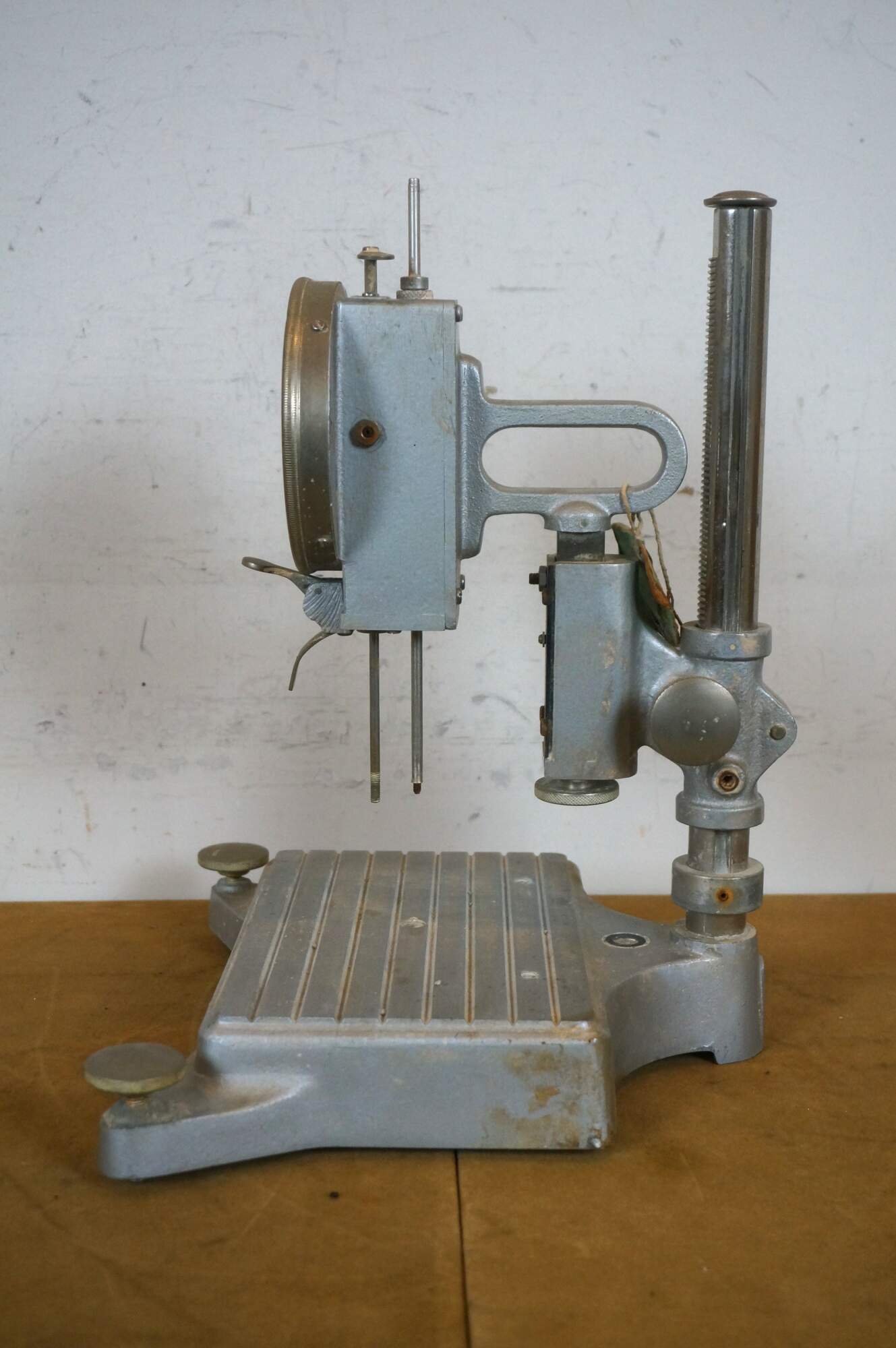 Vintage "Precision" Penetrometer with 1/10 Millimeter divisions produced by the Precision Scientific Company of Chicago, IL. Serial No. 11-Y-1. Base stamped 521417. Top stamped 521375. A penetrometer is a device that tests the strength of a material.