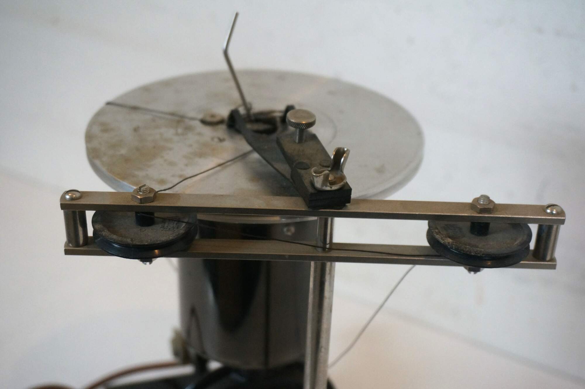 Pair of rare mid 20th century centrifuges produced by the W.M. Welch Scientific Company of Chicago, IL. Base stamped 1684 D. Previously property of Northern Arizona University Physics Department.
