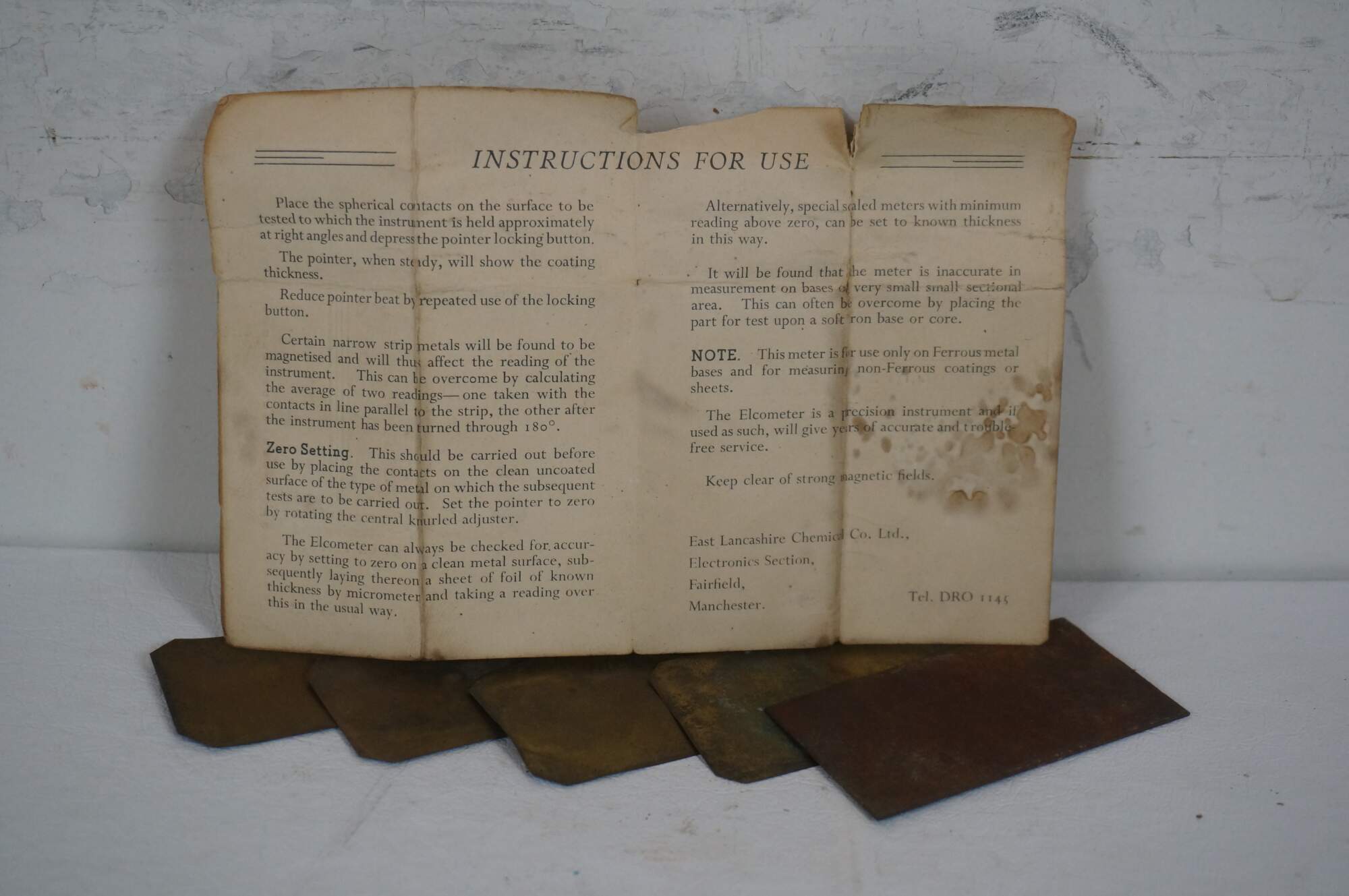 Vintage East Lancs Chemical Co LTD Elcometer gauge / tester with case and papers. Manchester England. Ferro Enamel Corp.