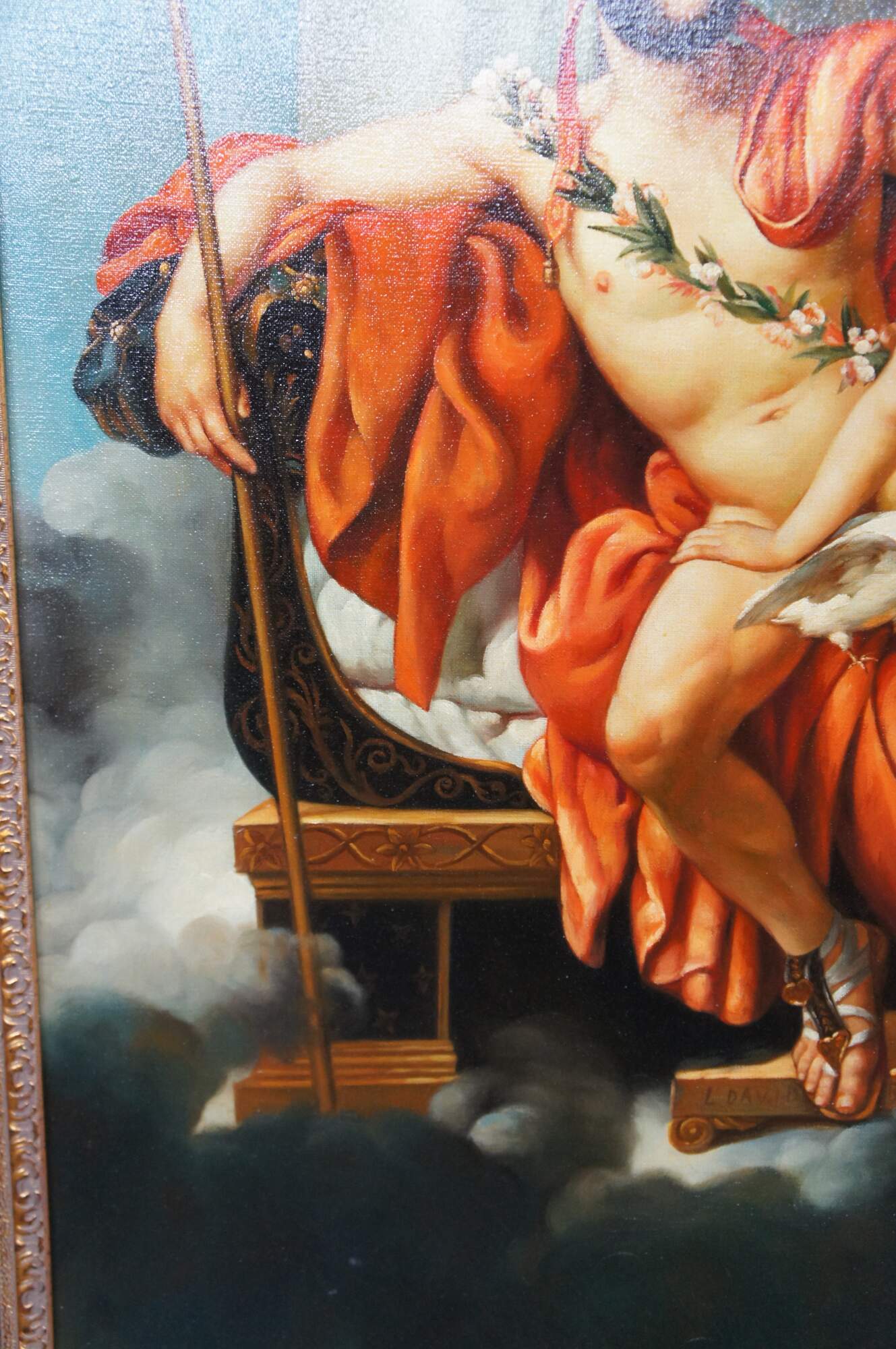 Mars Being Disarmed by Venus is the last painting produced by the French artist Jacques-Louis David. He began it in 1822 (aged 73) during his exile in Brussels and completed it three years later, before dying in an accident in 1825. The work combines idealization with elements of realism. Specifically, David integrated the idealized forms of mythological painting with a realist attention to detail. This combination of two seemingly incompatible principles also plays an important role in the themes of the painting, most notably in its treatment of masculinity and femininity.