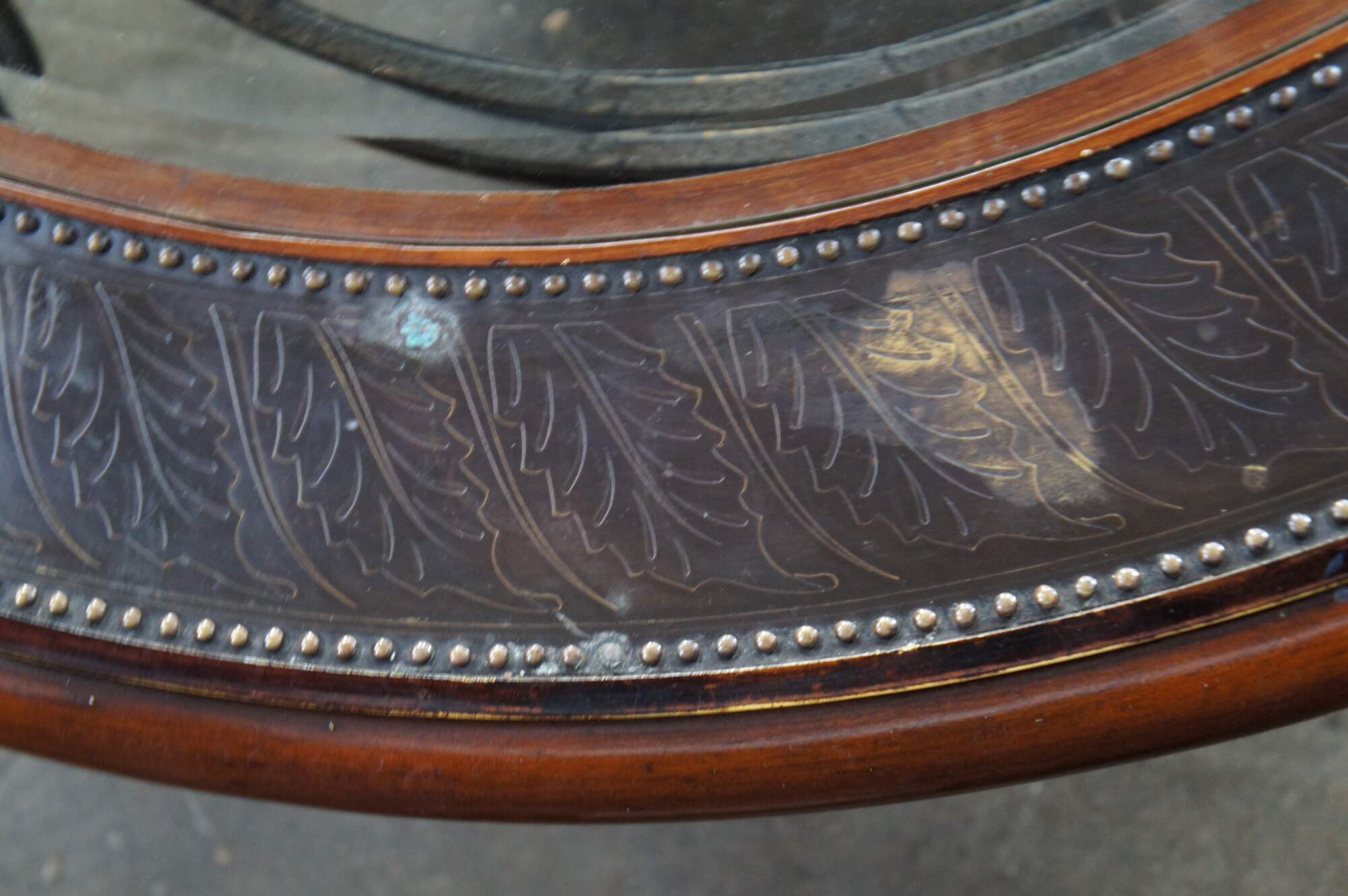 Good Vintage Condition; some staining and verdigris to the metal along the top. Finish wear, scuffing and marking to mahogany