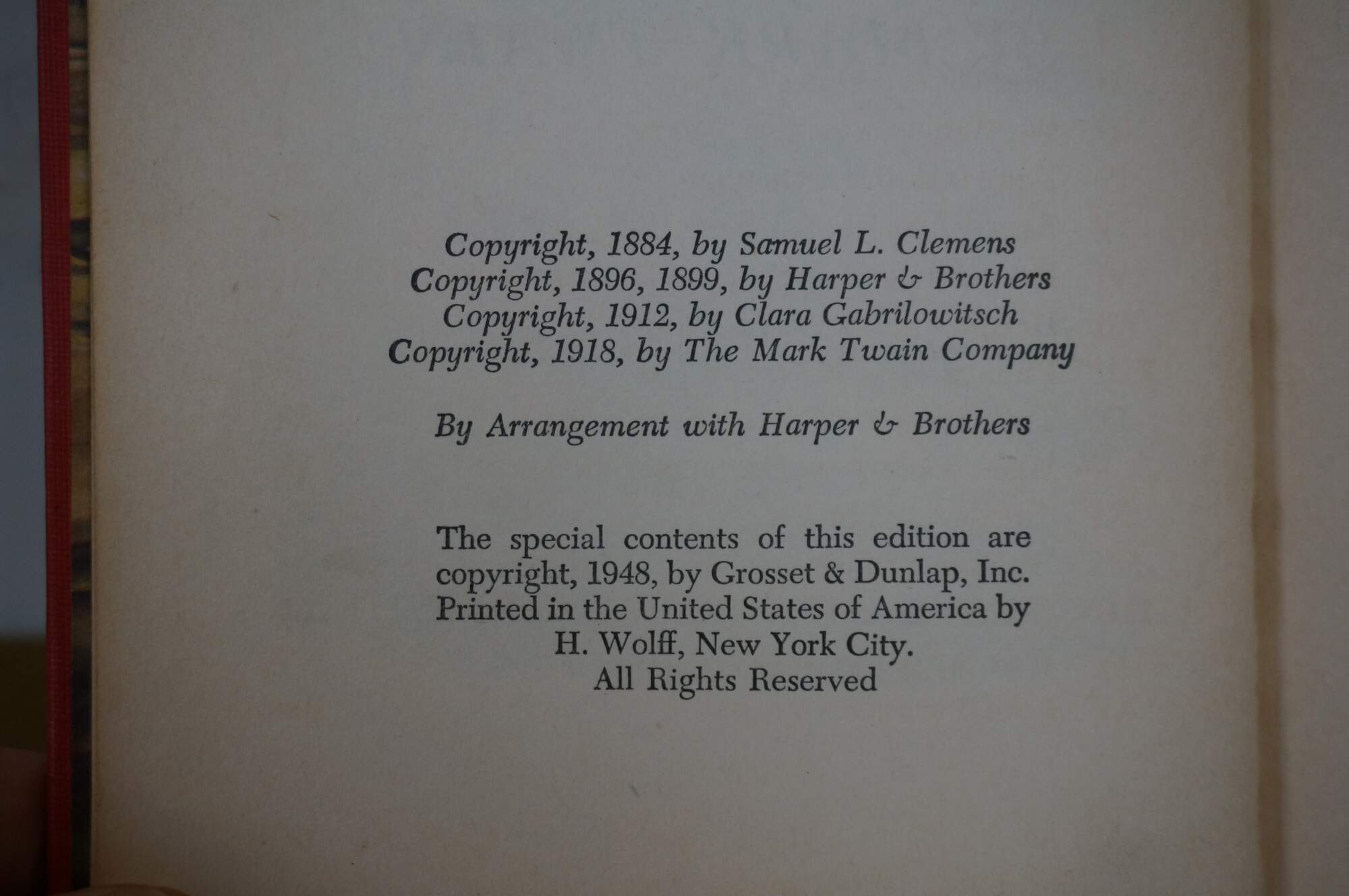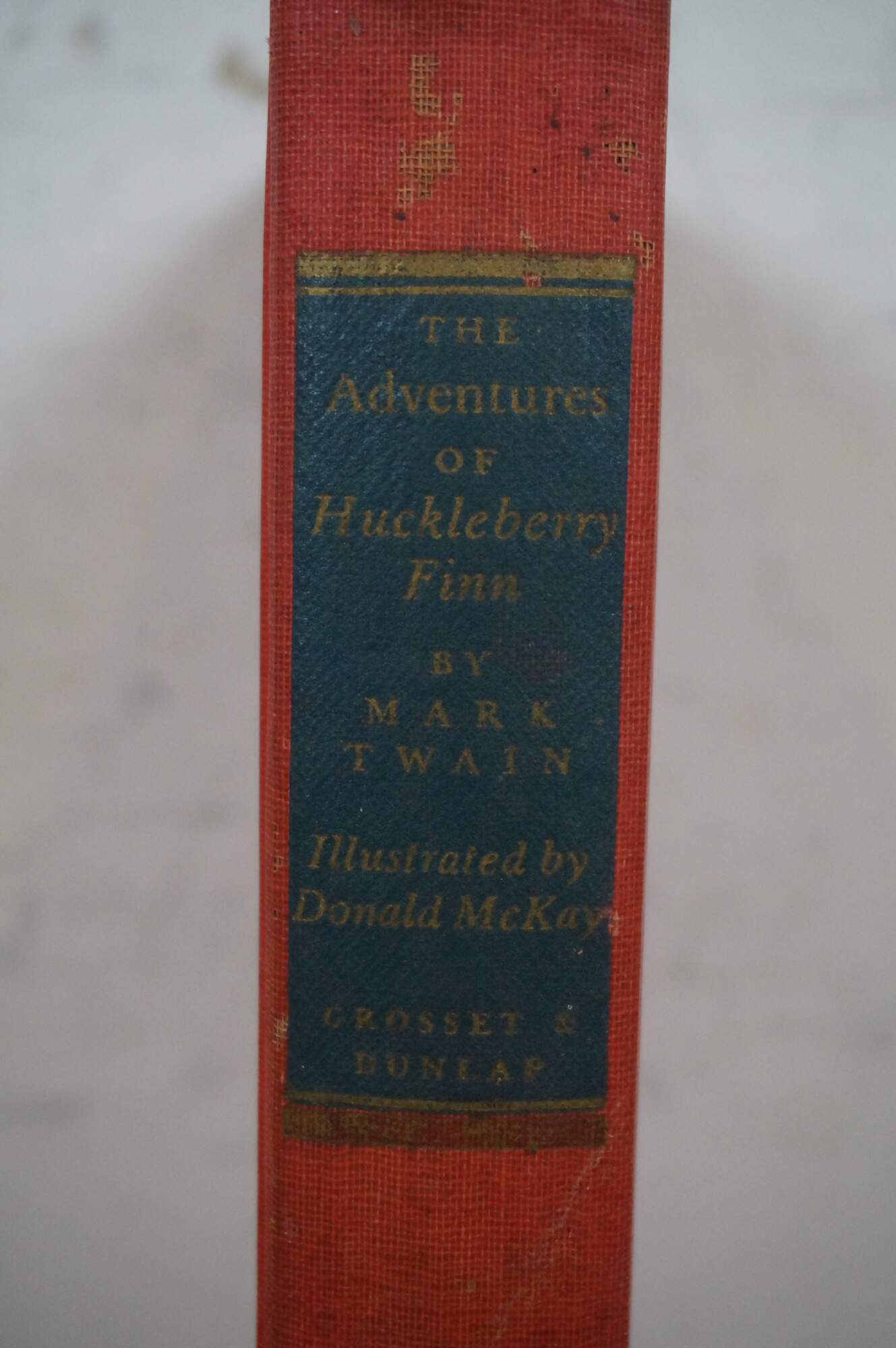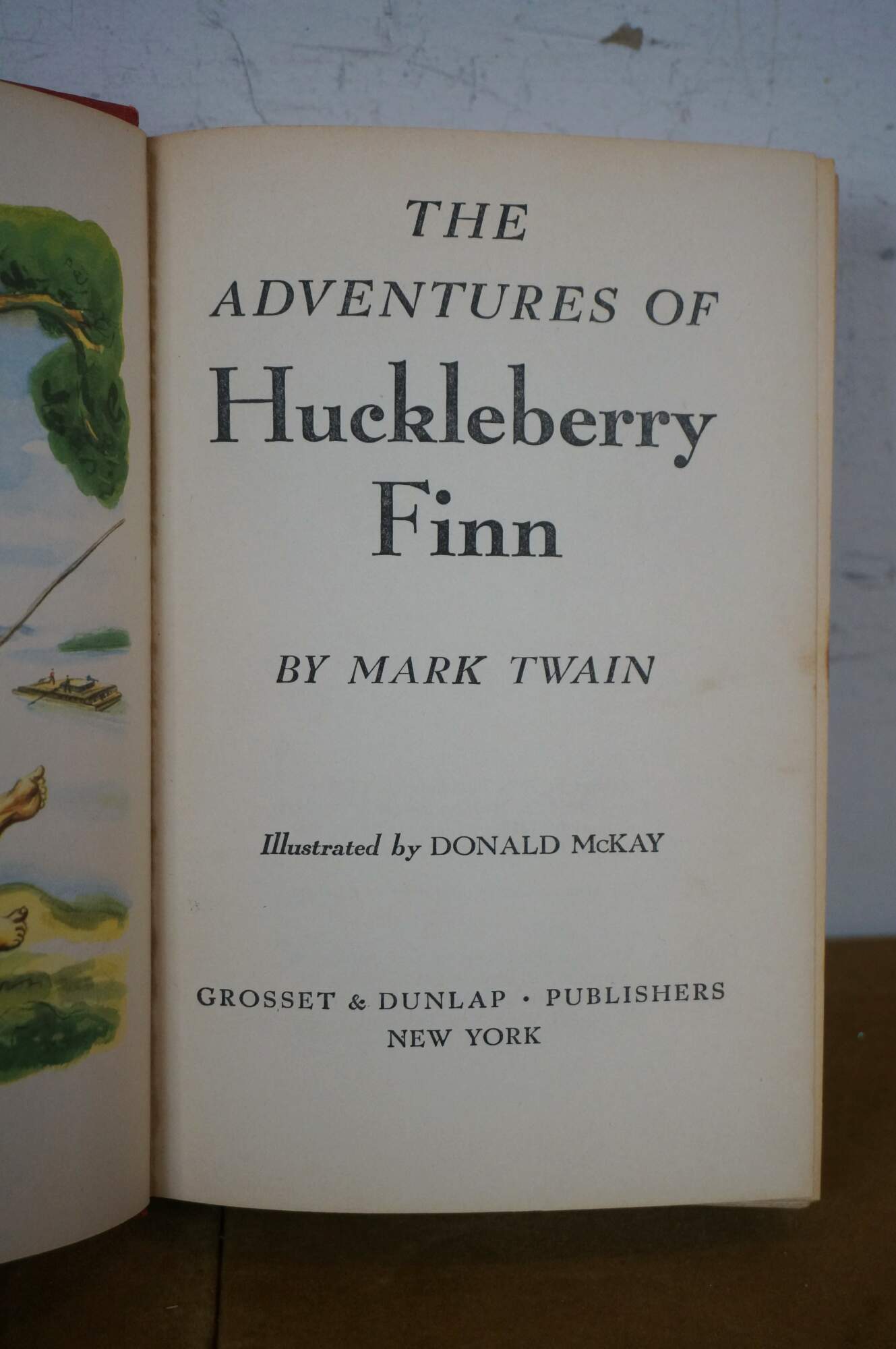 The Adventures of Huckleberry Finn - by Mark Twain - Illustrated by Donald McKay - Copyright / Published by Grosset & Dunlap, 1948 - Printed in the United States of America by H. Wolff - Hard cover, red cloth binding.