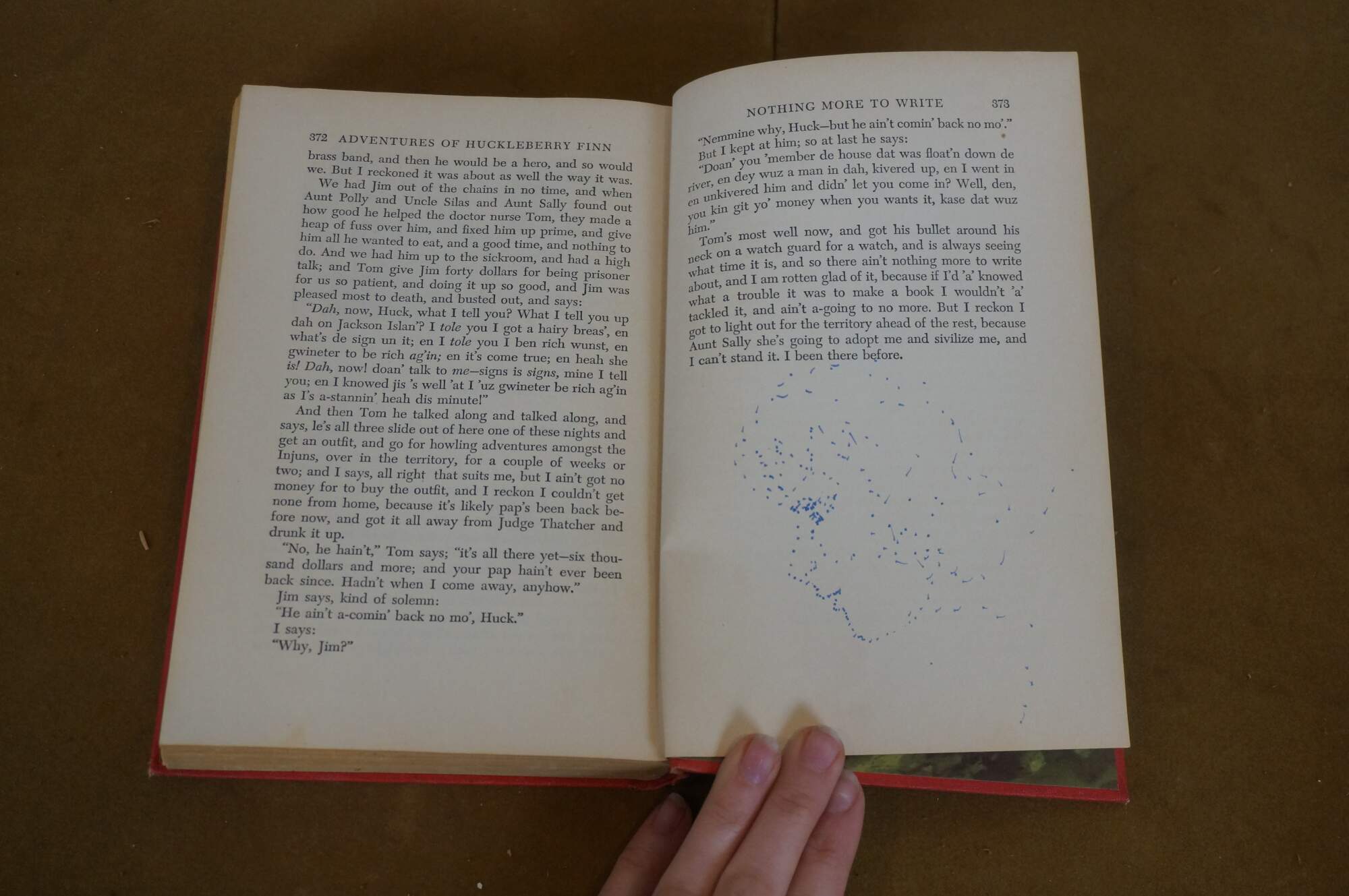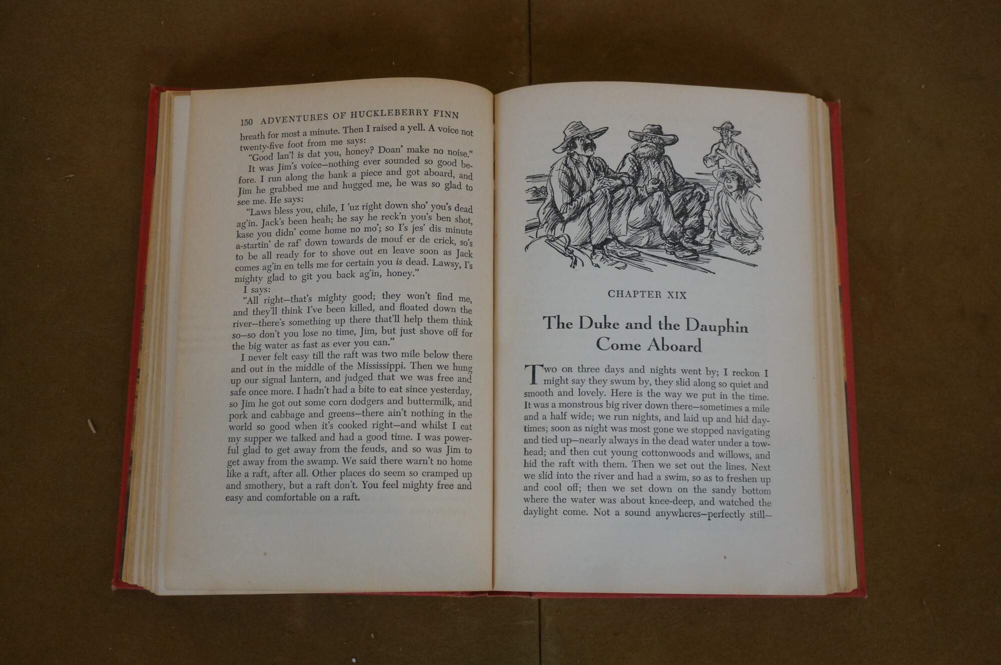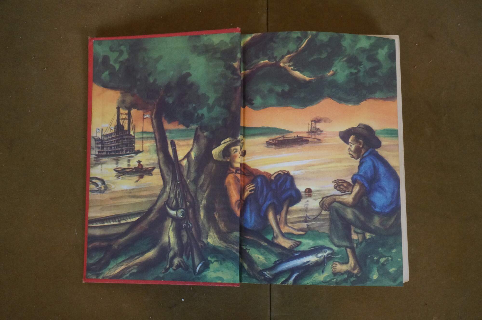 The Adventures of Huckleberry Finn - by Mark Twain - Illustrated by Donald McKay - Copyright / Published by Grosset & Dunlap, 1948 - Printed in the United States of America by H. Wolff - Hard cover, red cloth binding.