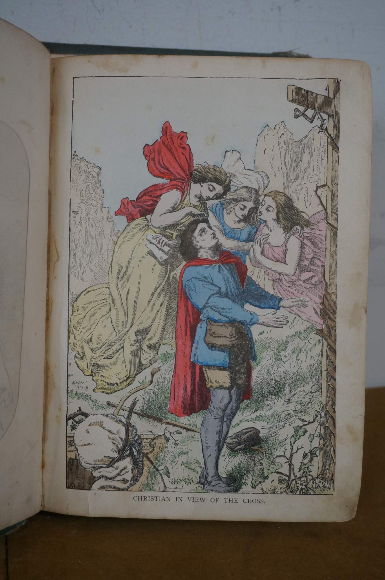 Late 19th to Early 20th century copy of The Pilgrim's Progress, From this World to That Which is to Come - By John Bunyan with Explanatory Notes by the Rev. Robert Maguire - Superfine Edition - Together with a Complete Account of the Life of John Bunyan - Illustrated with 130 Beautiful Engravings by F. Barnard, H.C. Selous, M. Paolo Priolo and others - To Which is Added The Little Pilgrim, a Poem - No publisher noted - Hard cover, blue cloth binding.