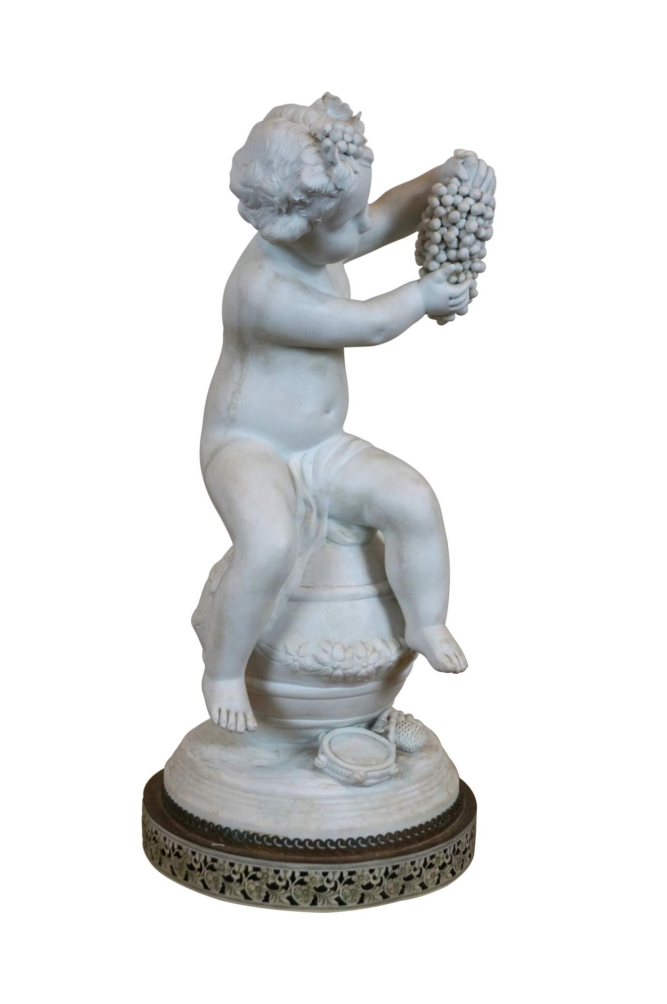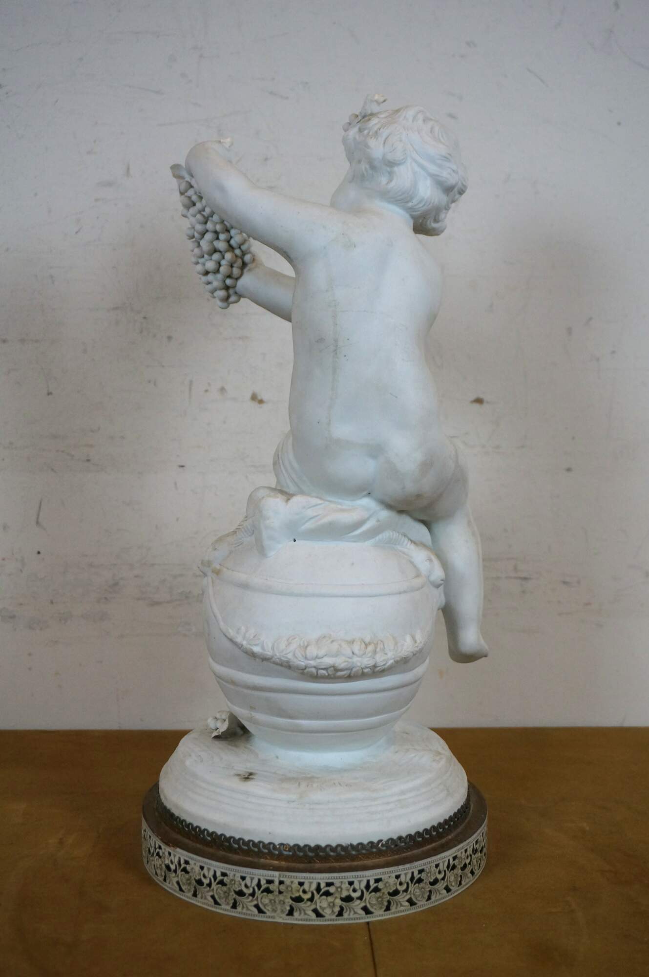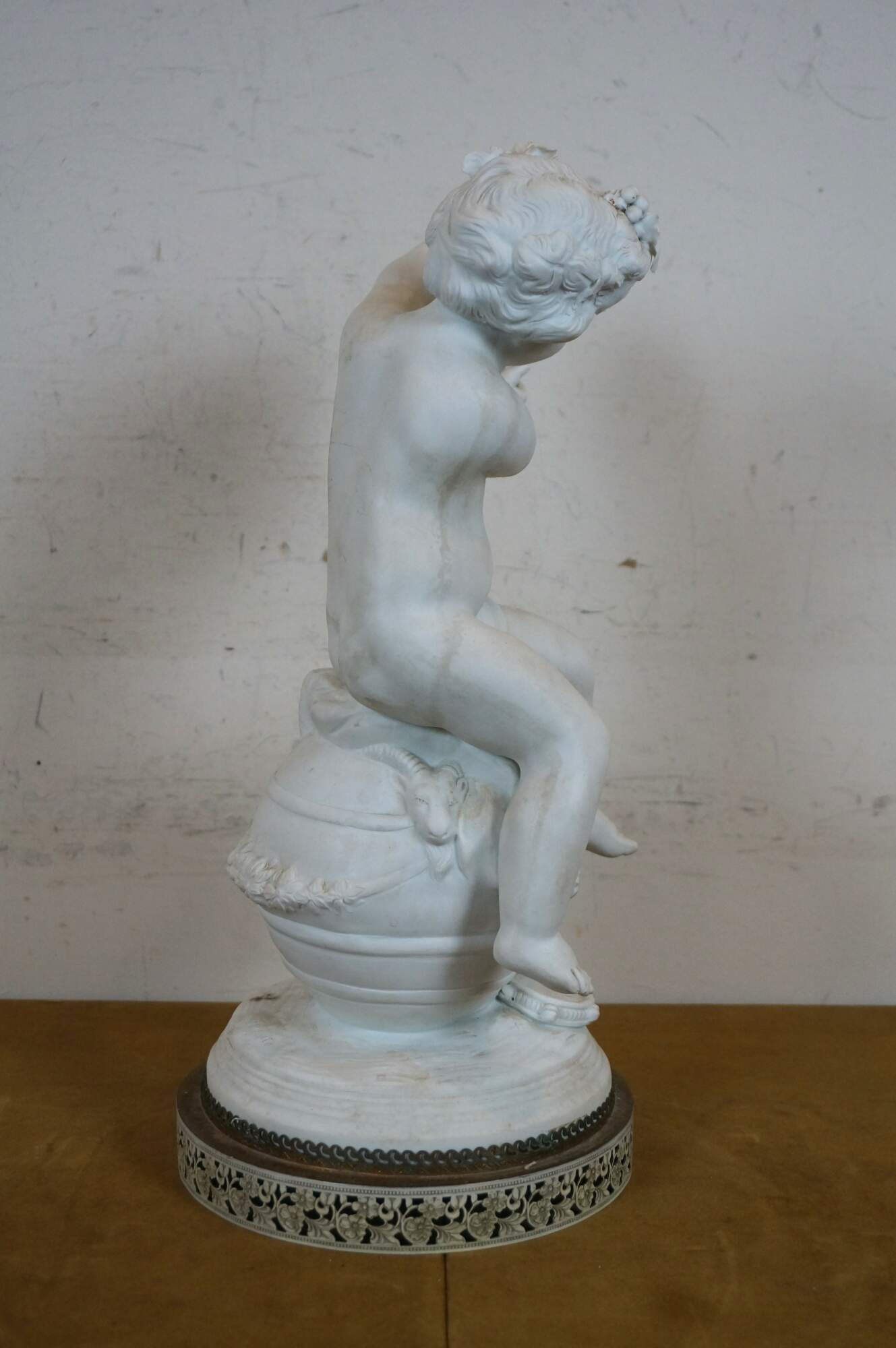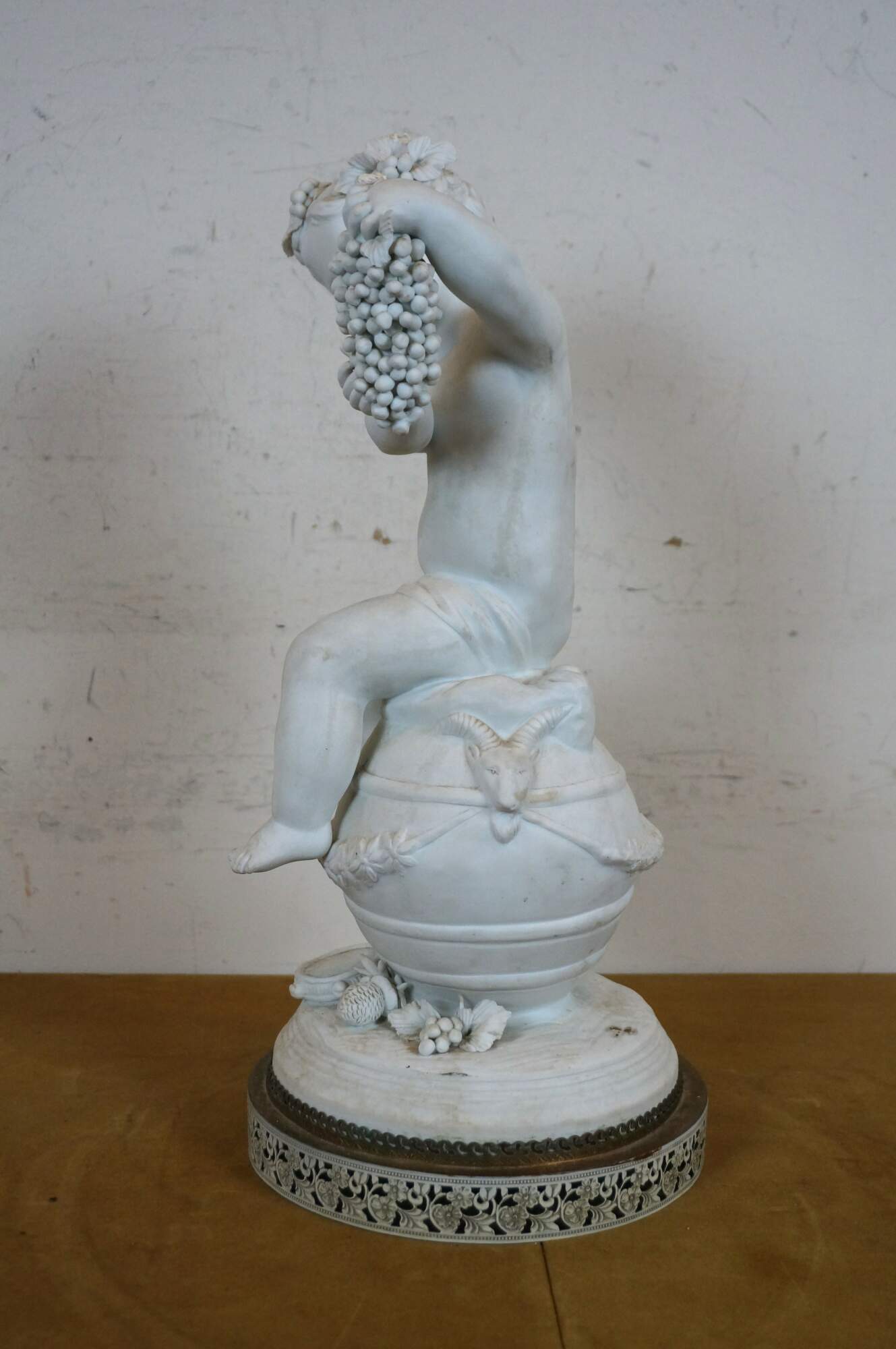Large bisque porcelain sculpture representing young Bacchus. France, Samson factory, circa 1920 - 1940, signed Fagotto (Armand Fagotto XIX - XX),