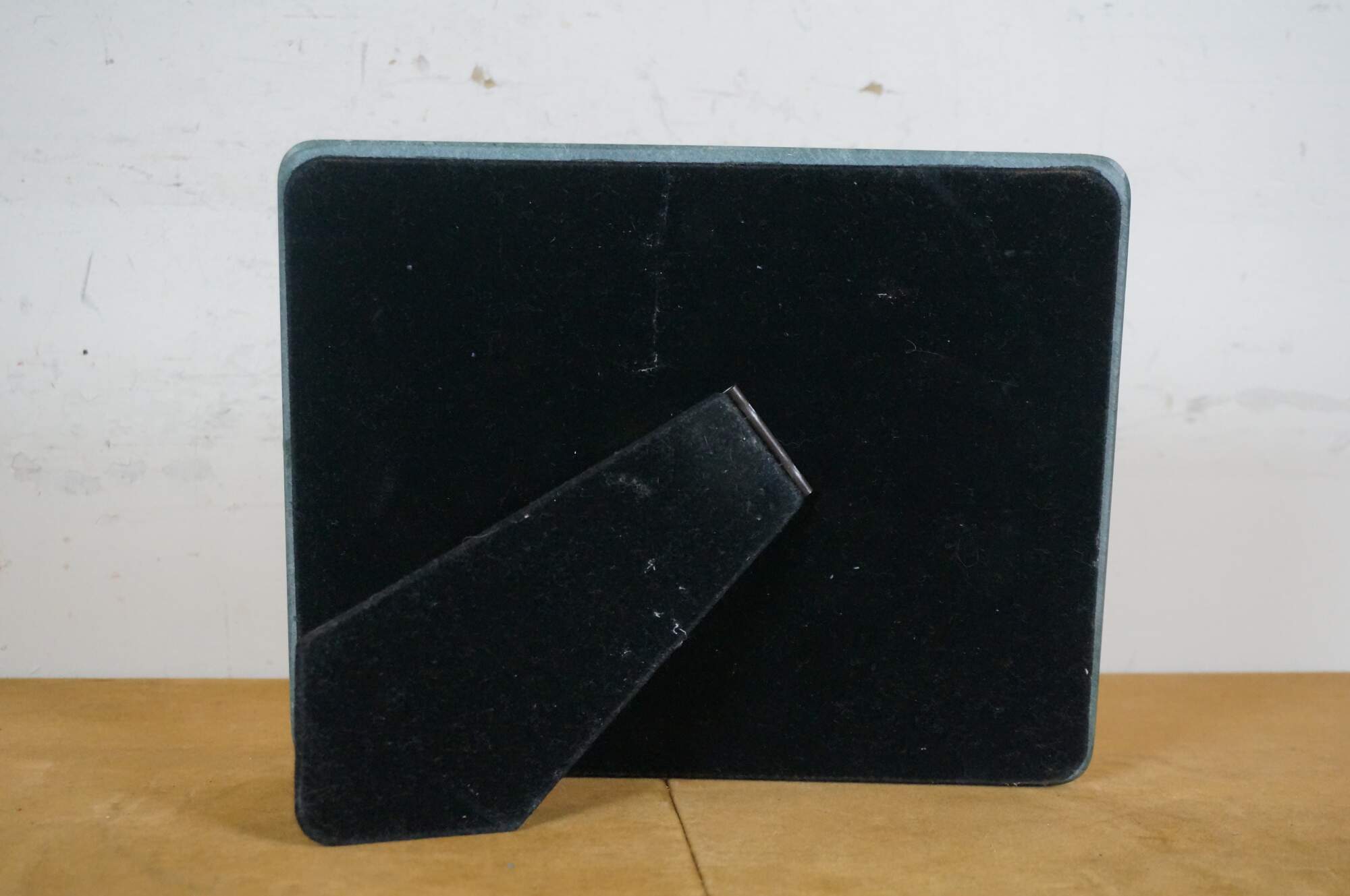 Late 20th Century Gold Themed Photo / Picture Frame. Features a green marble slab with glass covering held between two gold metal golf balls above a golfer posing across from his clubs.