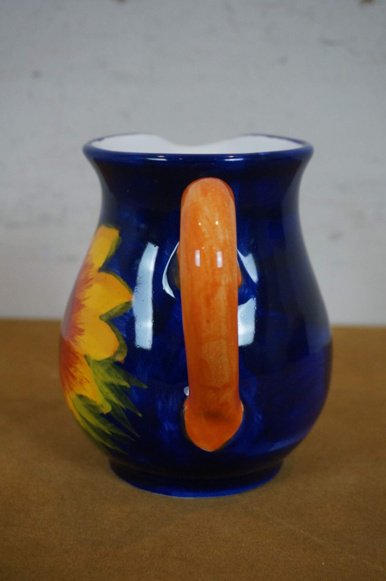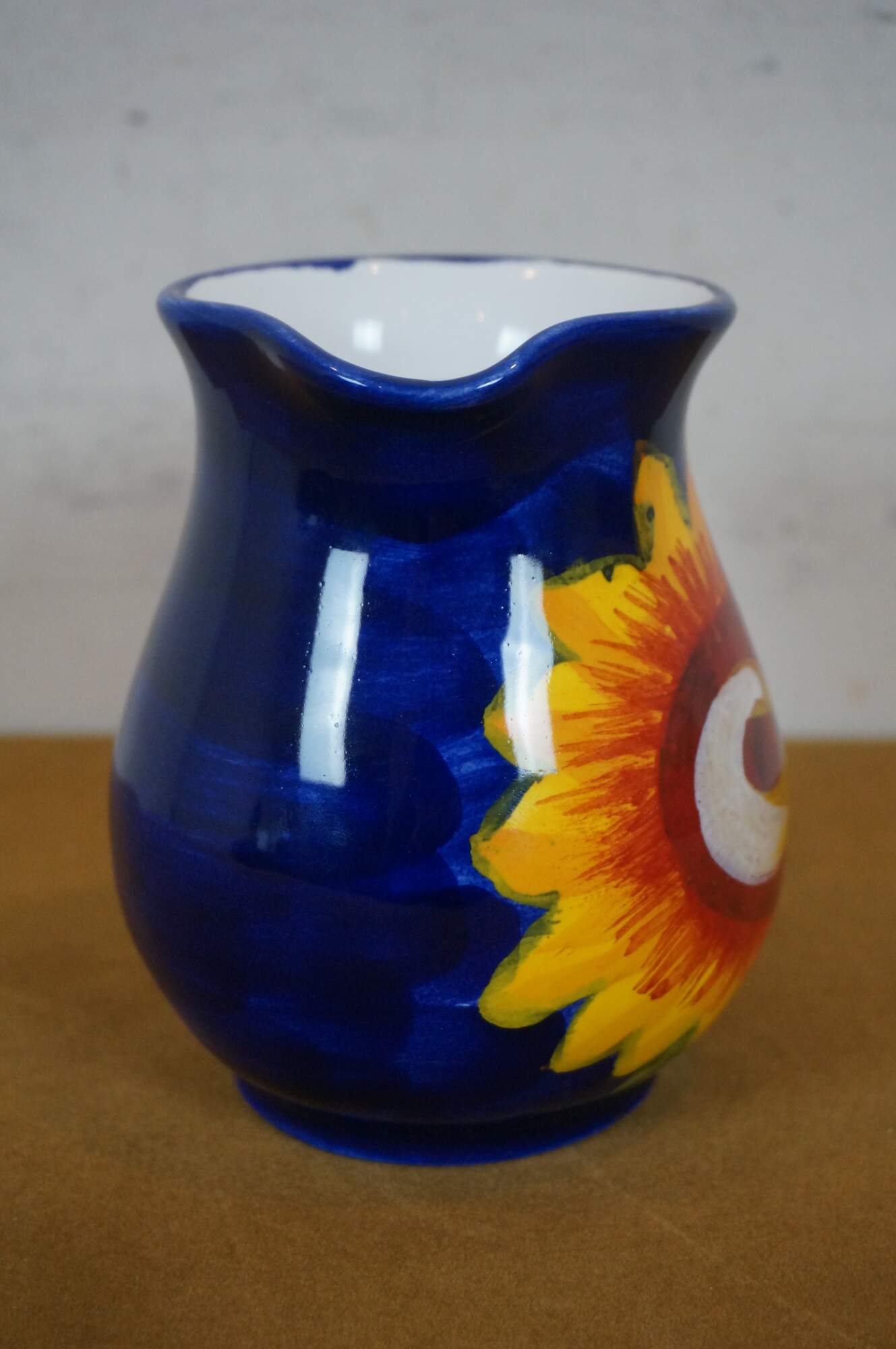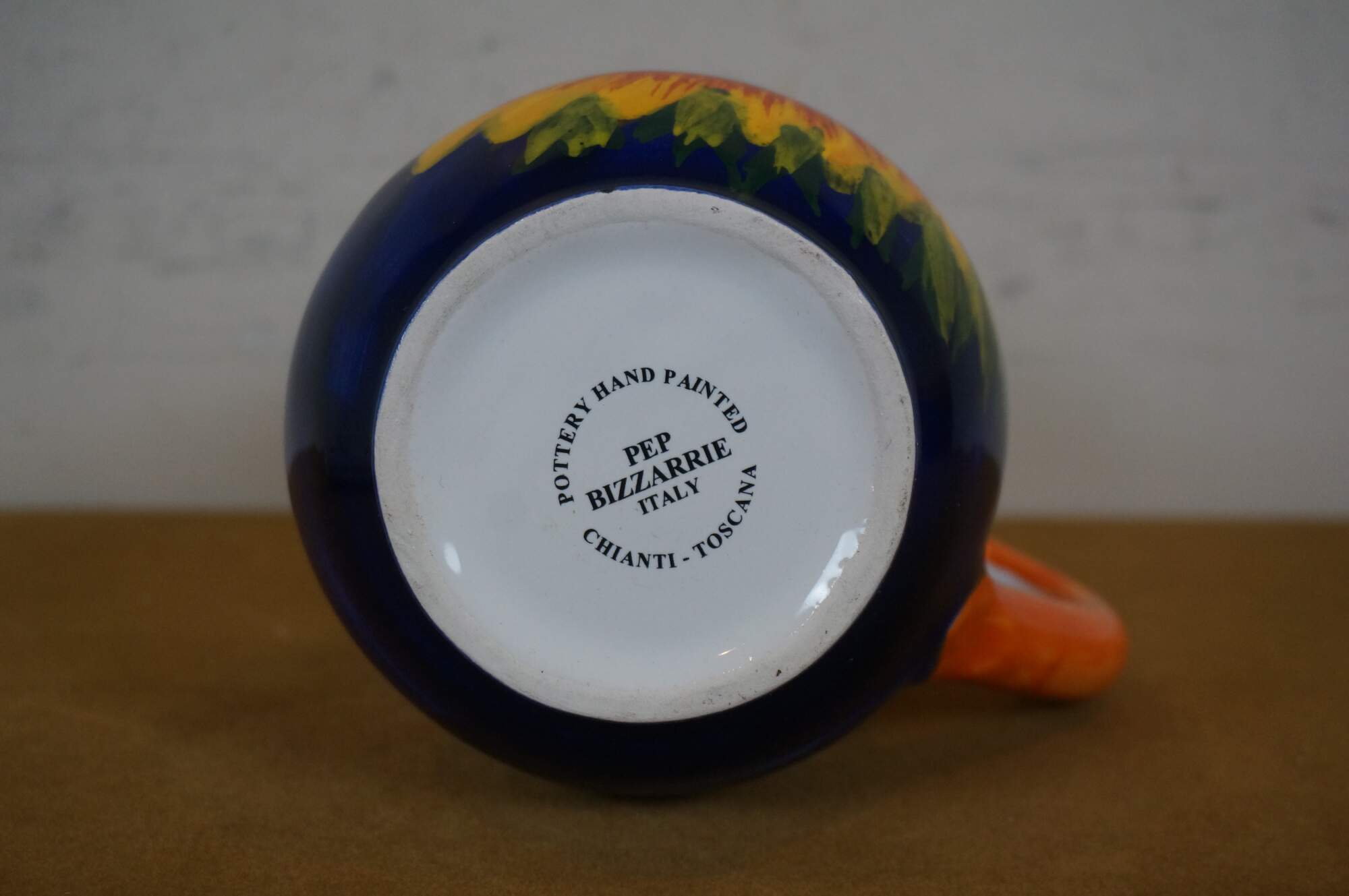 Vintage sunflower pitcher by Pep Bizzarrie. Pep Bizzarrie is an Italian pottery brand that sells hand-painted plates, vases, and bowls. The pottery is made in Chianti Toscana, Italy.