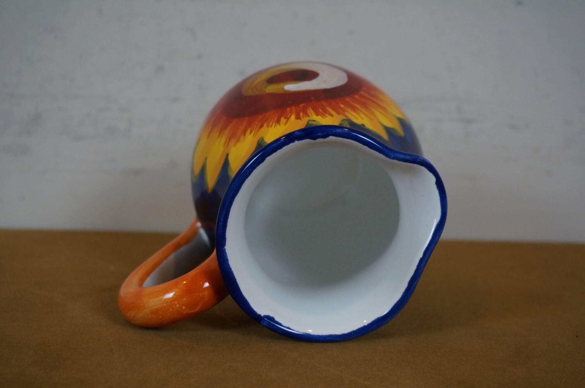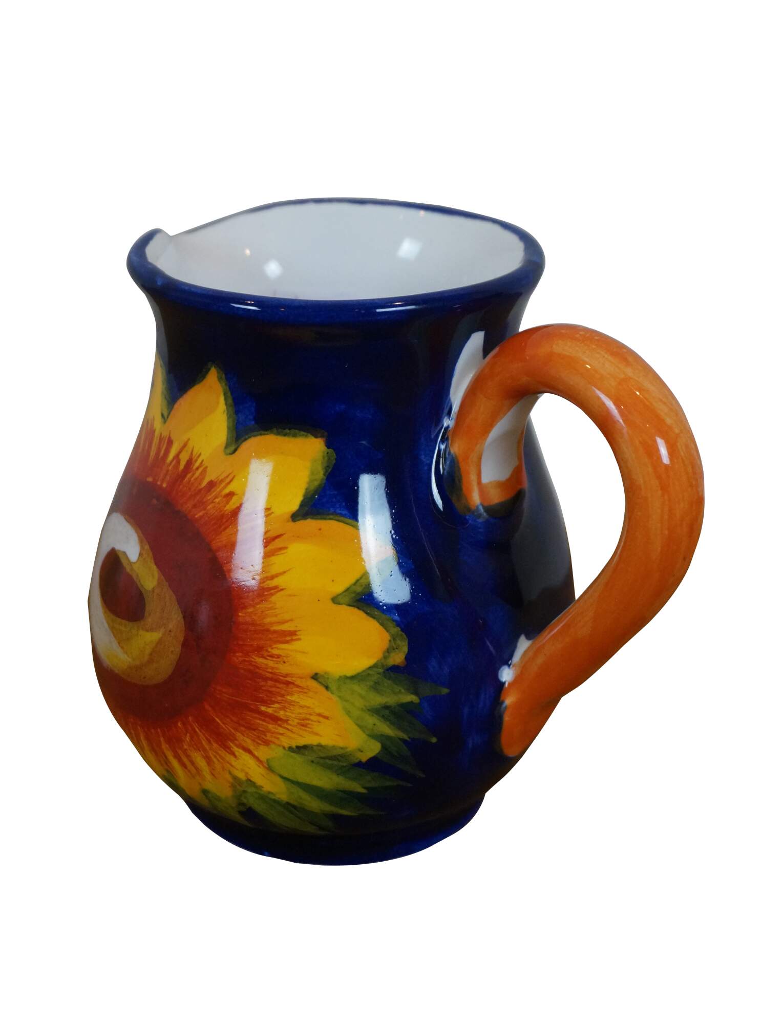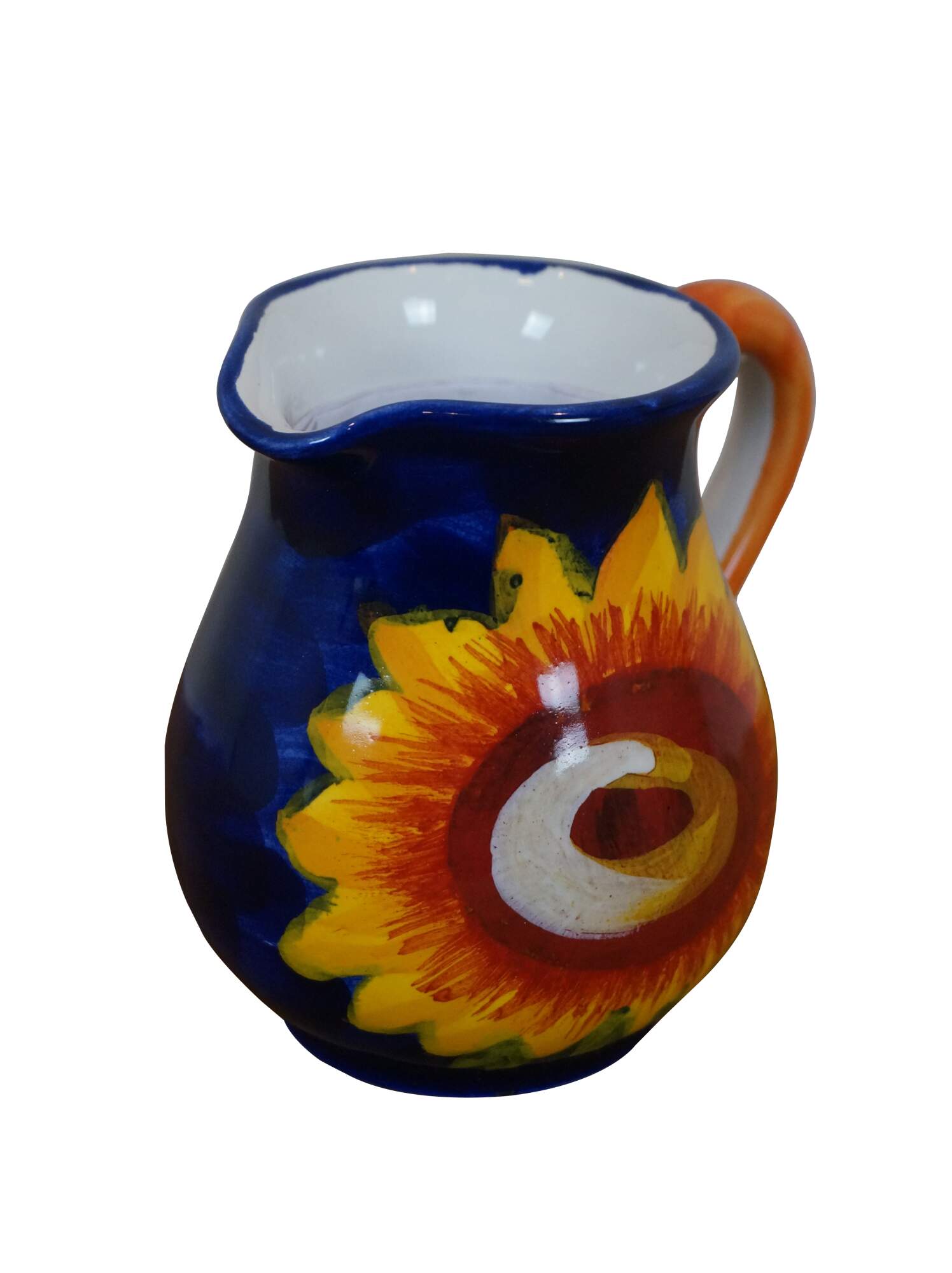 Vintage sunflower pitcher by Pep Bizzarrie. Pep Bizzarrie is an Italian pottery brand that sells hand-painted plates, vases, and bowls. The pottery is made in Chianti Toscana, Italy.