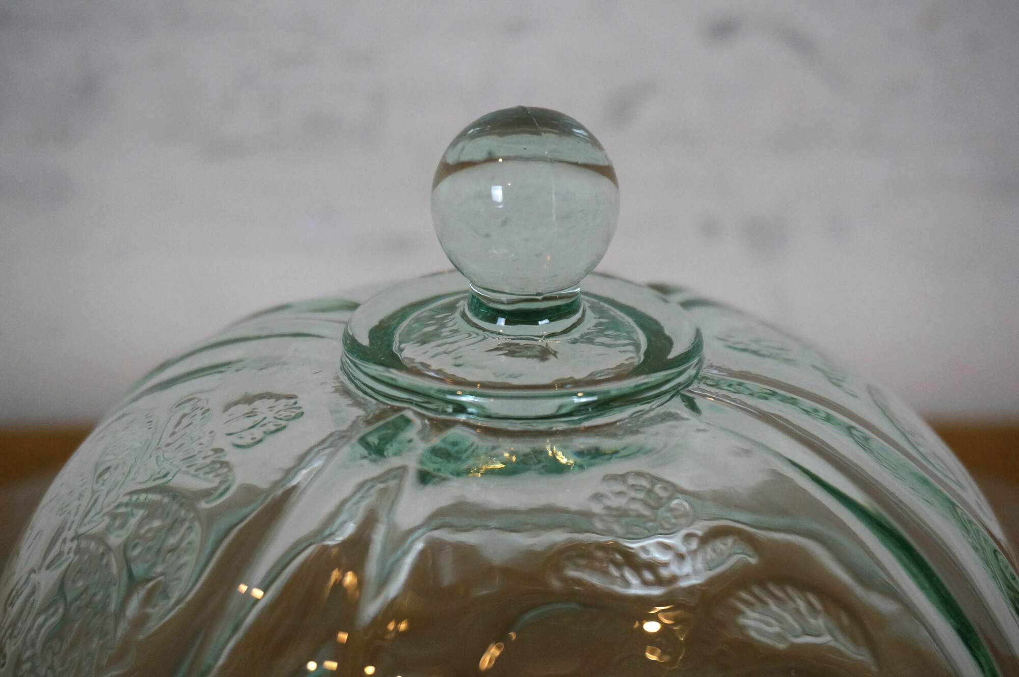 Vintage Indiana Glass Co Recollection aqua / sea green / teal reproduction Madrid Federal Depression glass-covered butter or cheese dish plate.