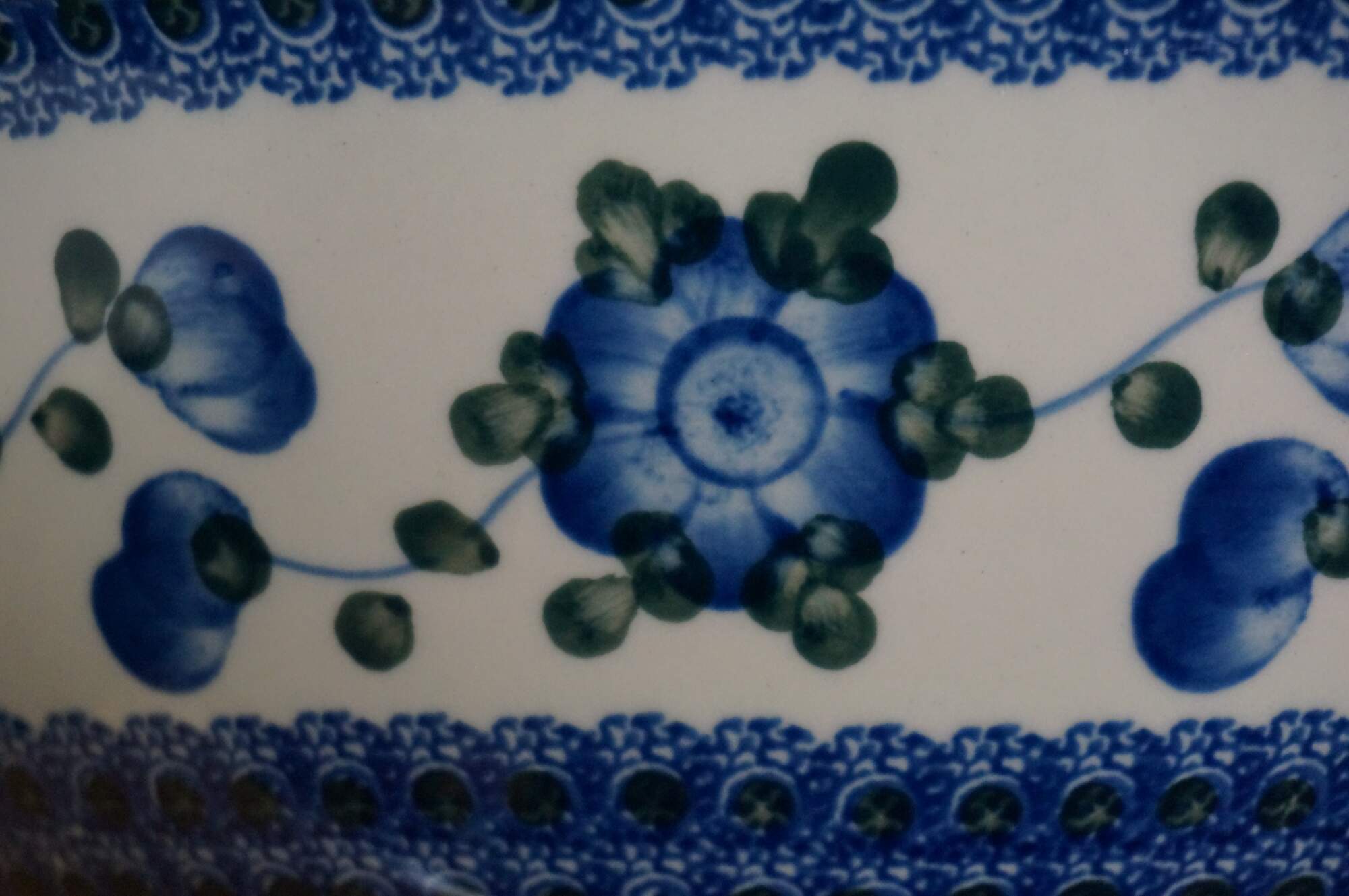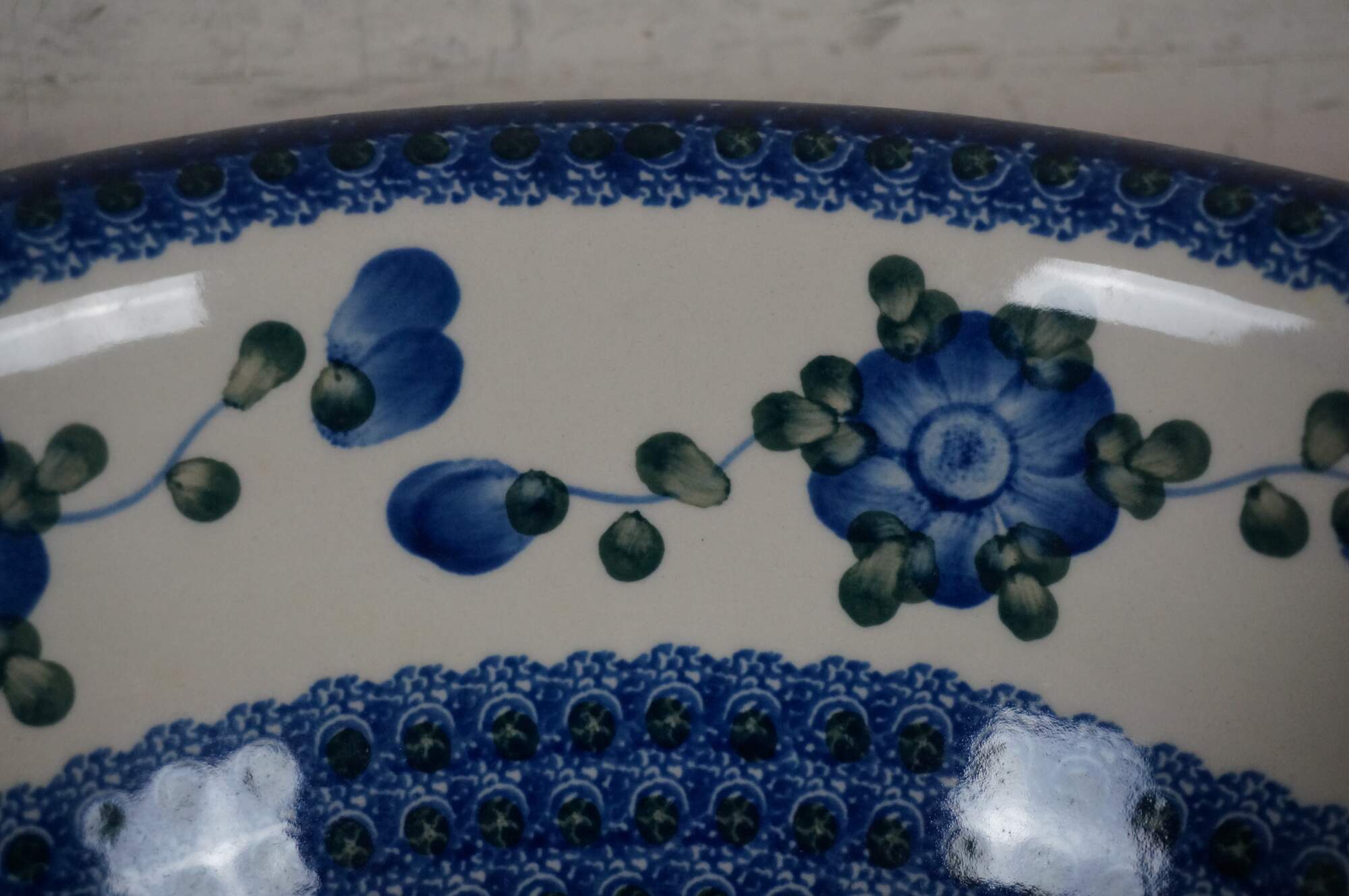 Vintage Ceramika Artystyczna pottery centerpiece serving bowl. B;ue Poppies, DEK 163, J. Okraska, 190.
