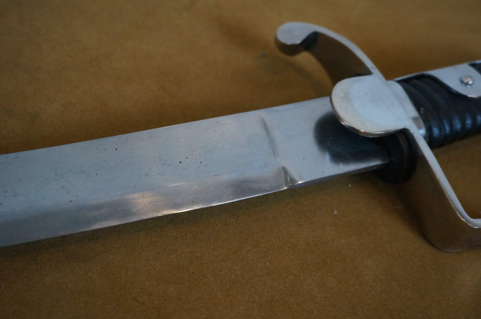 This replica British 1796 Cavalry Saber military officers sword features a tempered steel blade with a leather grip. The blade is peened over the pommel to solidly fit the blade into the hilt. The sword is matched with a steel scabbard completed with steel hanging rings.