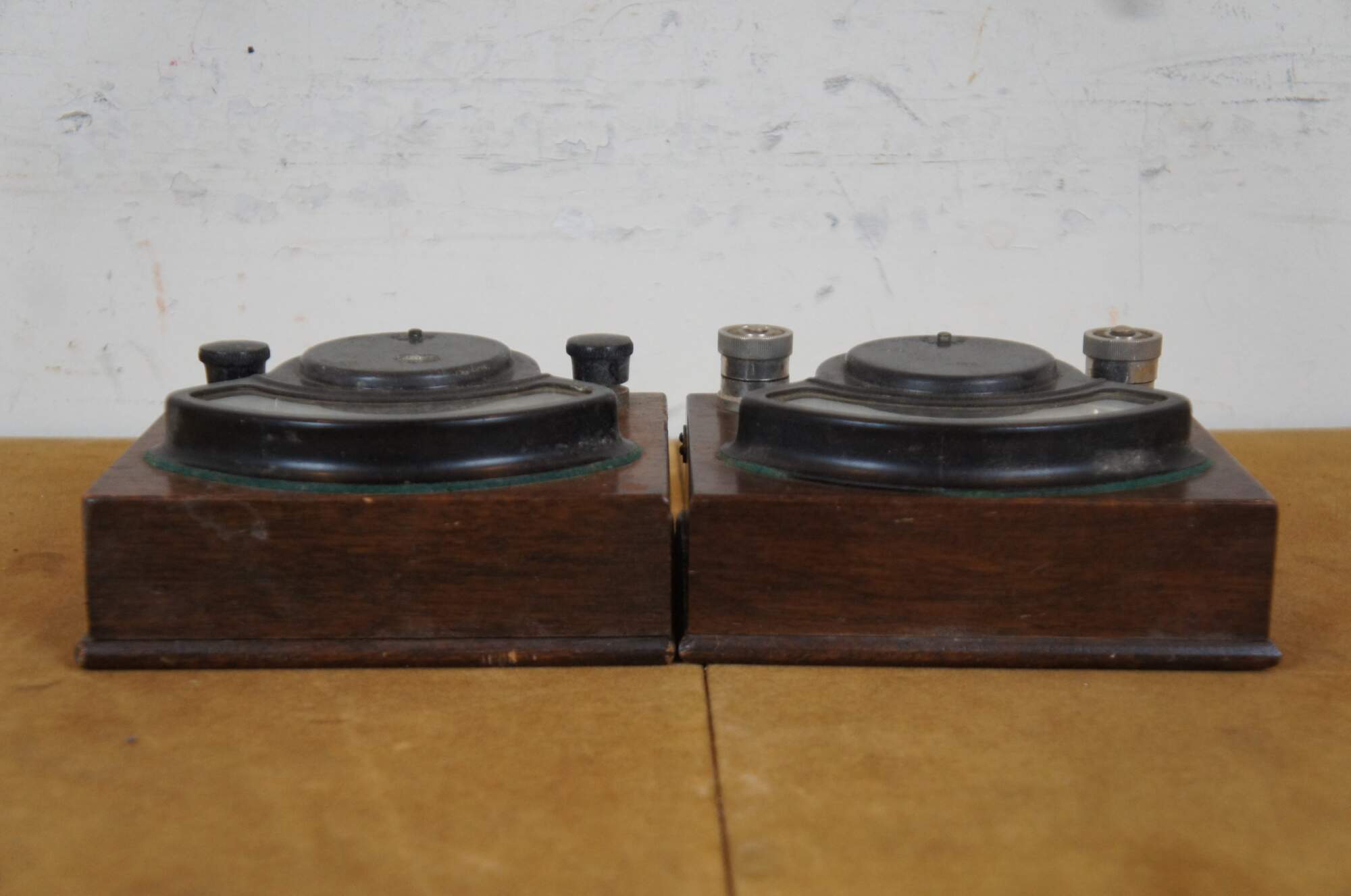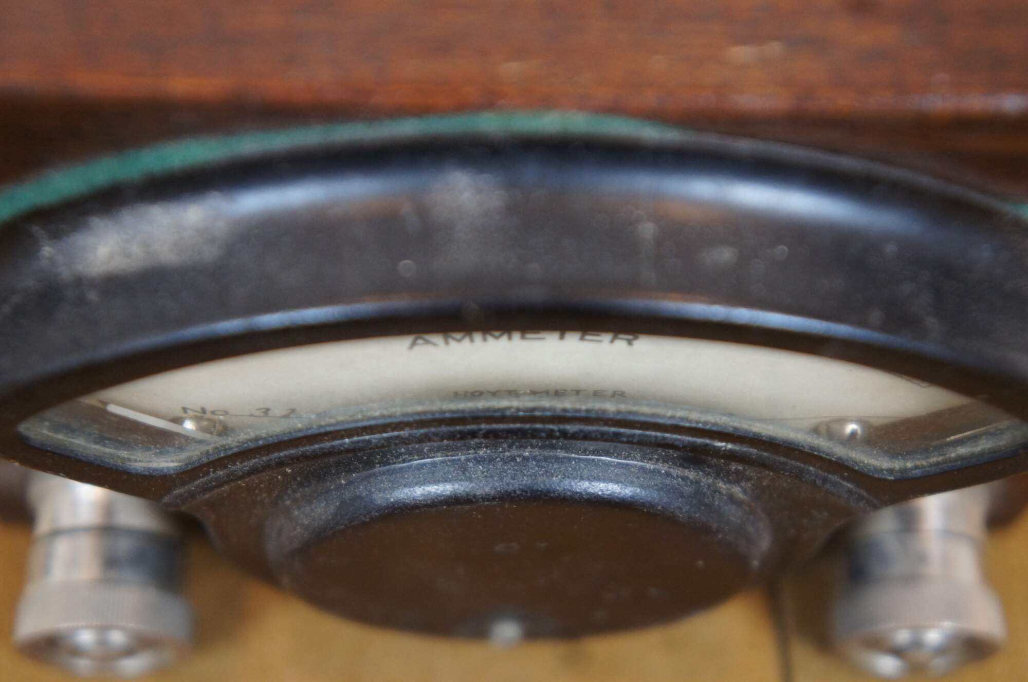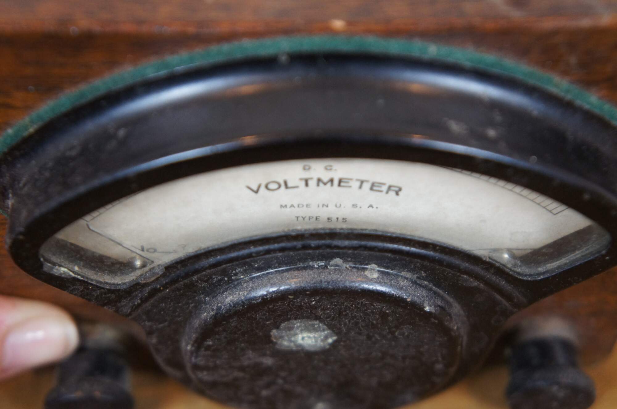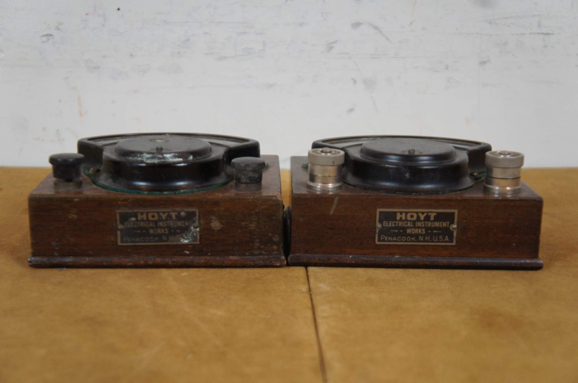 Two antique Victorian-era Hoyt Electrical Instrument Works of Penacook, NH, USA meters. One DC Ammeter Hoyt Meter and one DC Voltmeter Type 515. Both cased in quartersawn oak.