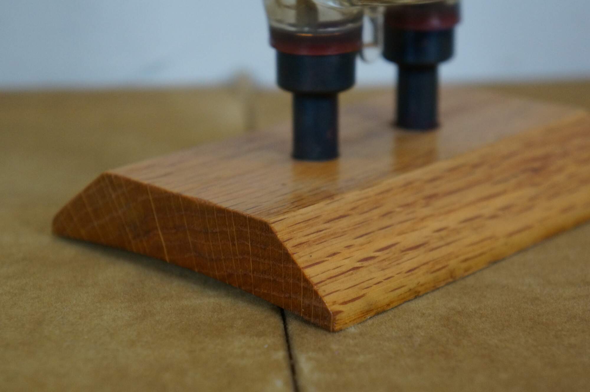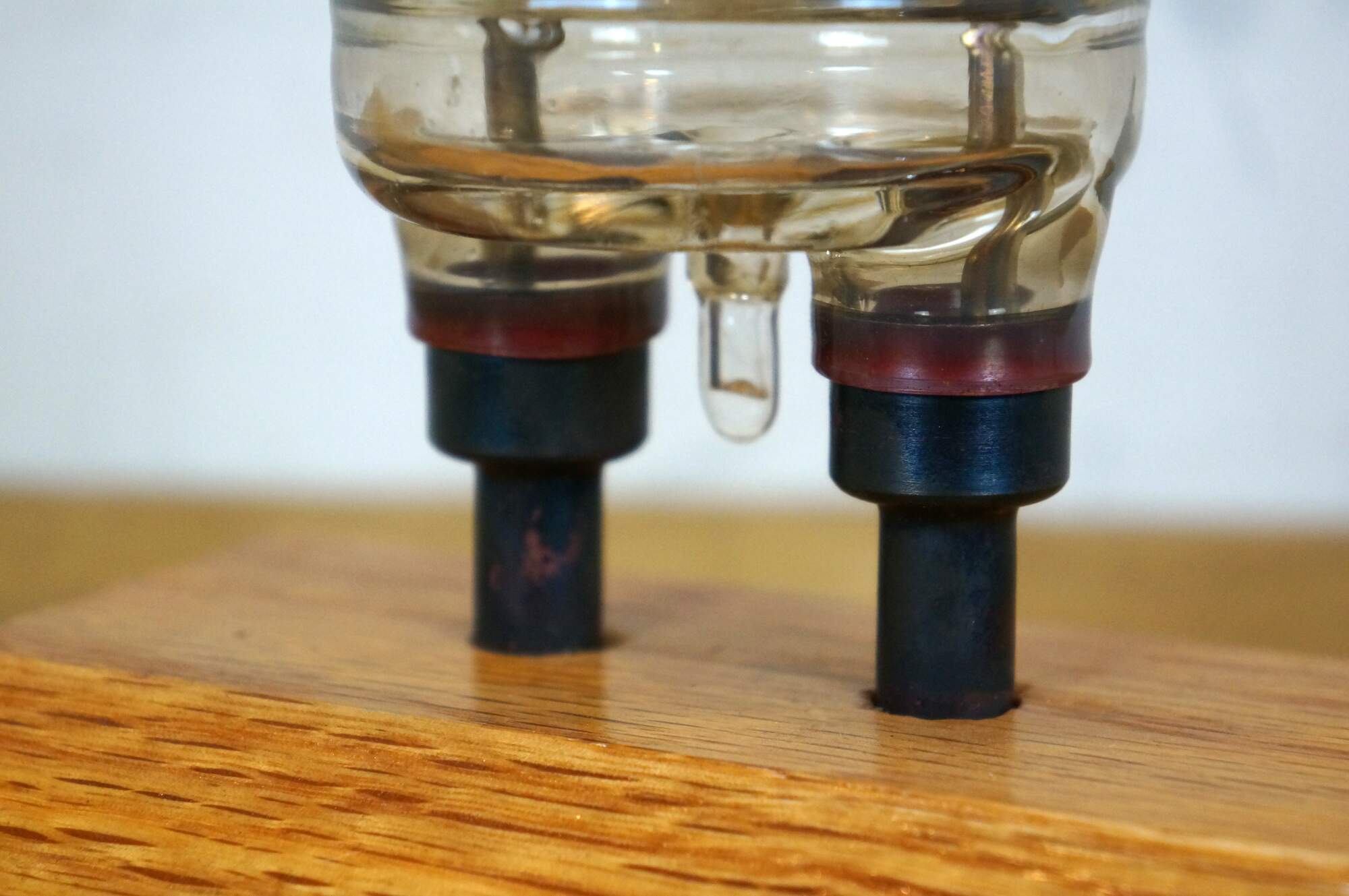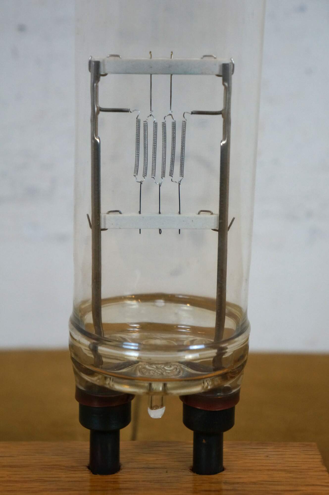 Vintage General Electric Mazda 100 watt Airway Beacon light bulb, mounted for display on a wooden base.