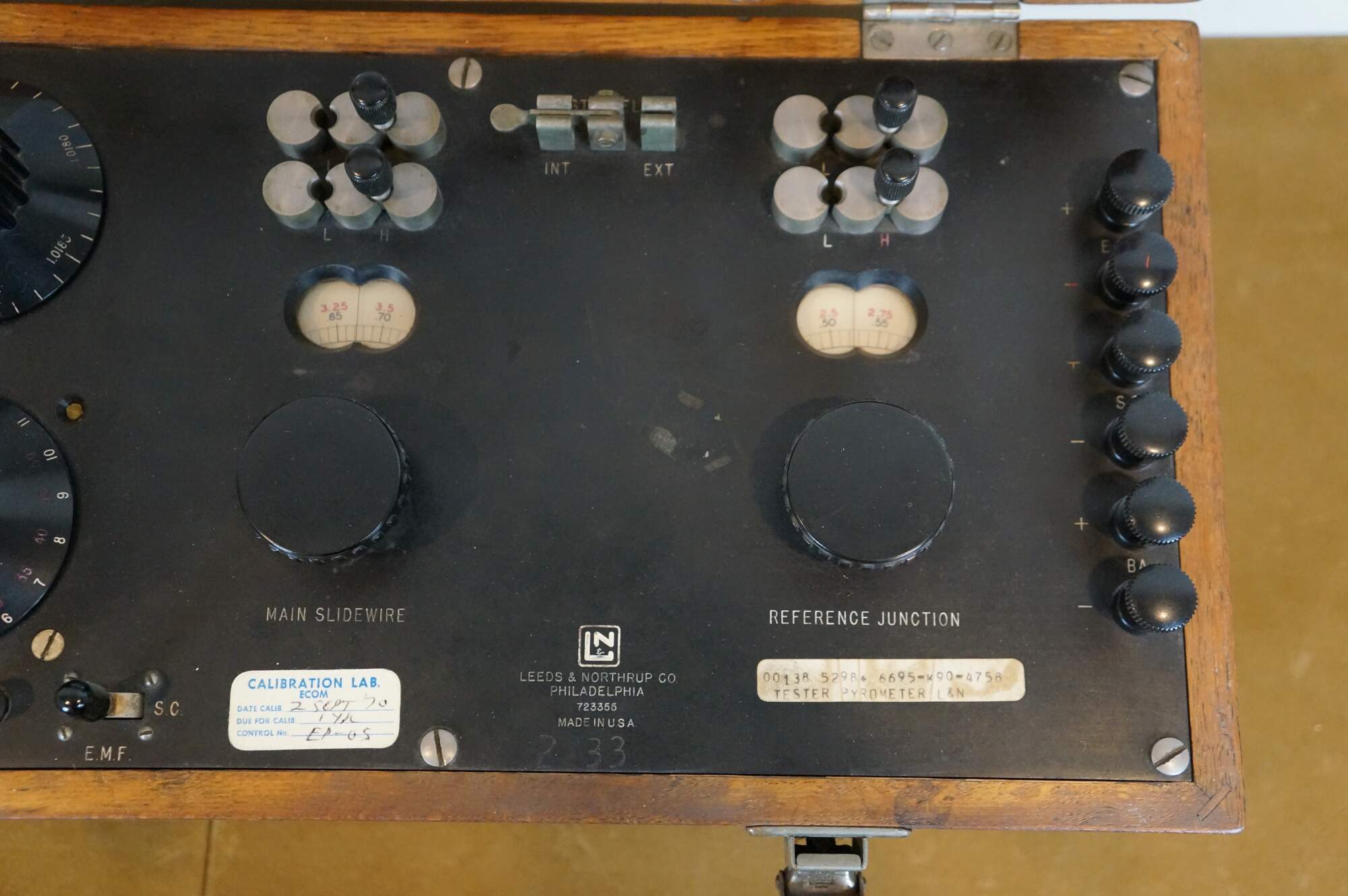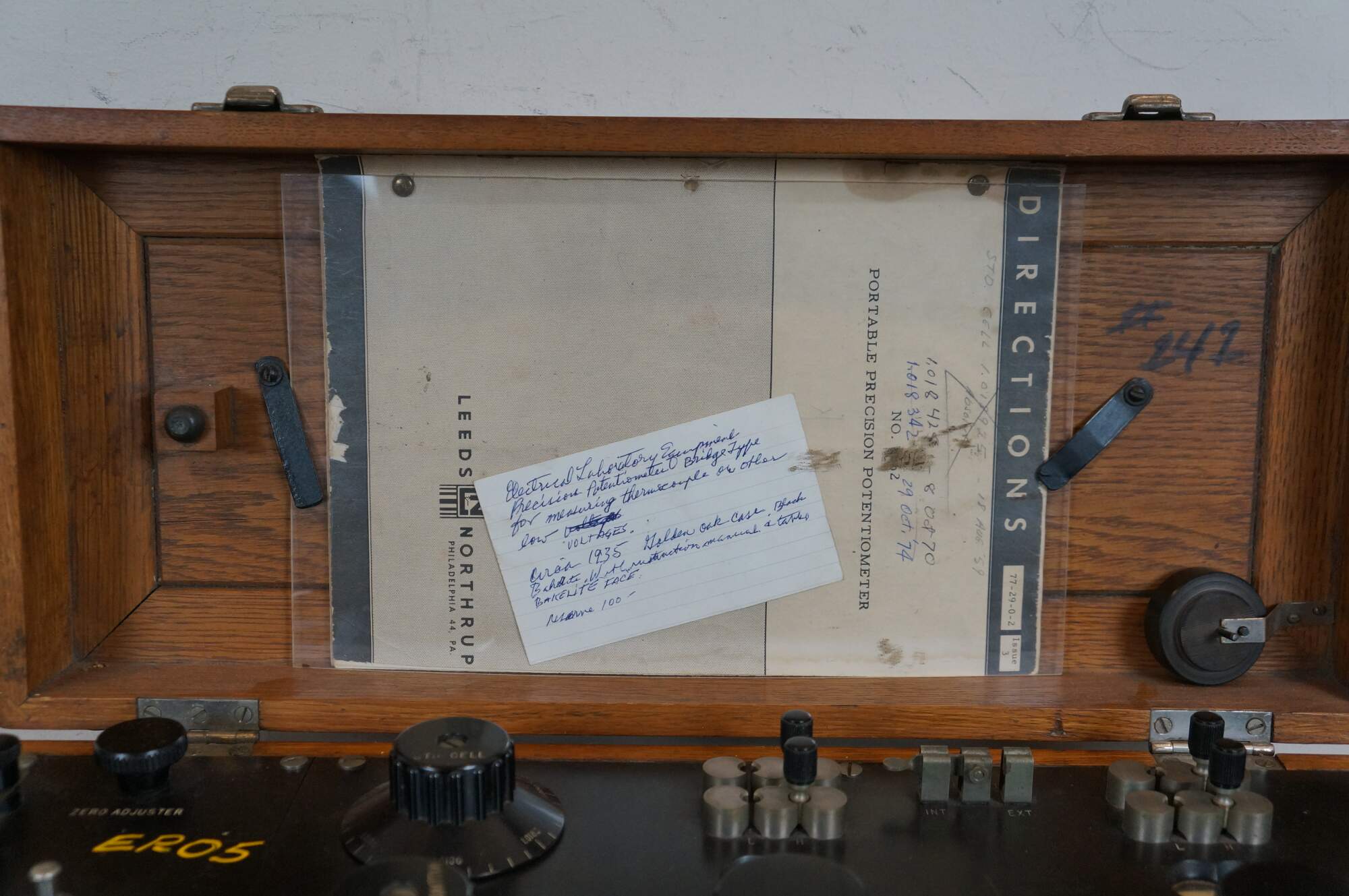 Vintage 20th century Leeds & Northrup Portable Precision Potentiometer - Leeds & Northrup Co, Philadelphia, PA - 723355 - Made in USA. Housed in oak case with Excelsior latches. Includes instruction book.