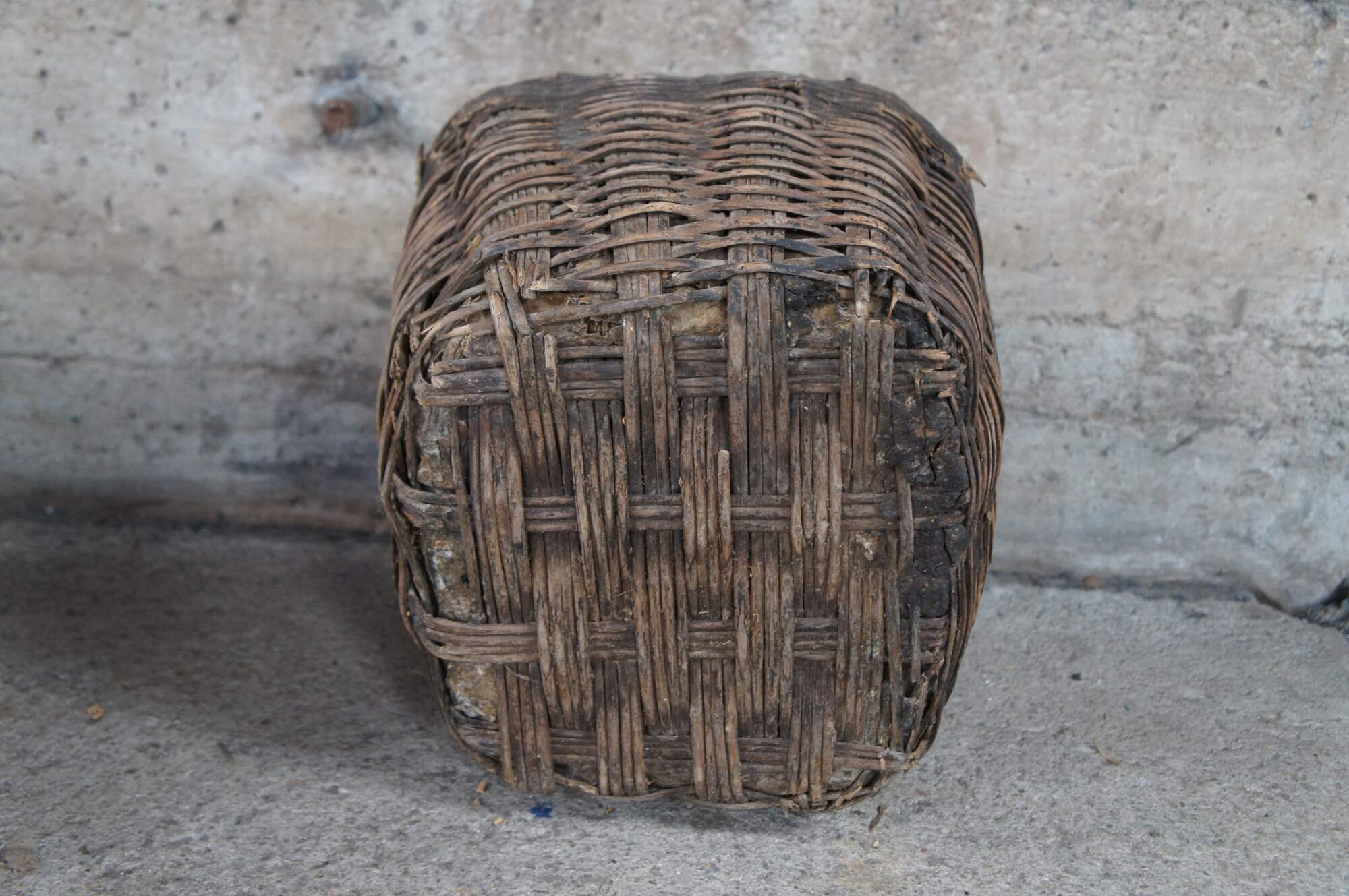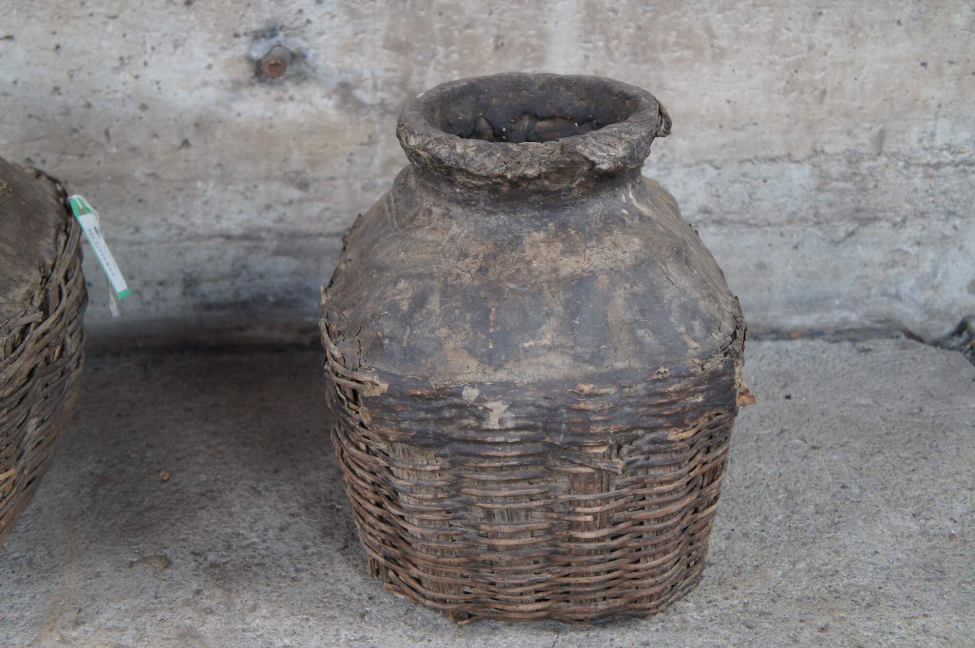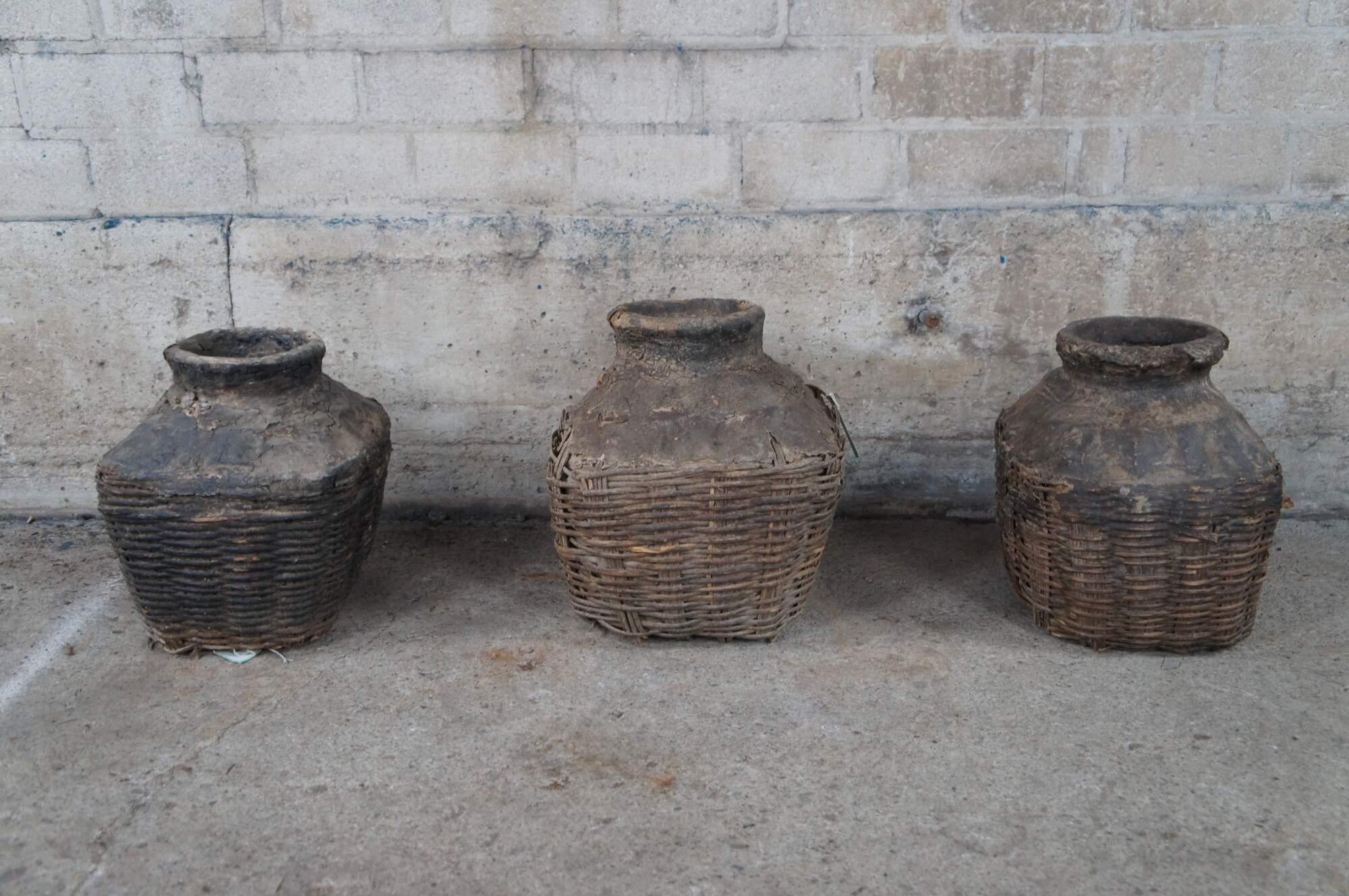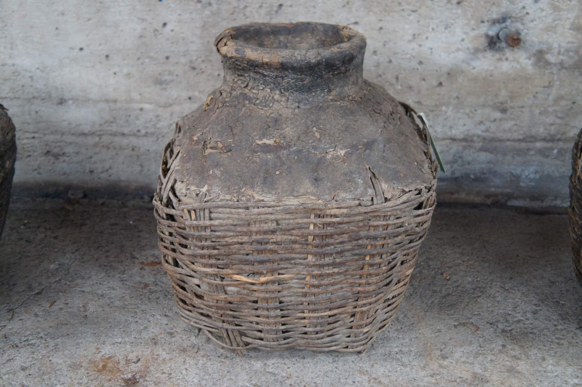 Three early 20th-century Chinese Shanxi Willow oil container / food storage vessel / jar / baskets. Beautifully woven with natural patina from years of use. Each basket differs slightly in characteristics and measurements - some richer / darker / lighter in color.
