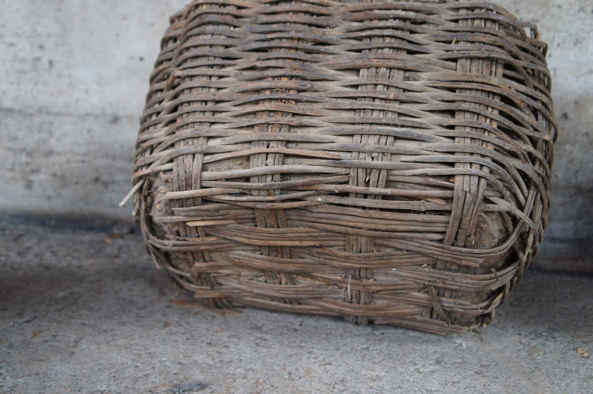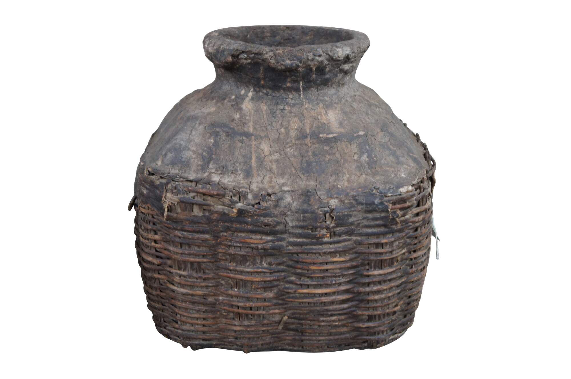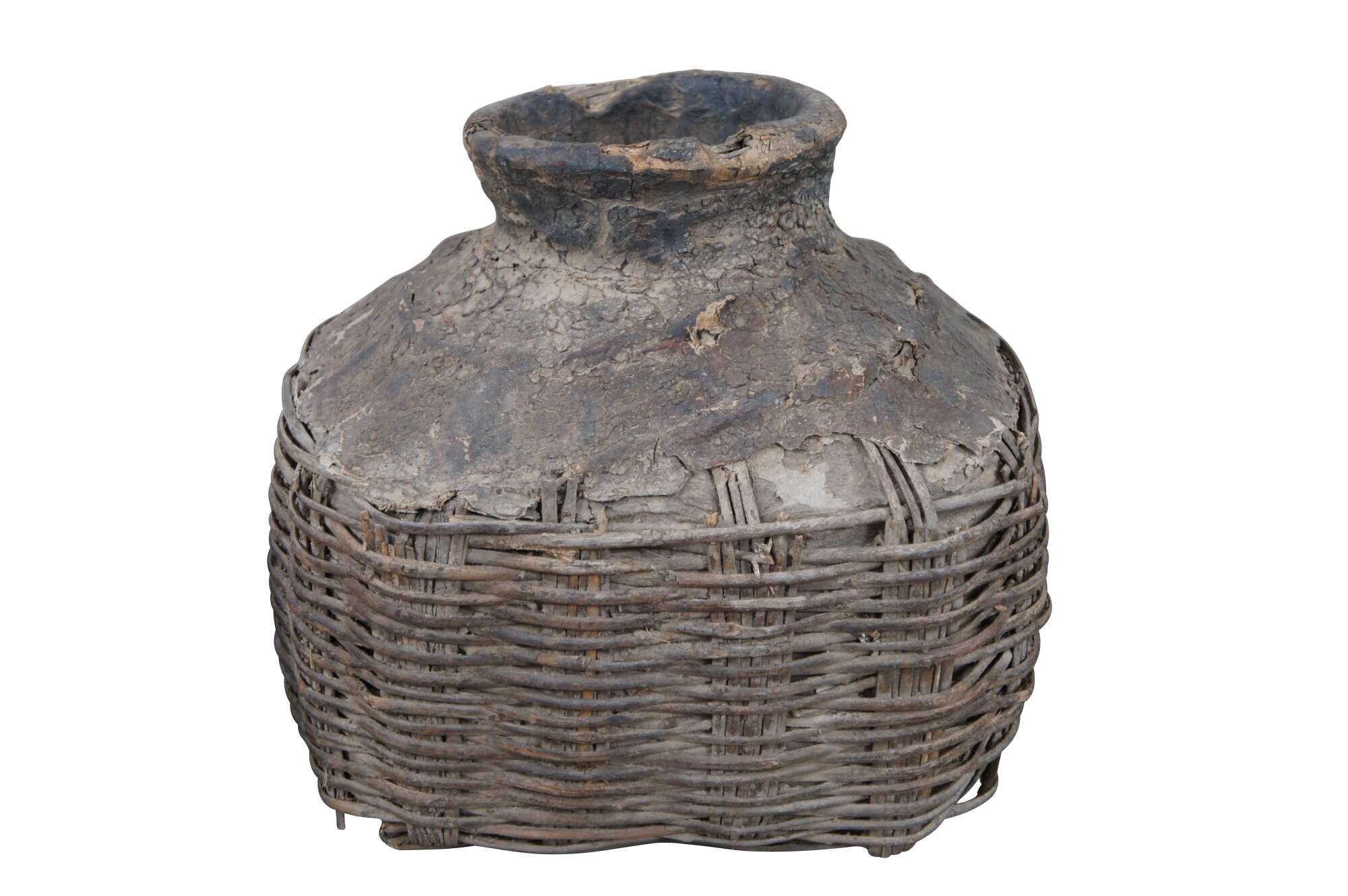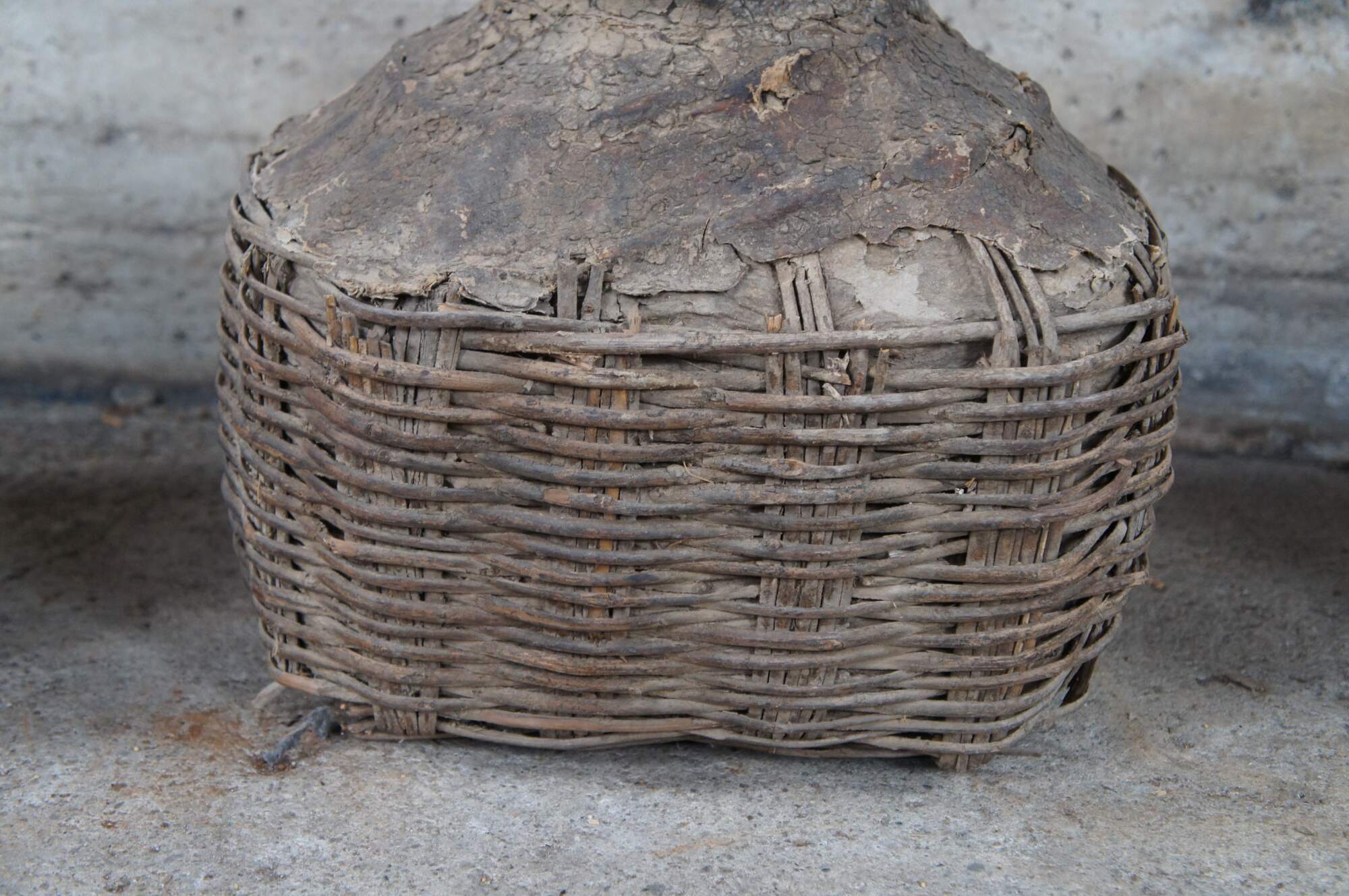 Three early 20th-century Chinese Shanxi Willow oil container / food storage vessel / jar / baskets. Beautifully woven with natural patina from years of use. Each basket differs slightly in characteristics and measurements - some richer / darker / lighter in color.