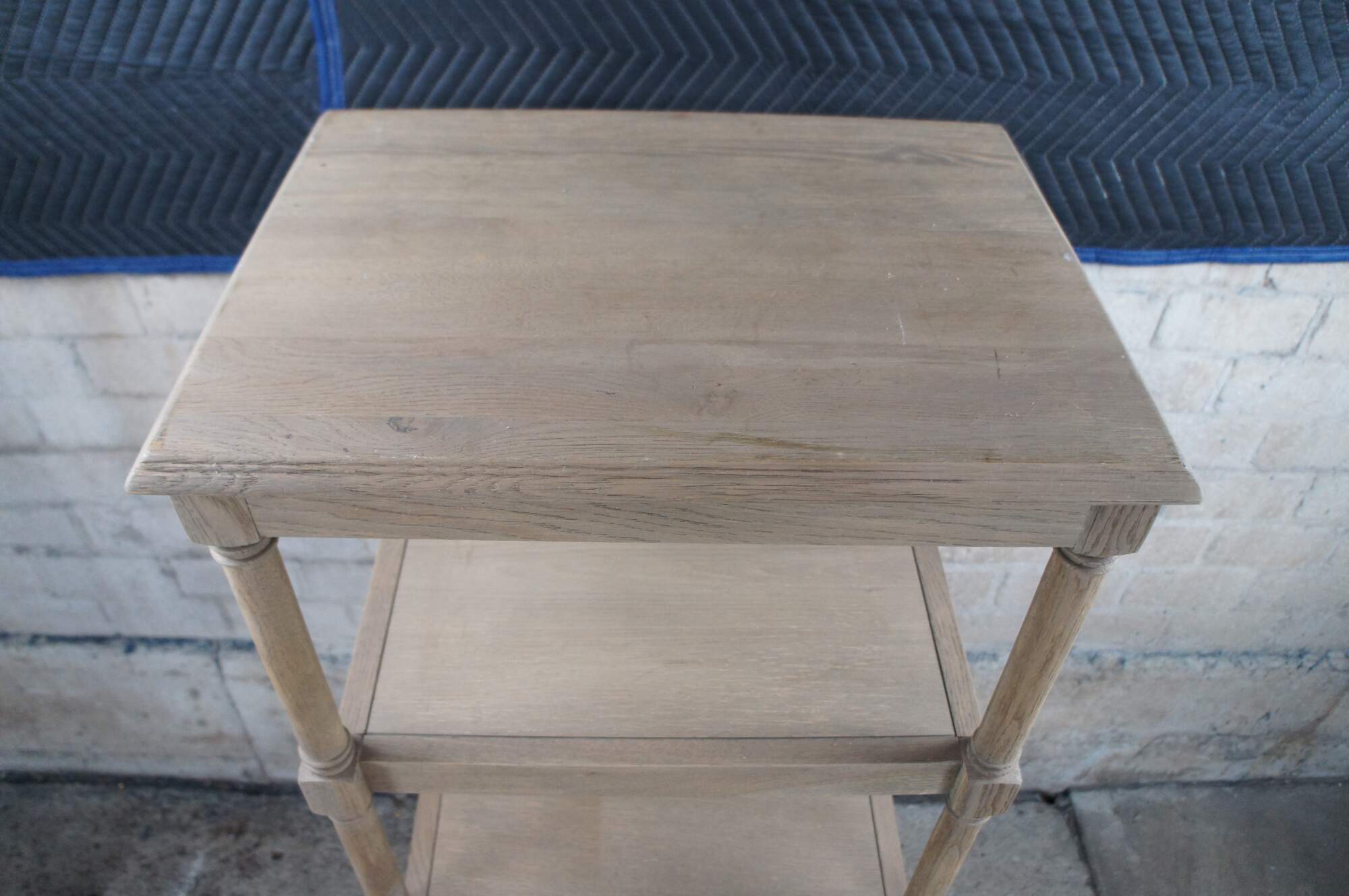 Vintage Restoration Hardware etagere / linen tower / open storage shelving stand / bookcase. Made of weathered oak featuring tall form with five tiered shelves and turned supports.