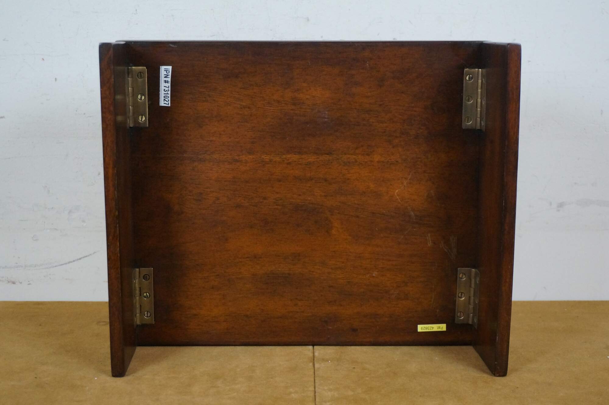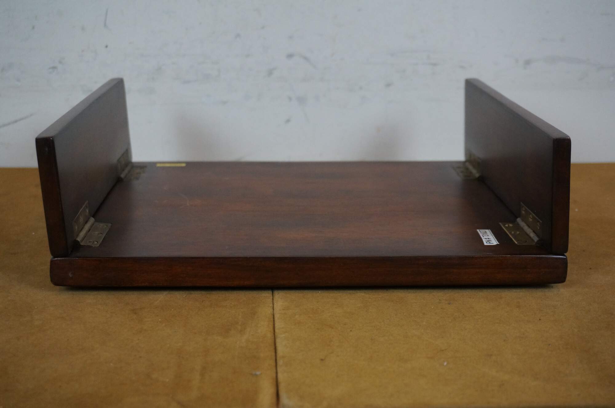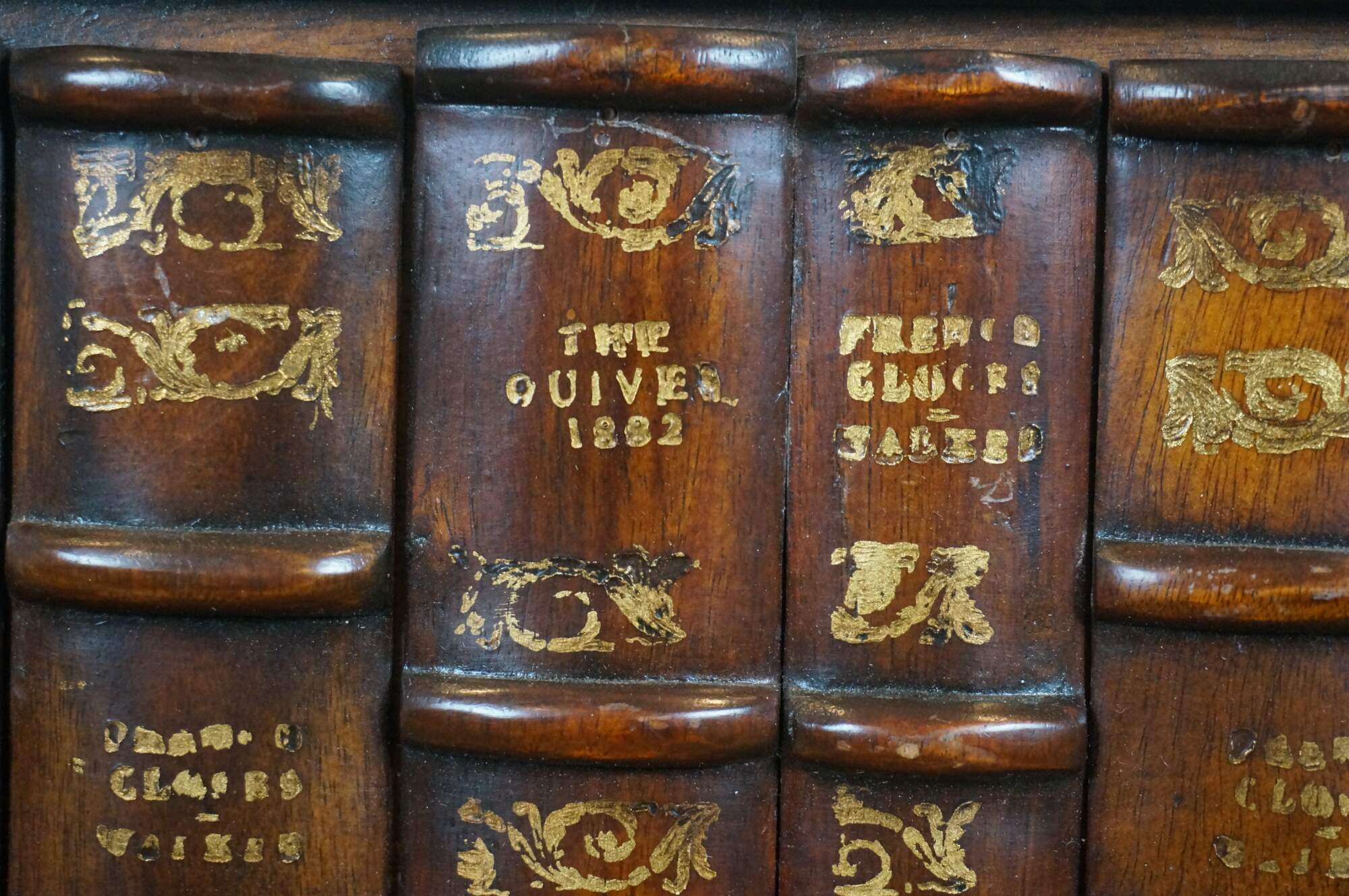 Vintage Theodore Alexander walnut panel with two folding sides supports, carved to resemble a row of old books, with stamped gilt details. Made in Vietnam.