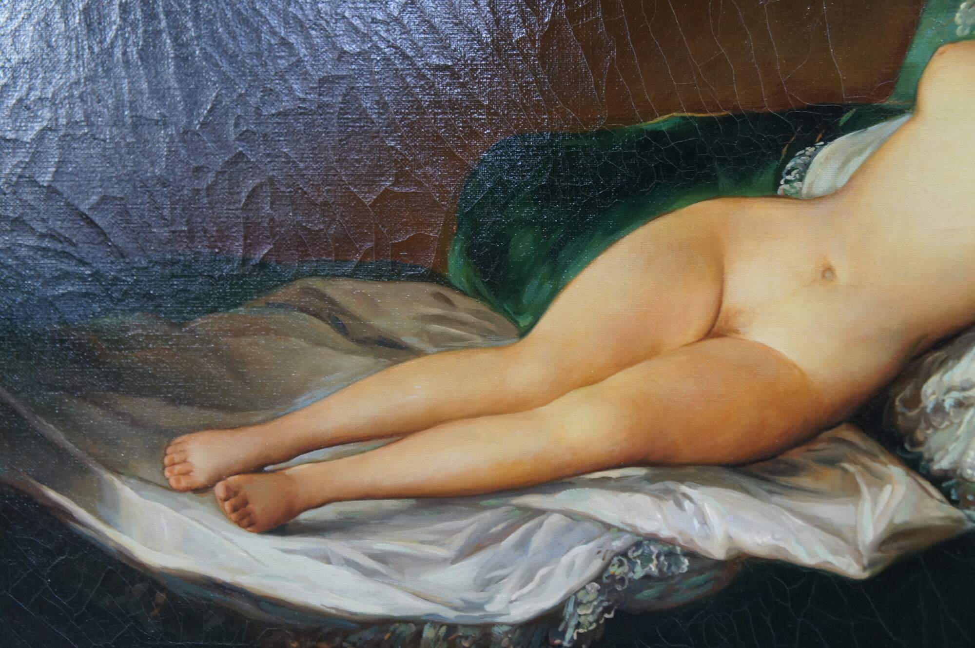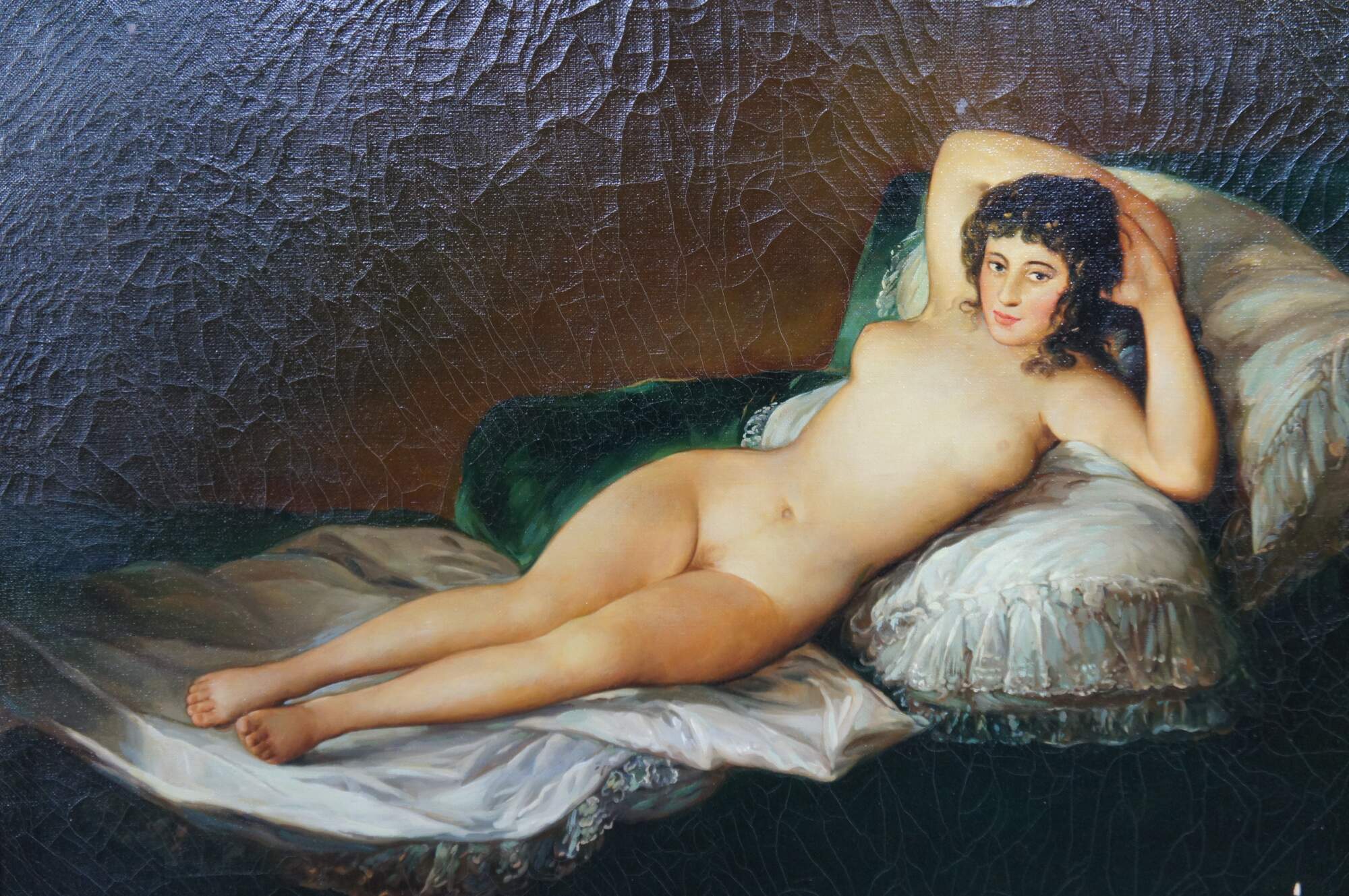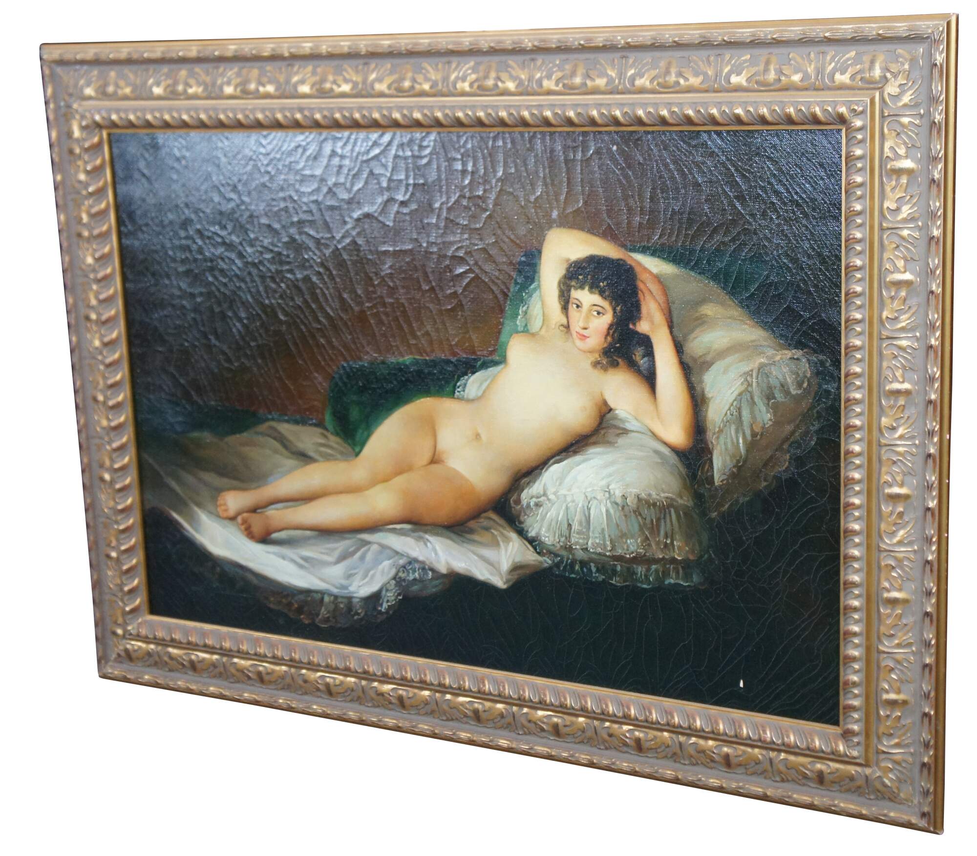 Vintage La Maja Desnuda oil painting on canvas after Francisco de Goya.