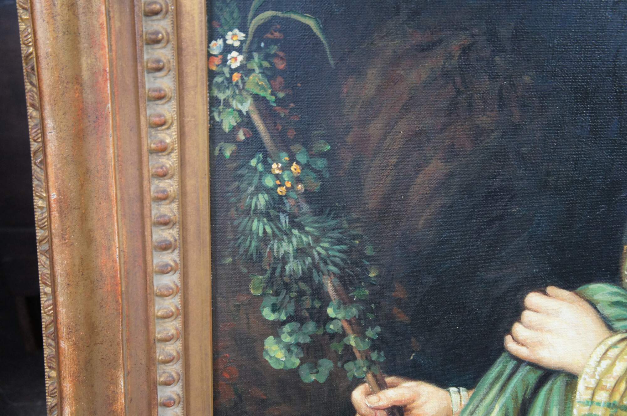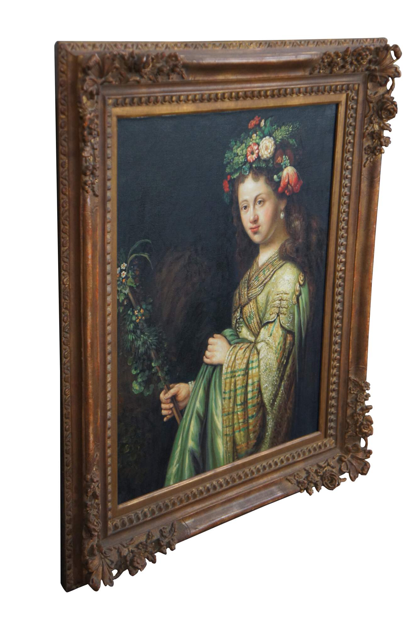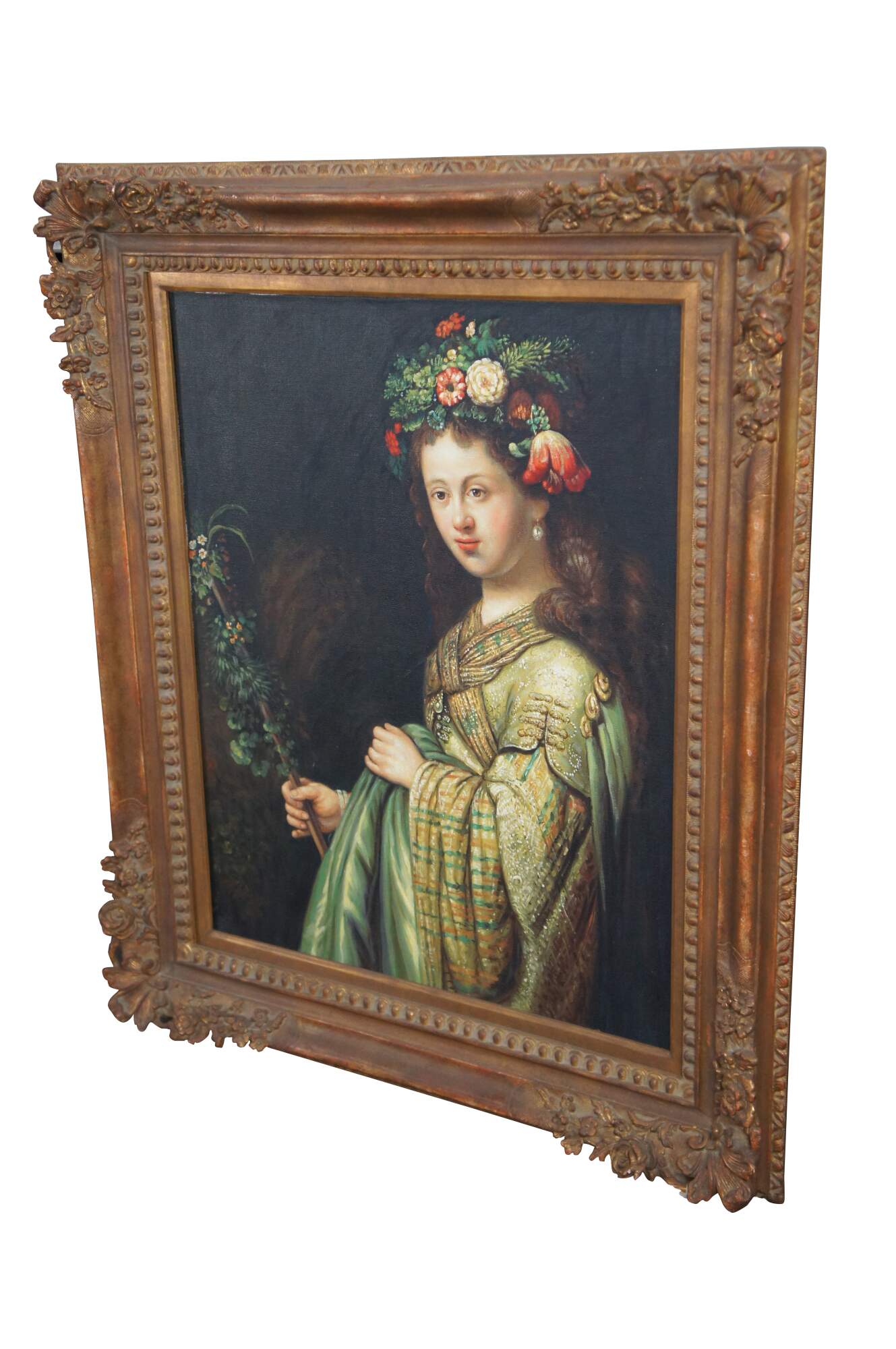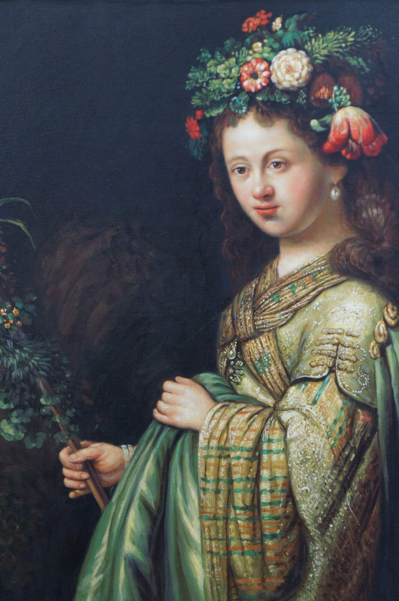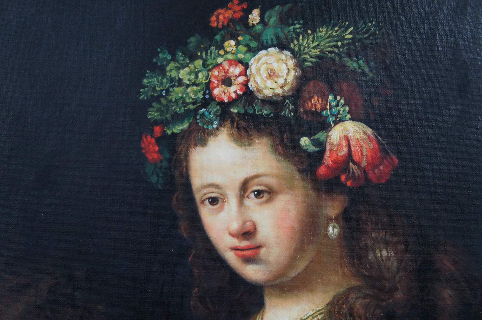 Vintage portrait of Saskia as Flora, an oil painting after Rembrandt originally painted in the 17th century.