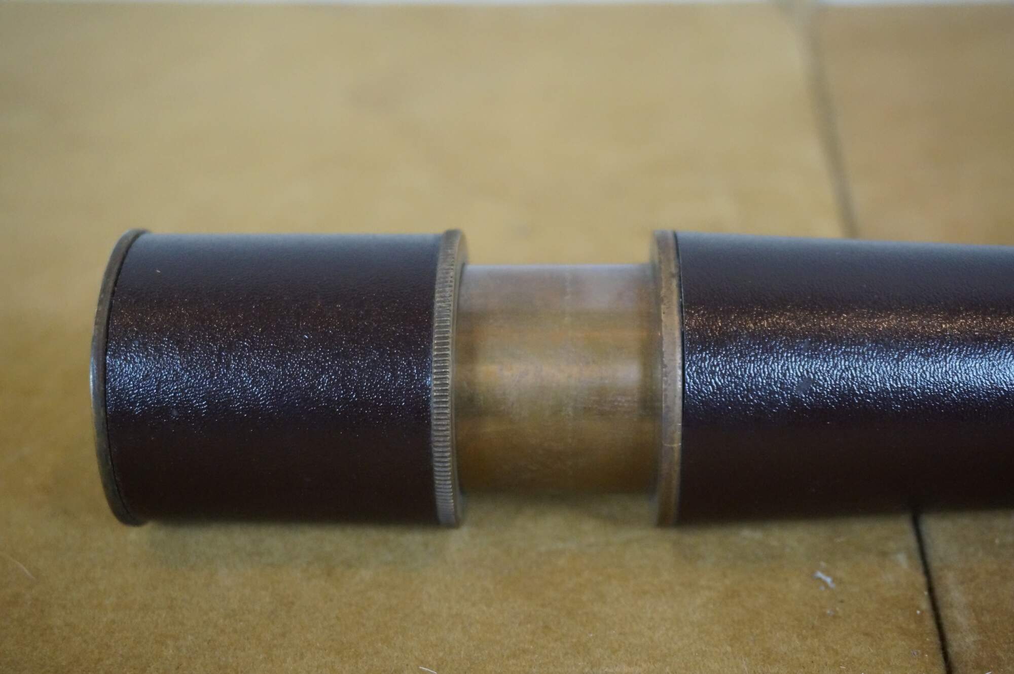 Vintage brass and brown leather wrapped pocket sized telescope. Marked W. Ottway Co Ltd, Ealing, London.