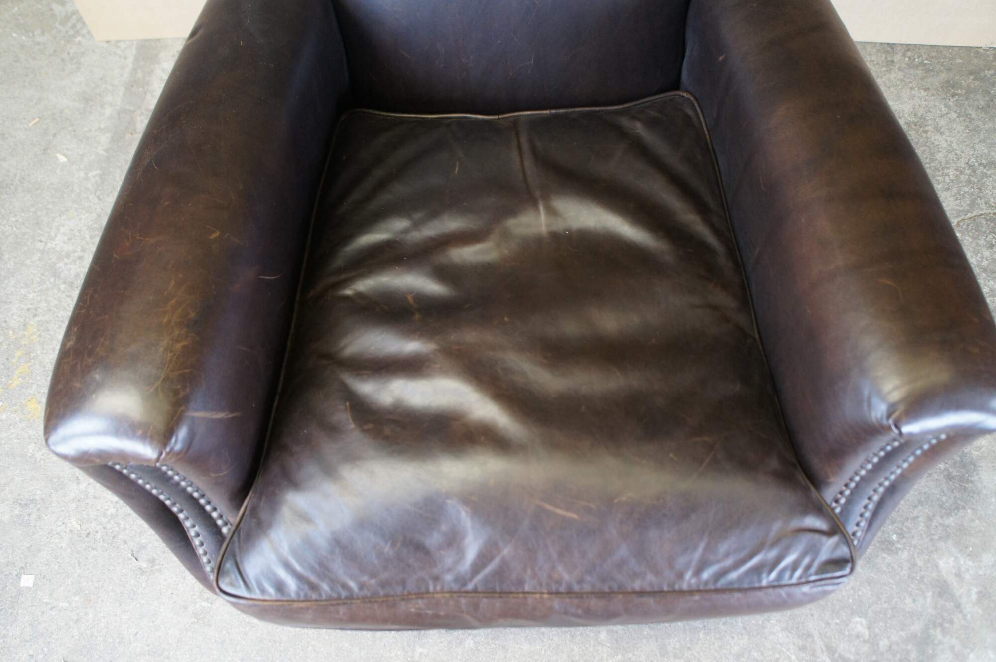 The seat cushion is padded with a down-feather fill (down and feather wrapped around a resilient foam core), while the coordinating back is all down and feathers. The seat cushion is backed in fabric that allows the leather to breathe.