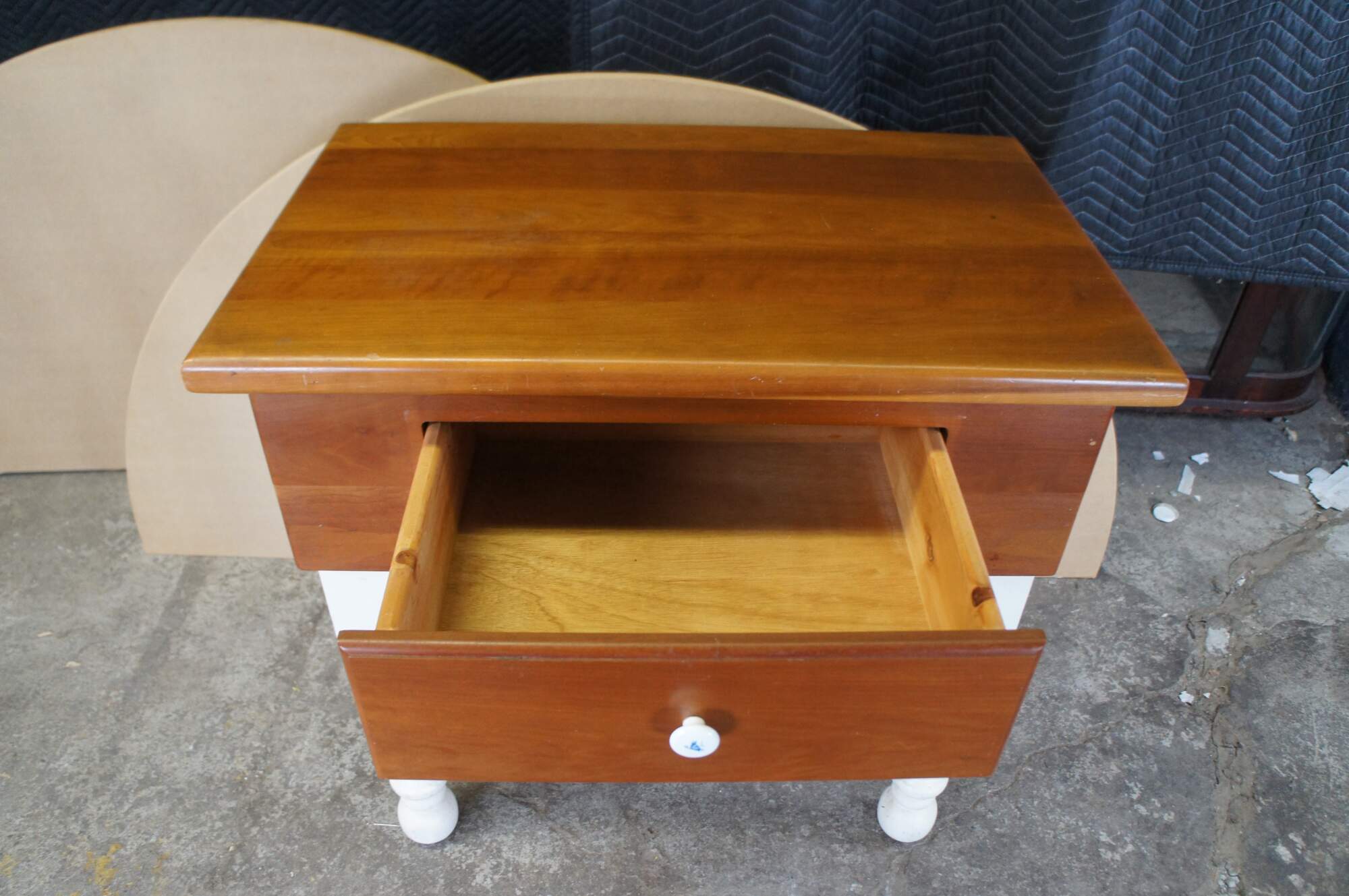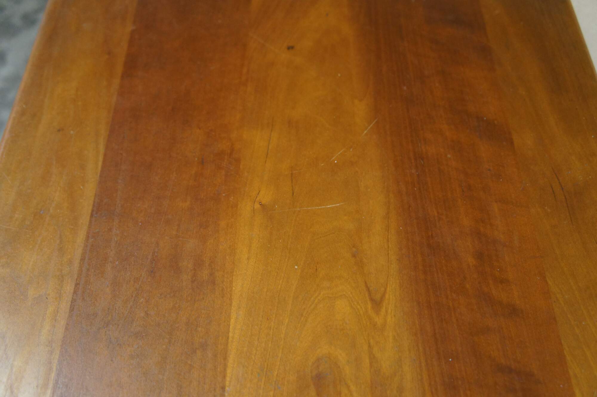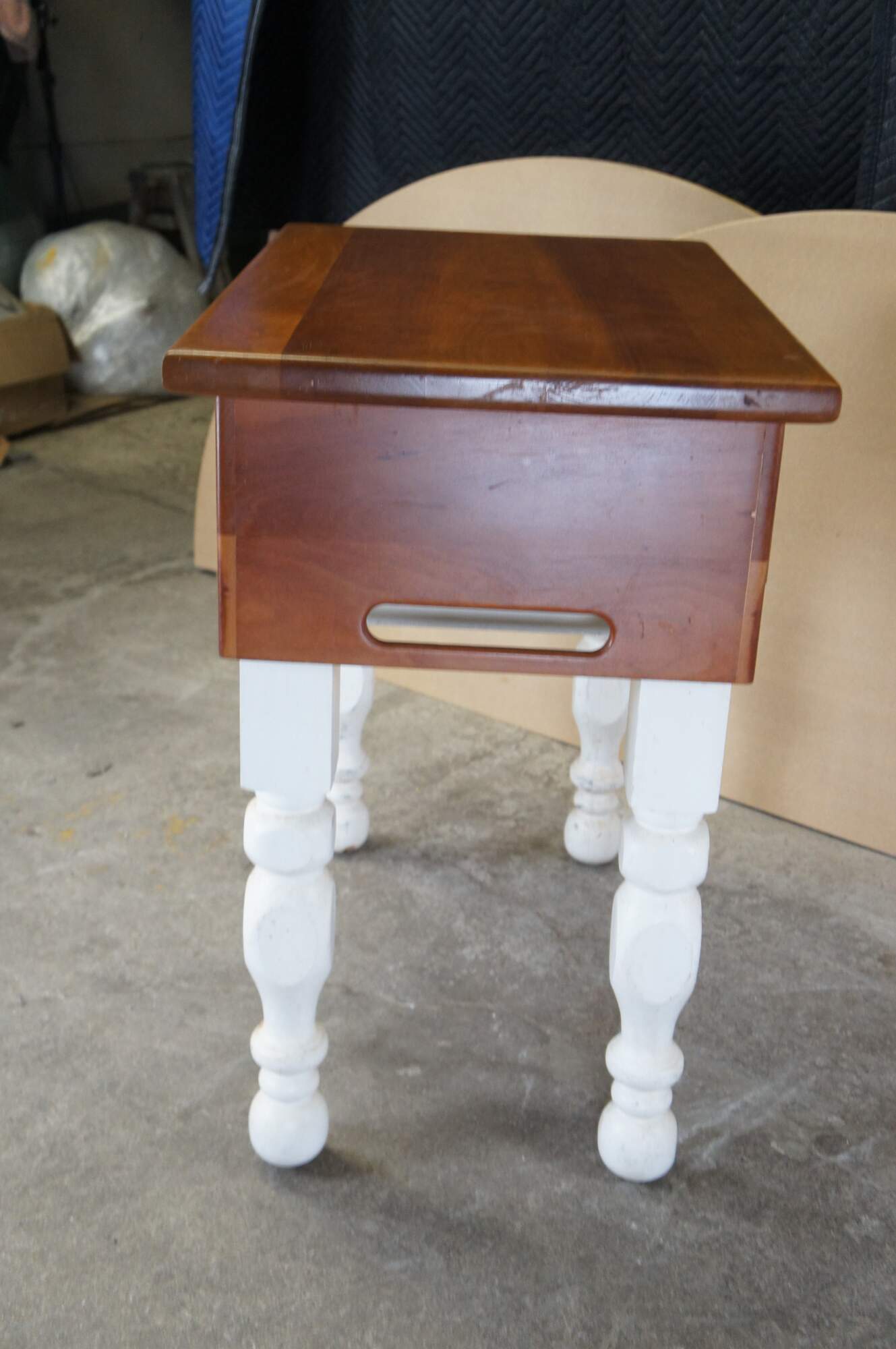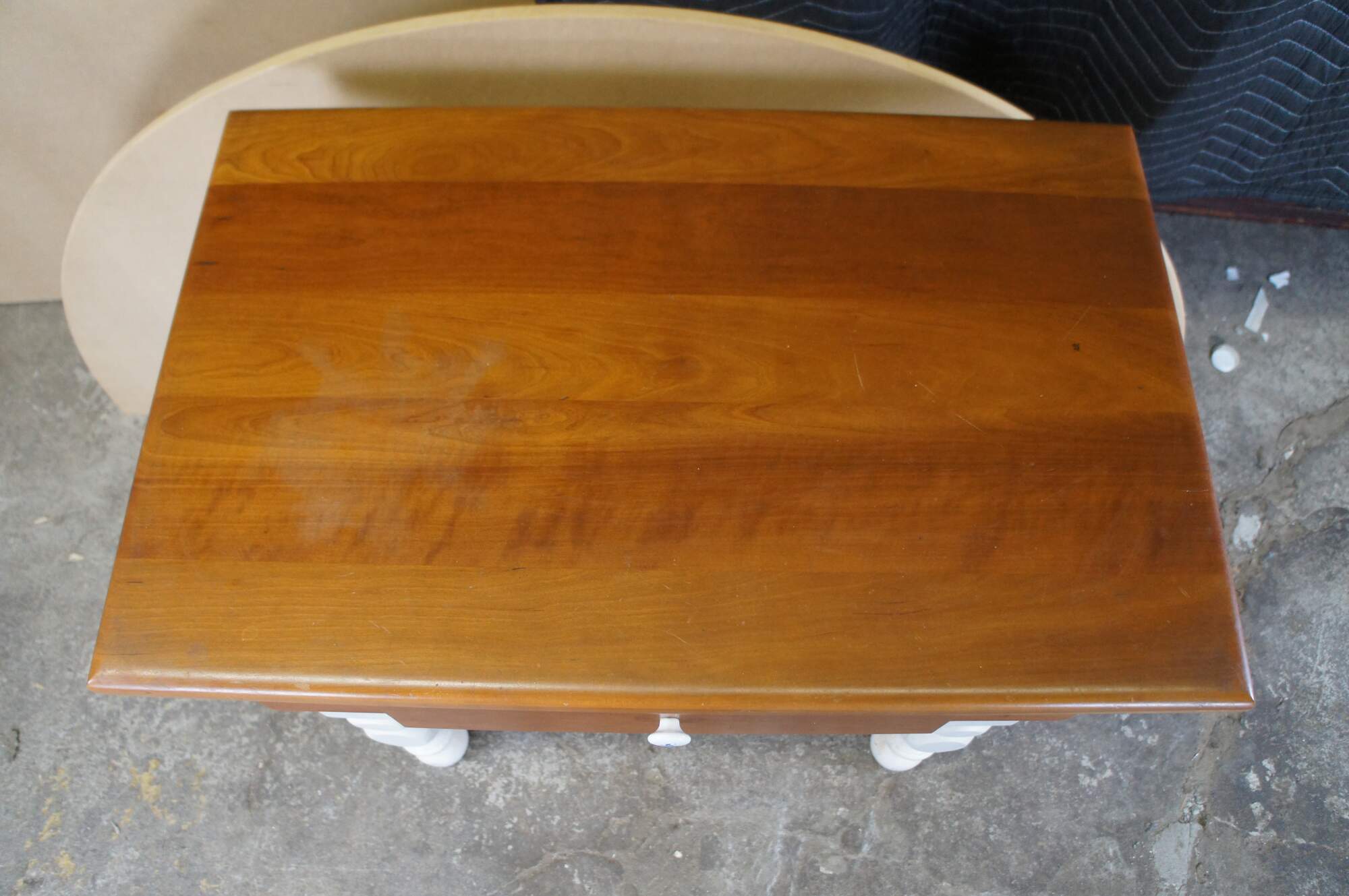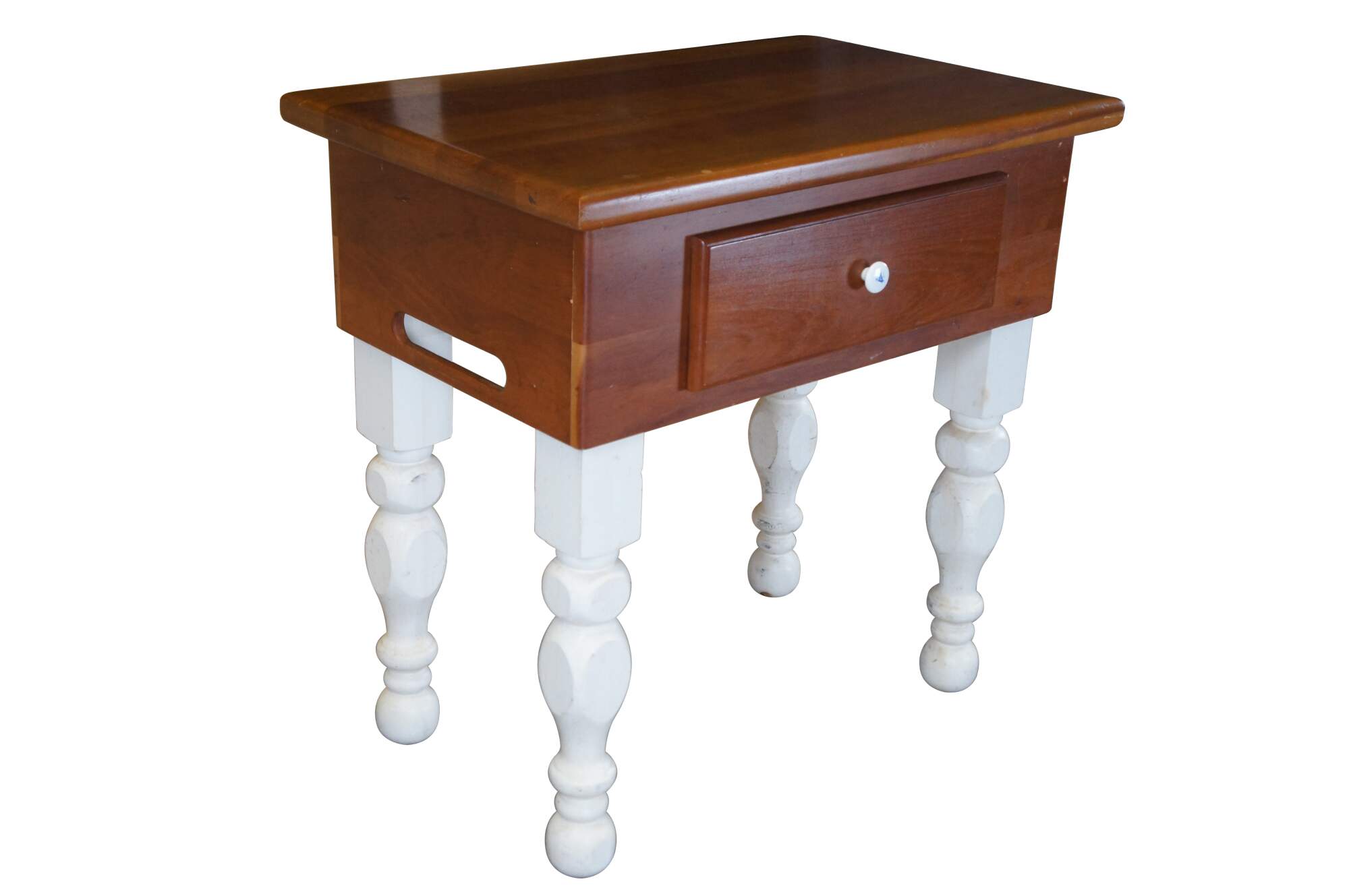 American Country Farmhouse Table or Island. Made from Cherry and pine with painted legs. The table has a large central drawer with porcelain knob. The intended purpose / use would have been a kitchen island, serving stand or cutting area. The sides have cutouts for utensils to hang.