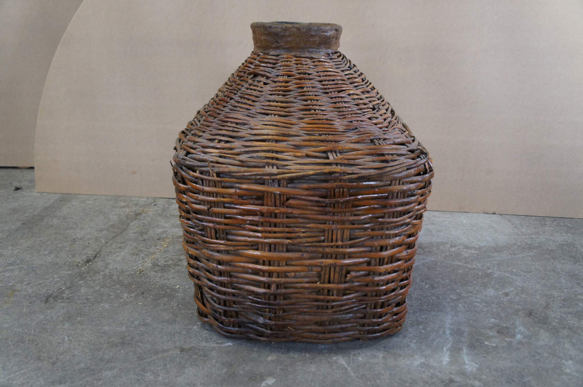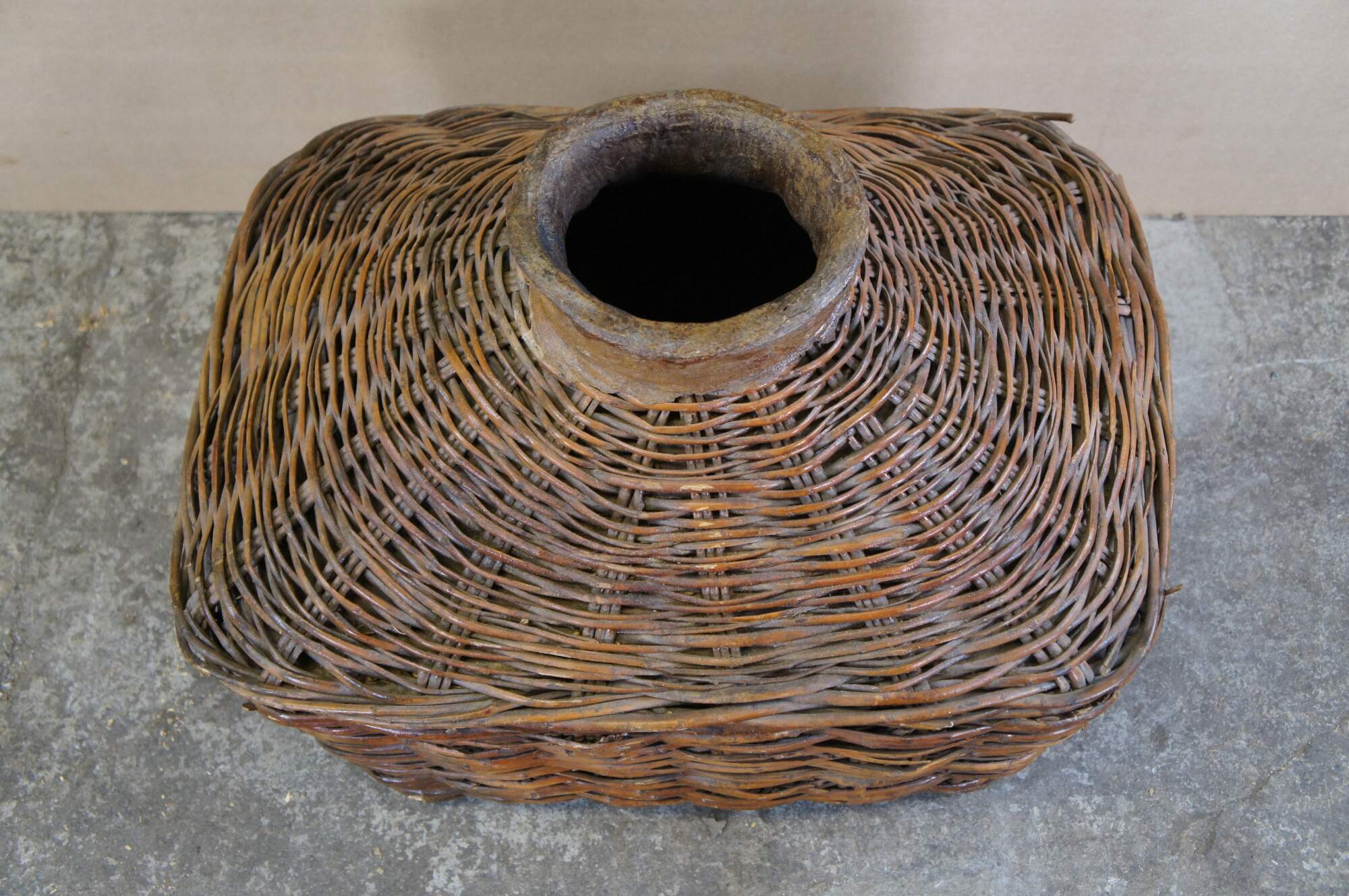 Early 20th Century Chinese Shanxi Willow oil container / food storage vessel / jar / basket. Beautifully woven with natural patina from years of use.
