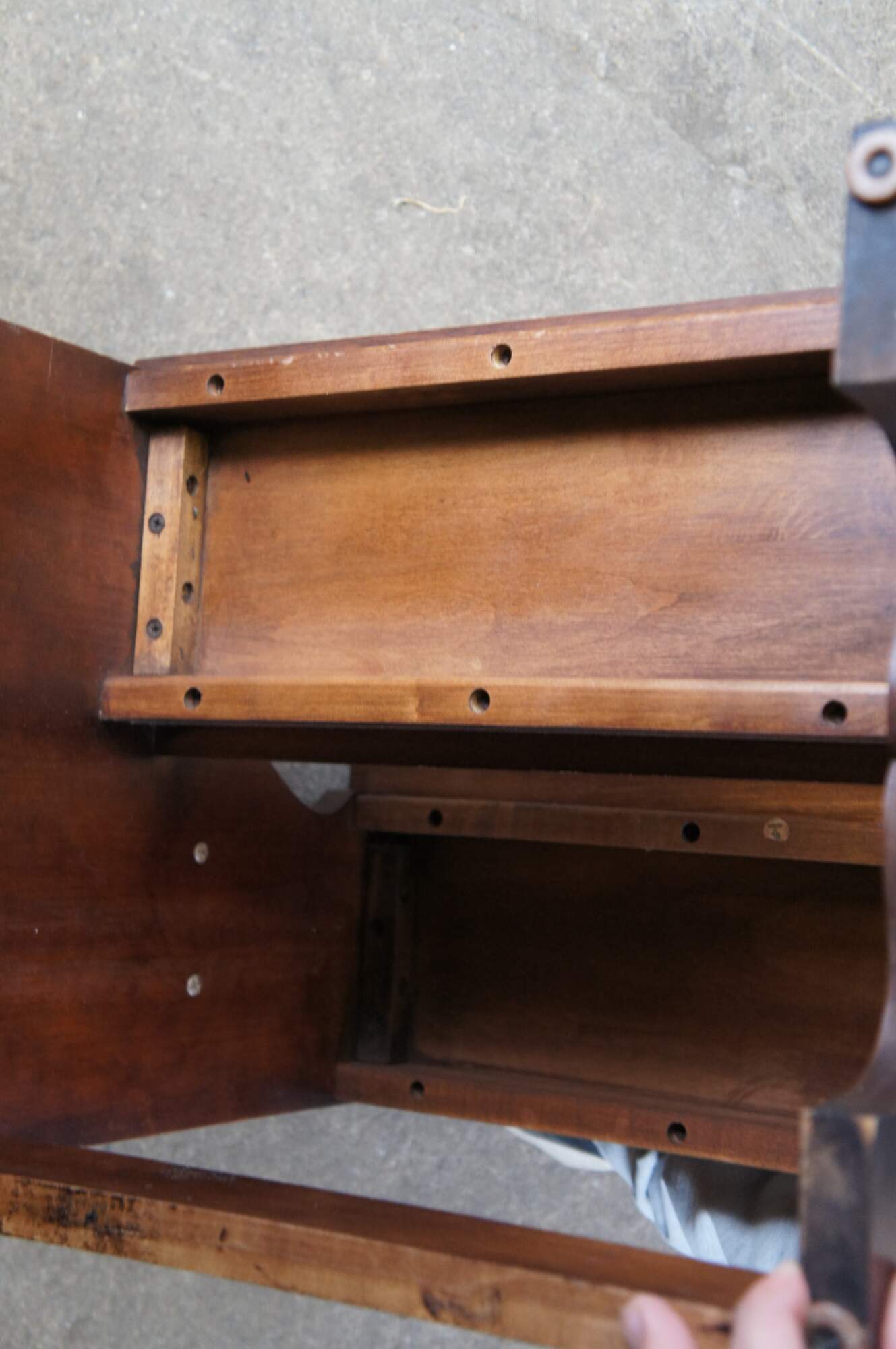 Late 20th Century Chippendale style step stool. Features a cherry finish with interlaced brass bale hardware and serpentine lower aprons. Great for use in the kitchen, library or bedroom.