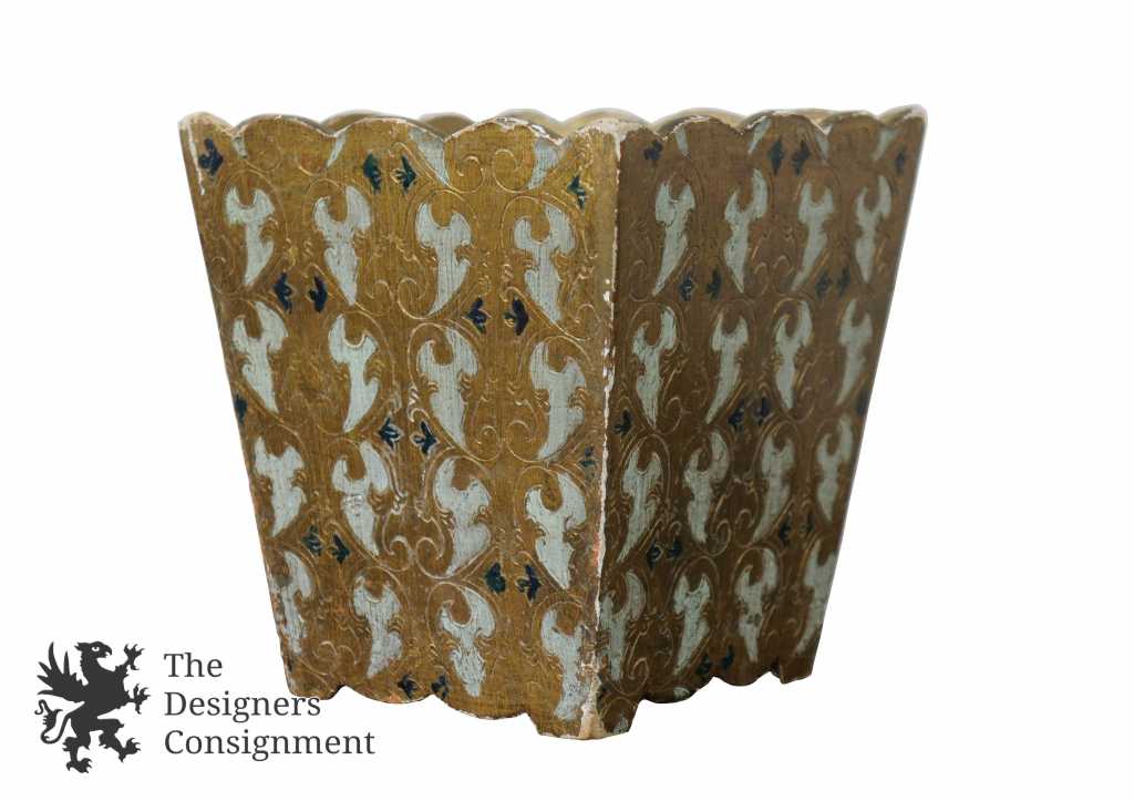 Vintage Decorative Crafts Wood Trash Can Bin Gold Floral Made in Italy