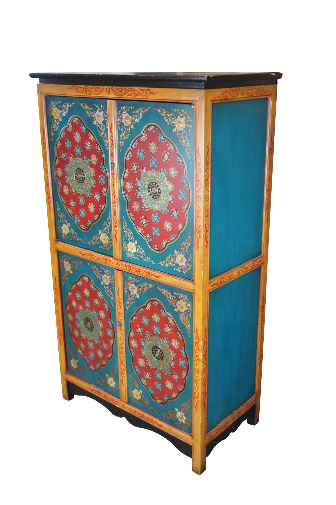 Vintage Moroccan Bohemian Wine Bar Cabinet Linen Press Wardrobe 55"