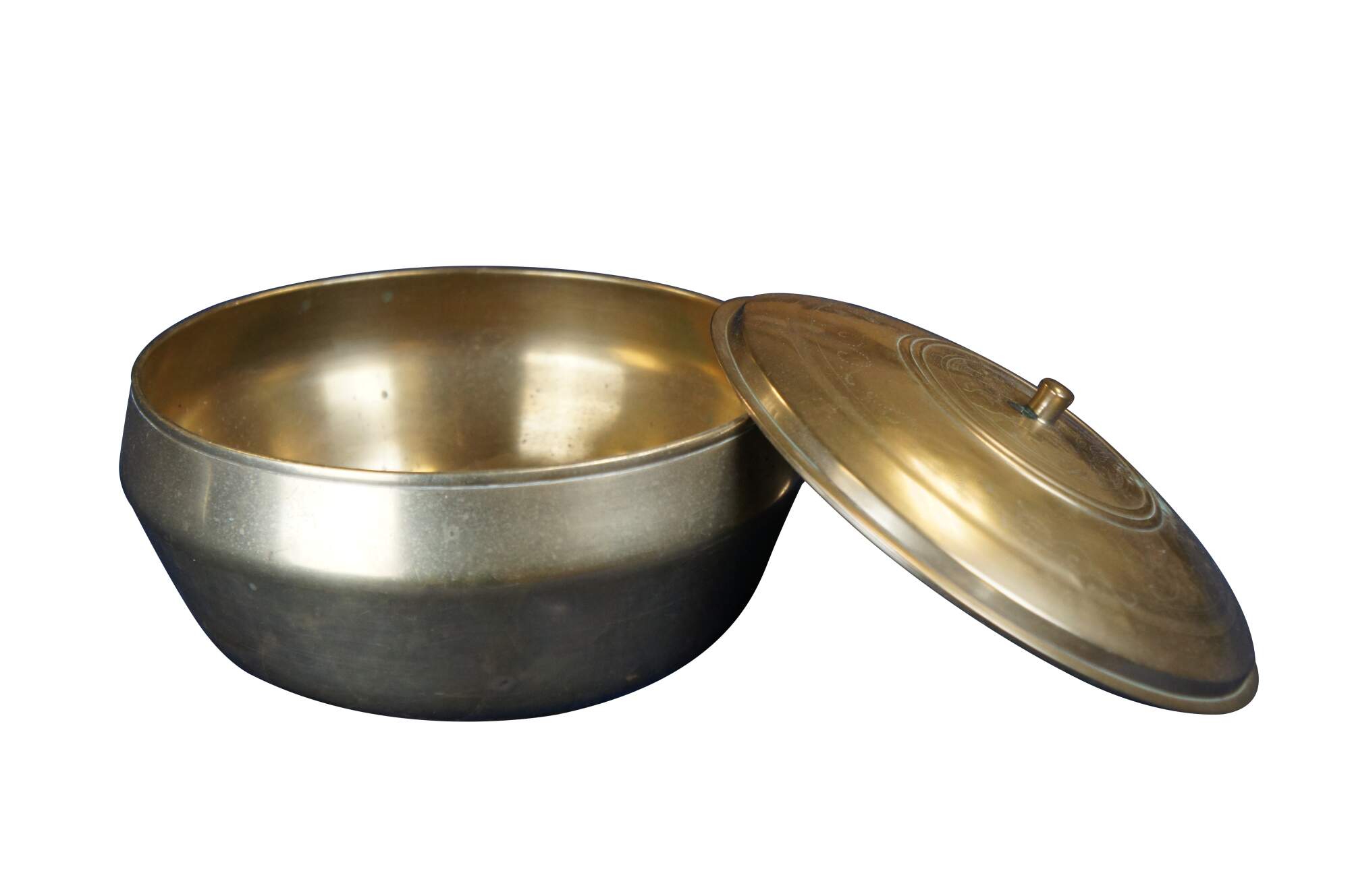 This golden brass bowl represents wealth and good fortune. It means having a job for a lifetime, with no worries about food and clothing. It's a treasure bowl to gather your own happiness, wealth and all precious things.