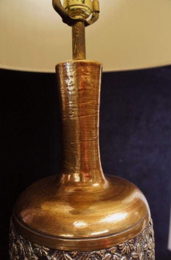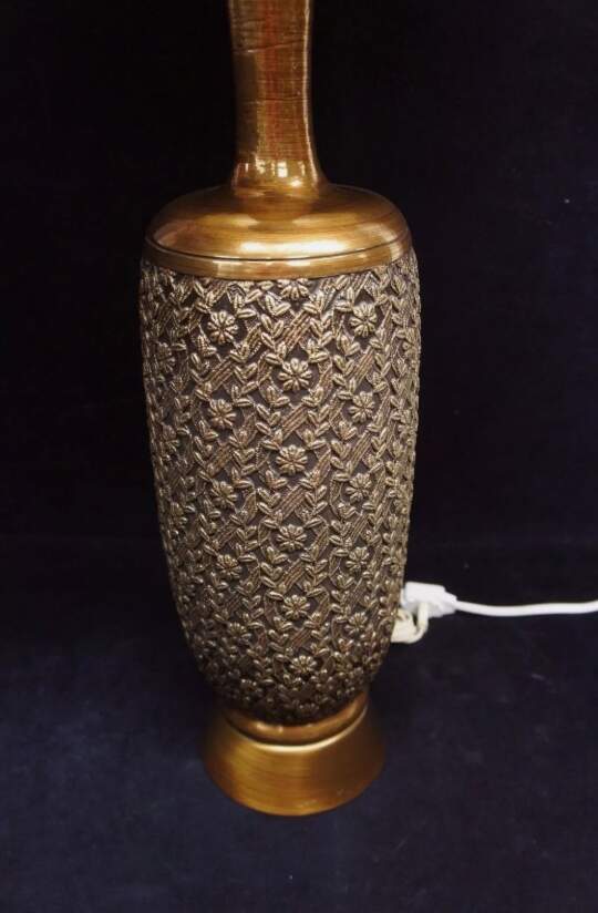 A beautifully designed lamp with cylindrical shade. Features a low relief floral design. A fun addition to any home