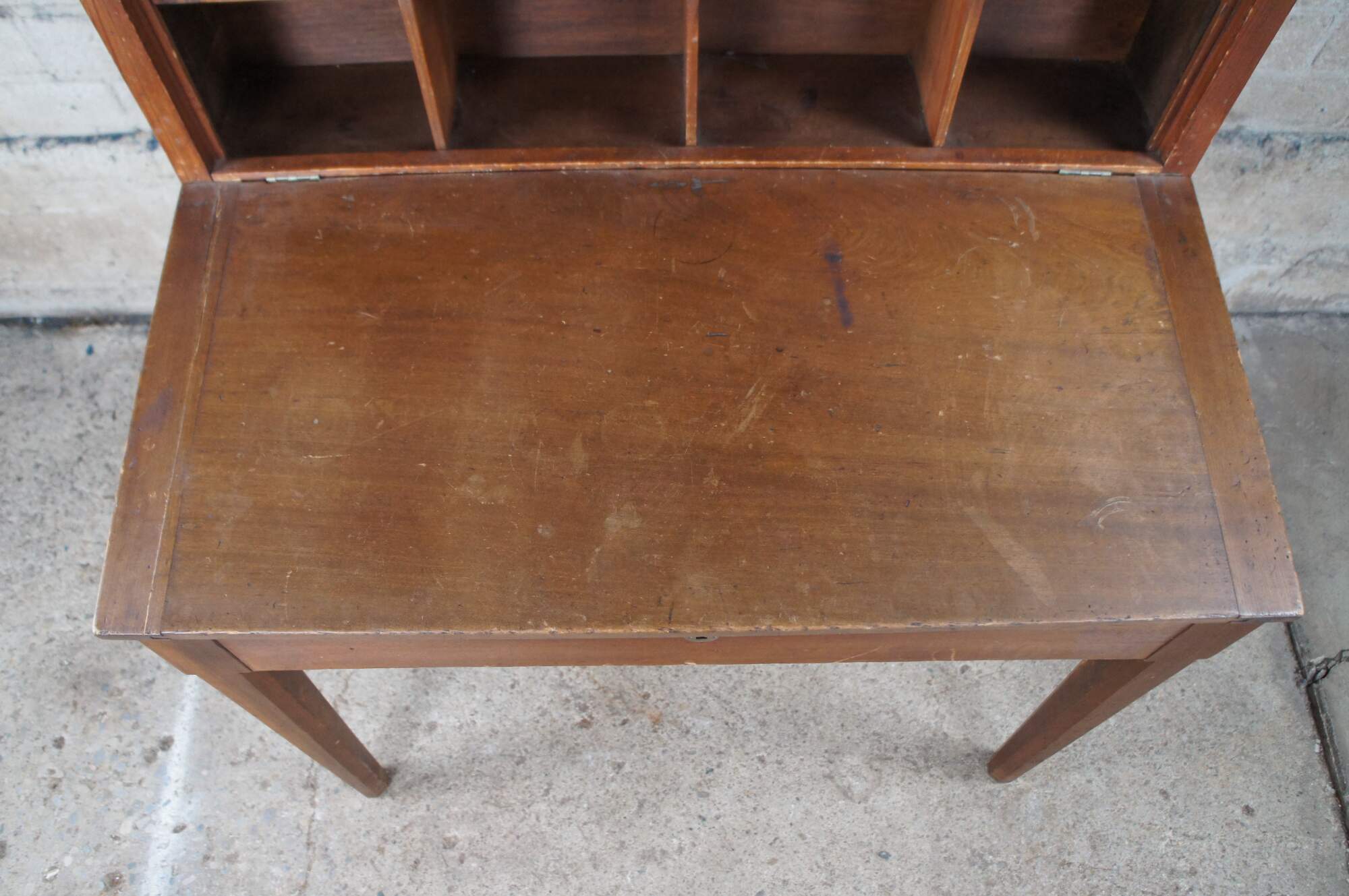 Vintage American Pine Clerks Desk, Circa 1930-40s. Features a hinged and sloped top over chamfered, tapered legs. The petite hutch along the back is divided into compartments and is perfect for storage of letters or small books.