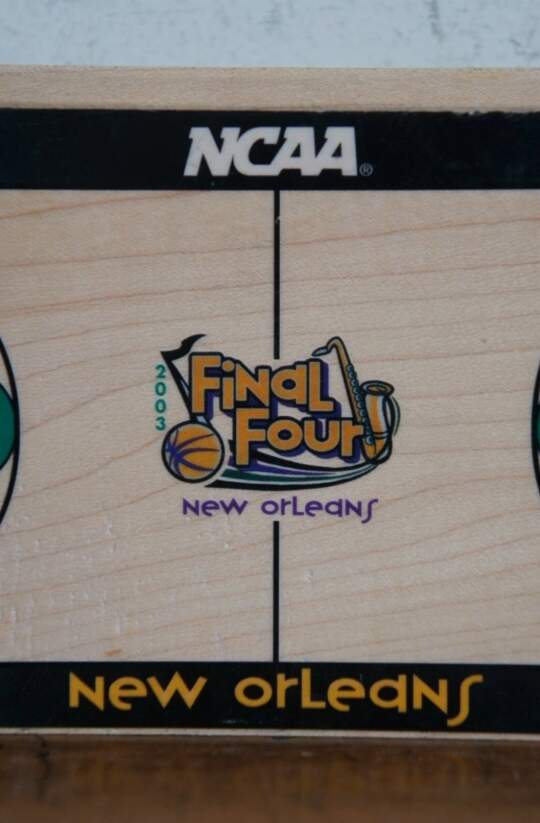 New Orleans, LA 2003 NCAA Men's Final Four basketball tournament souvenir floor board piece / tile. Horner Flooring Company - Pro King floor board printed with basketball court design.