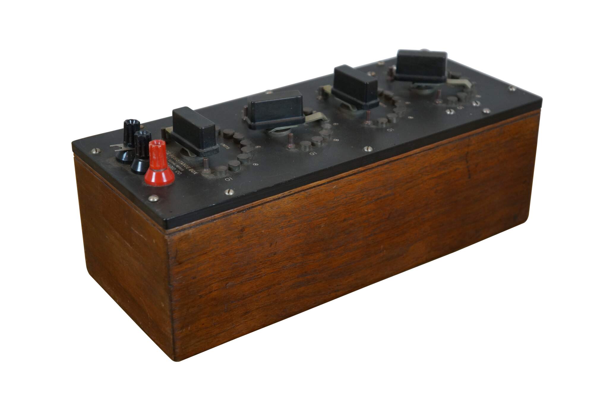 Mid to late 20th century (pre-1975) Decade Resistance Box - Type 102J - Serial No 966 - General Radio Company, Cambridge Mass. Wood case with Bakelite top.