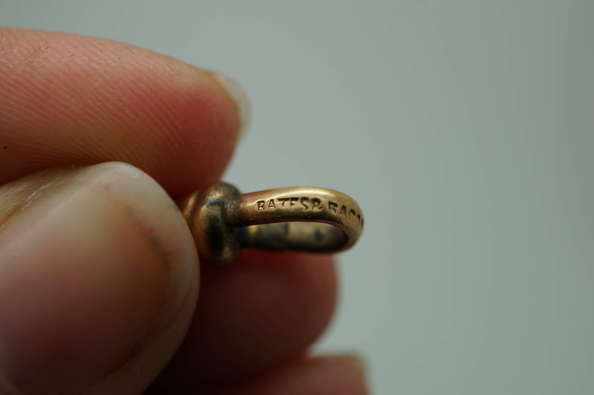 "Bates & Bacon was an American jewelry firm established in New England in the mid-19th century. The business is widely recognized in jewelry-collecting circles for making a bevy of rolled gold and gold-filled bracelets. Pocket watch collectors associate the Bates & Bacon name with the firm’s popular watch cases, which were made beginning in the late 1800s. The company that became Bates & Bacon was founded in Attleboro, Massachusetts, in 1857 as Skinner, Viall & Company. The name changed to Bates, Capron & Williams in 1858. George M. Bacon came aboard as a partner in 1867 as other partners sold their share of the business, and the firm became Bates & Bacon. The name changed again to Briggs Bates & Bacon when D.F. Briggs joined the firm in 1922. In 1930, the History of Massachusetts Industries: Their Inception, Growth and Success by Orra L. Stone reported that the “present-day unit of Bates & Bacon, Inc. is made up of A.S. Blackinton and F.E. Tappan, and it employs 150 operatives.” Other members of the Tappan family were associated with D.F. Briggs in the early 1900s, so the timing and overlap with the Bates & Bacon and Briggs Bates & Bacon names and the related marks used by the two companies are somewhat ambiguous. Bates & Bacon was known for making rolled gold bracelets in styles popular during the Victorian era, and the business continued to make a variety of bracelet designs into the 20th century. Over time, the company’s jewelry lines expanded to include chains, lockets, pins, and earrings. Gold watch cases were added to the firm’s inventory in 1882, and eventually gold-filled cases were made as well. The watch case division was sold to Philadelphia Watch Case Co. in 1901, though the mark B & B was still used on watch cases made after the sale. The Briggs Bates & Bacon factory continued to produce jewelry through the 1950s. D.F. Briggs made a variety of expansion bracelets under the brand Carmen, named after his daughter. The Carmelita brands that are sometimes associated with Bates & Bacon appear to have been made before the companies merged. " (Source: Worthpoint)