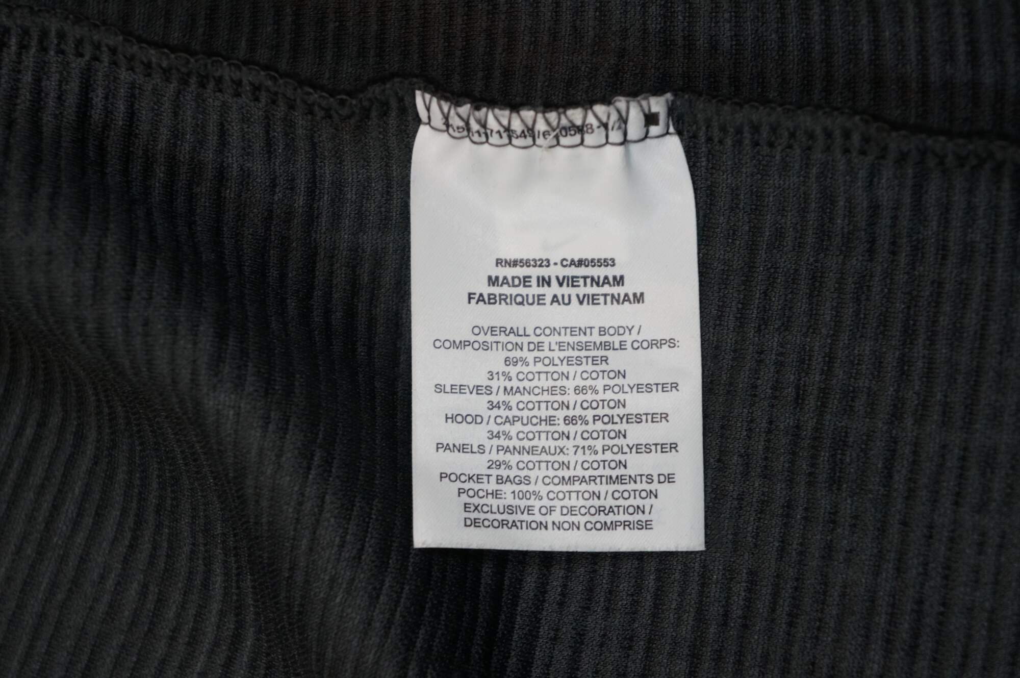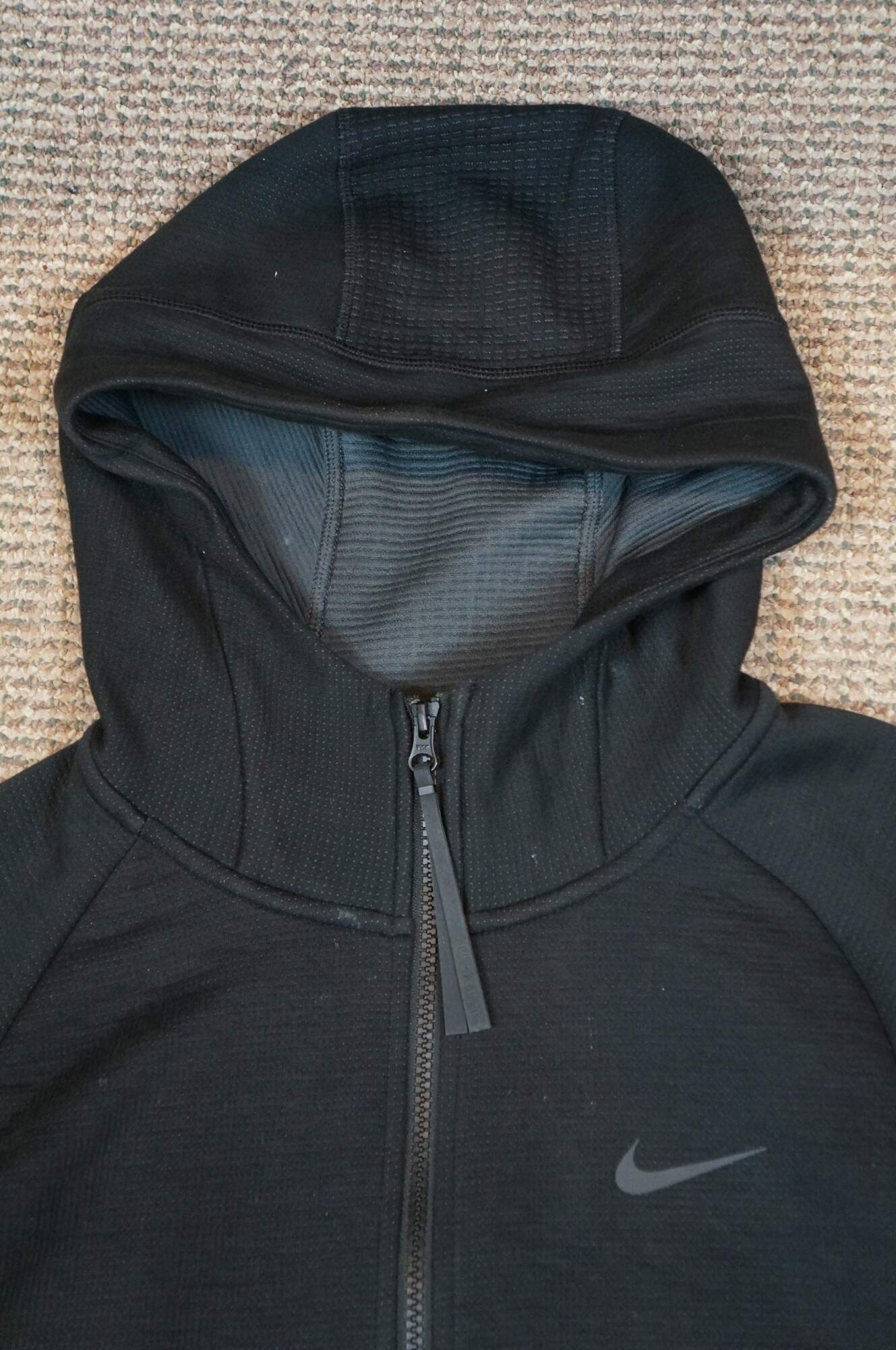 Vintage Nike men's Sportswear Tech Pack Windrunner hooded sweatshirt jacket. Black texture jersey. Zipper closure. Two exterior hip pockets, zipper closure. Two interior hip pockets. Polyester / Cotton blend. 14 09 11 05. Made in Vietnam.