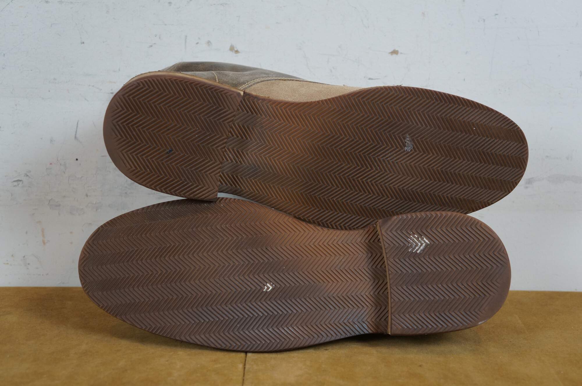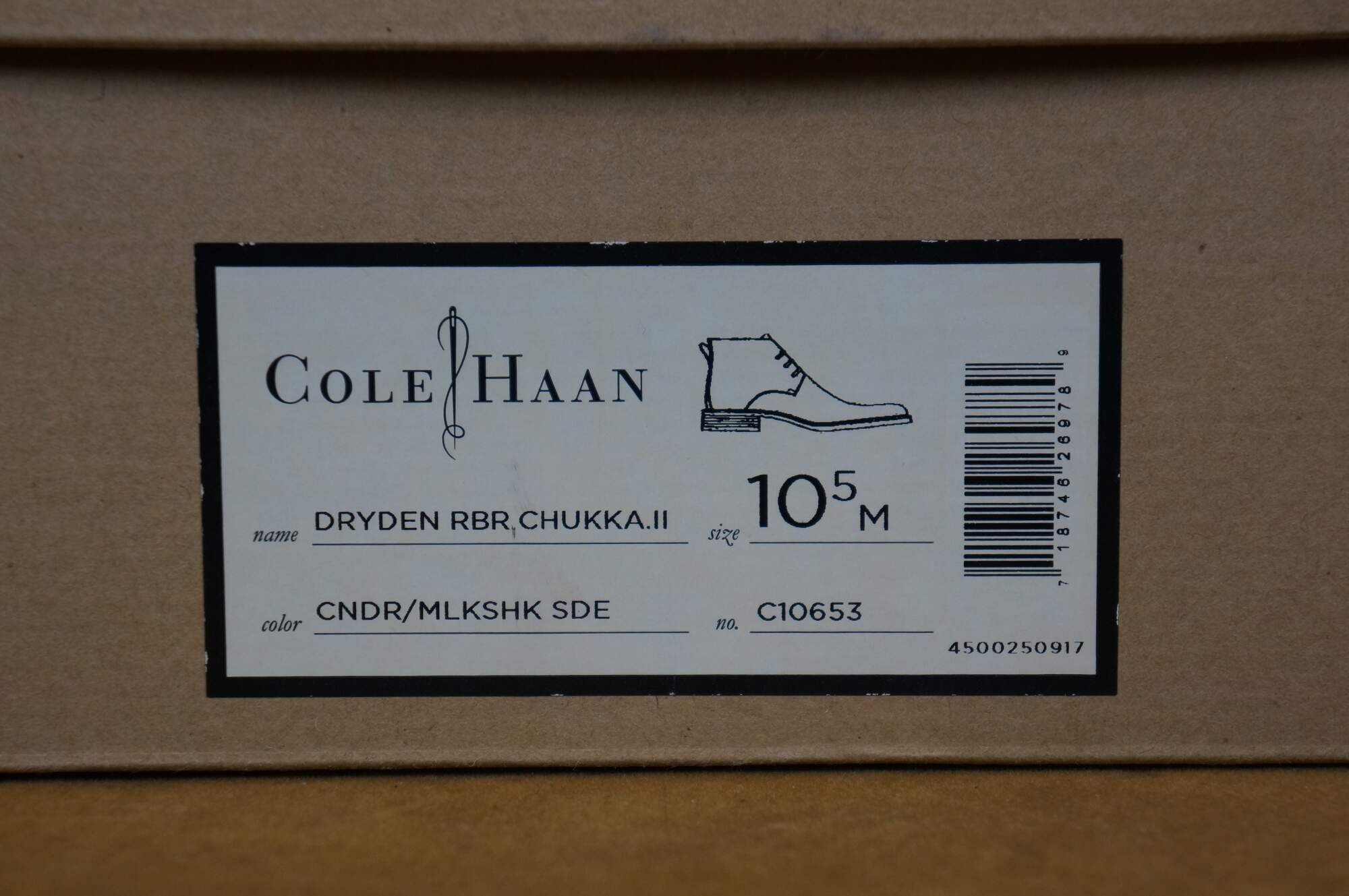 Vintage Cole Haan Dryden Chukka ankle height boot in Cinder / Milkshake. C10653 U D2. Dark brown leather ankle with beige suede toe and brown sole. Made in India. Includes box.