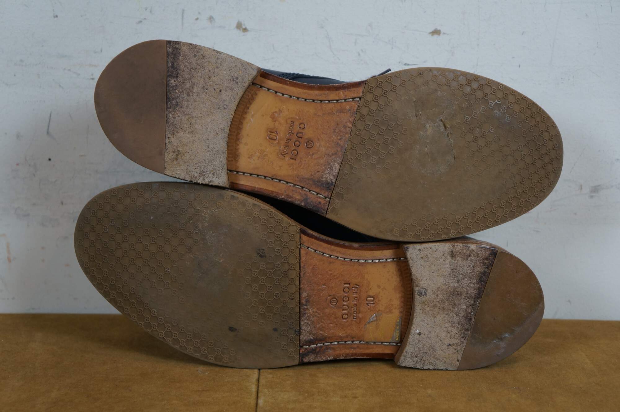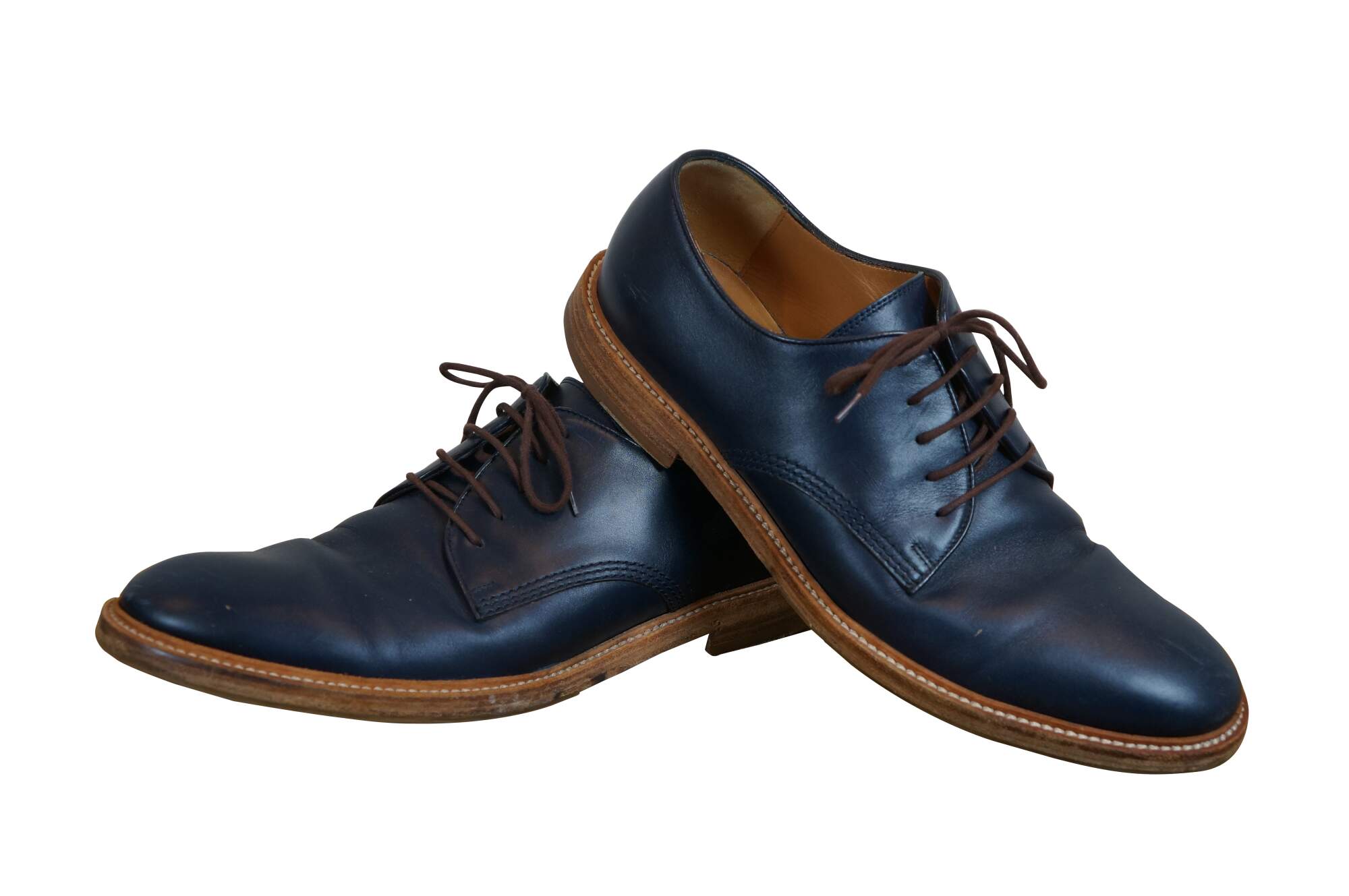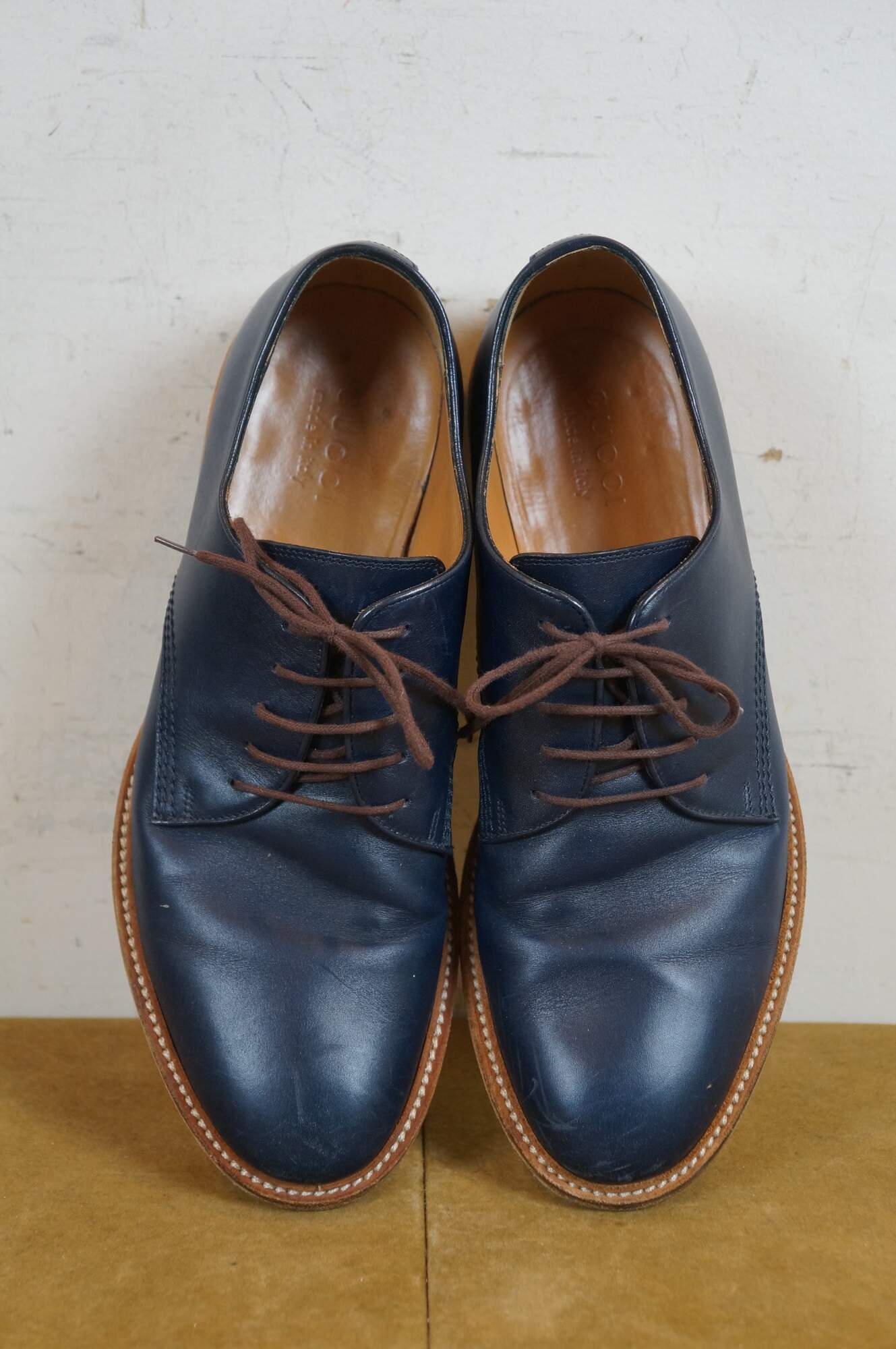 Vintage Gucci men's navy blue leather oxfords with brown sole. 281933 ARP00 4009 - Cirano Lux. Made in Italy. Includes box and dust bag.