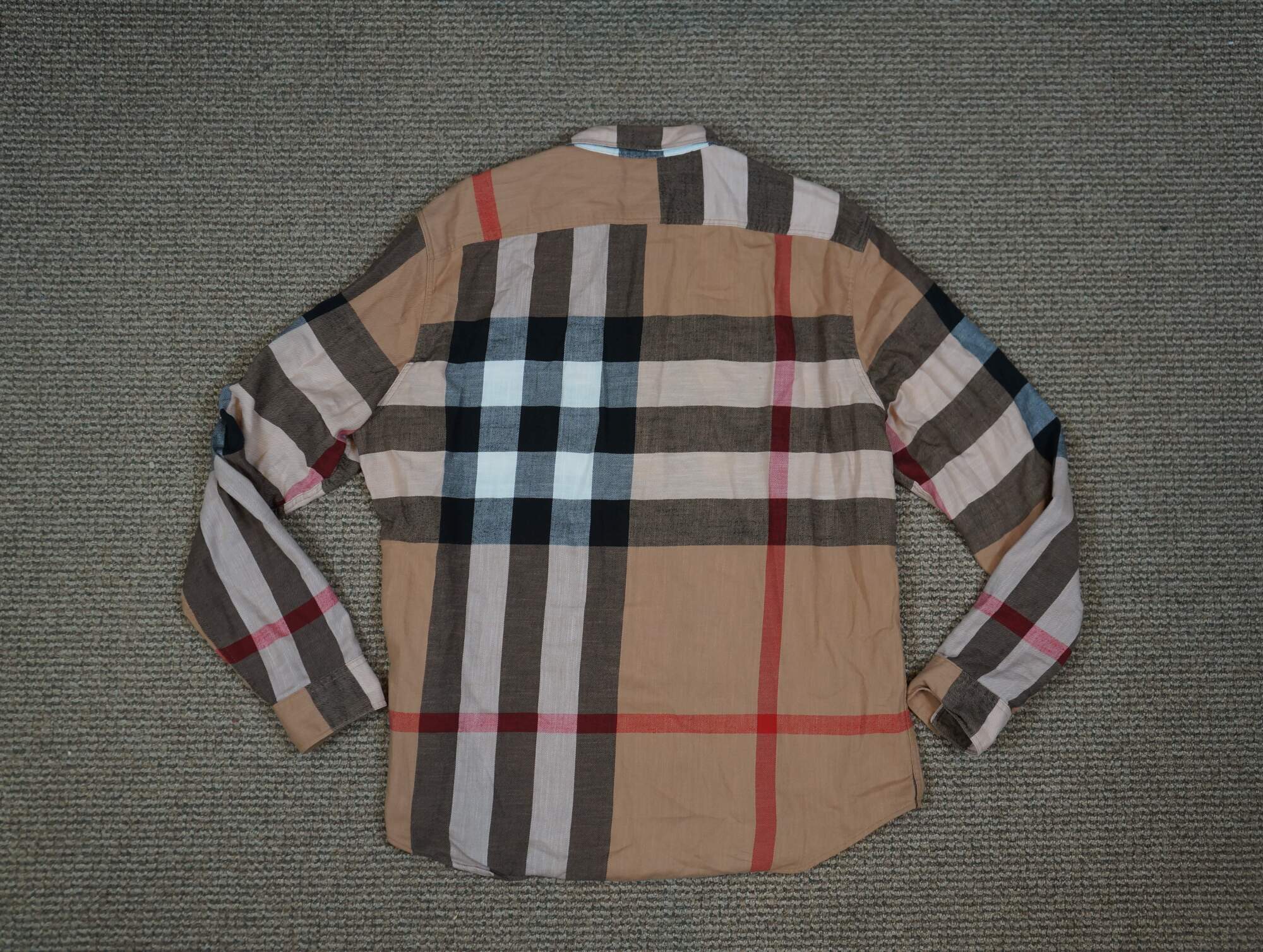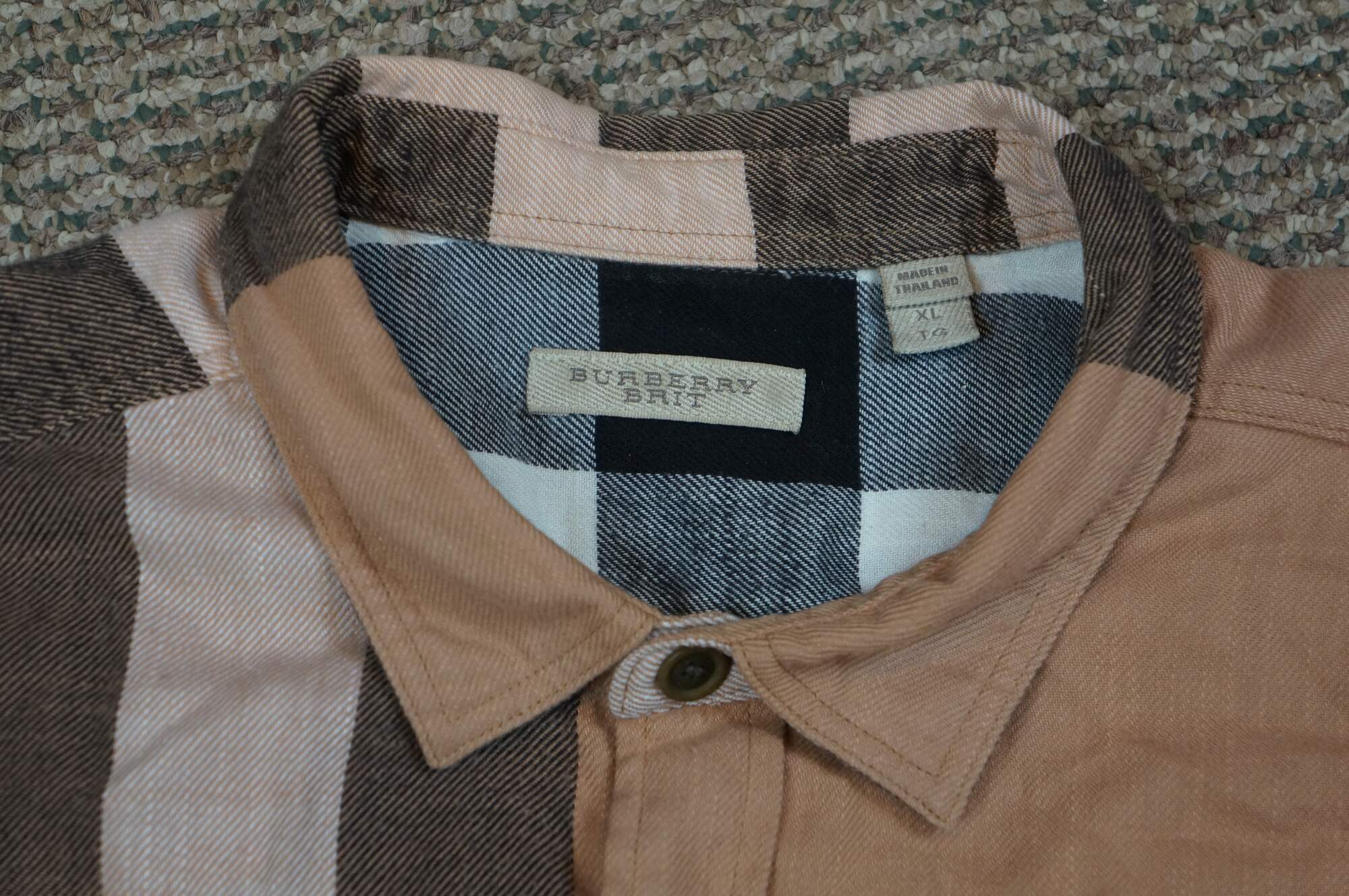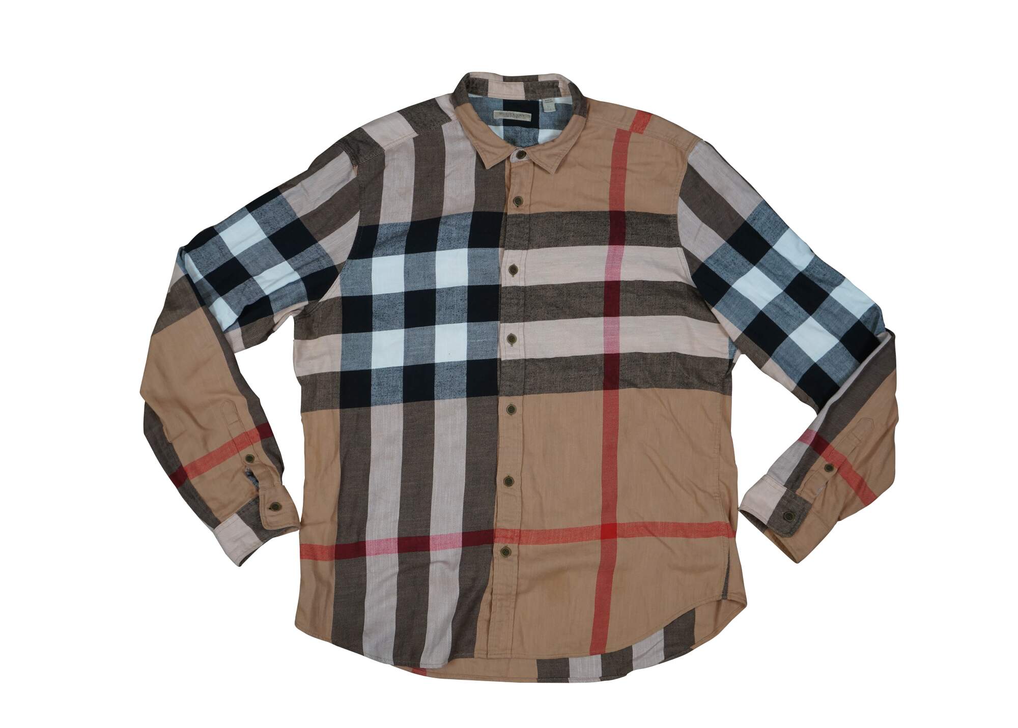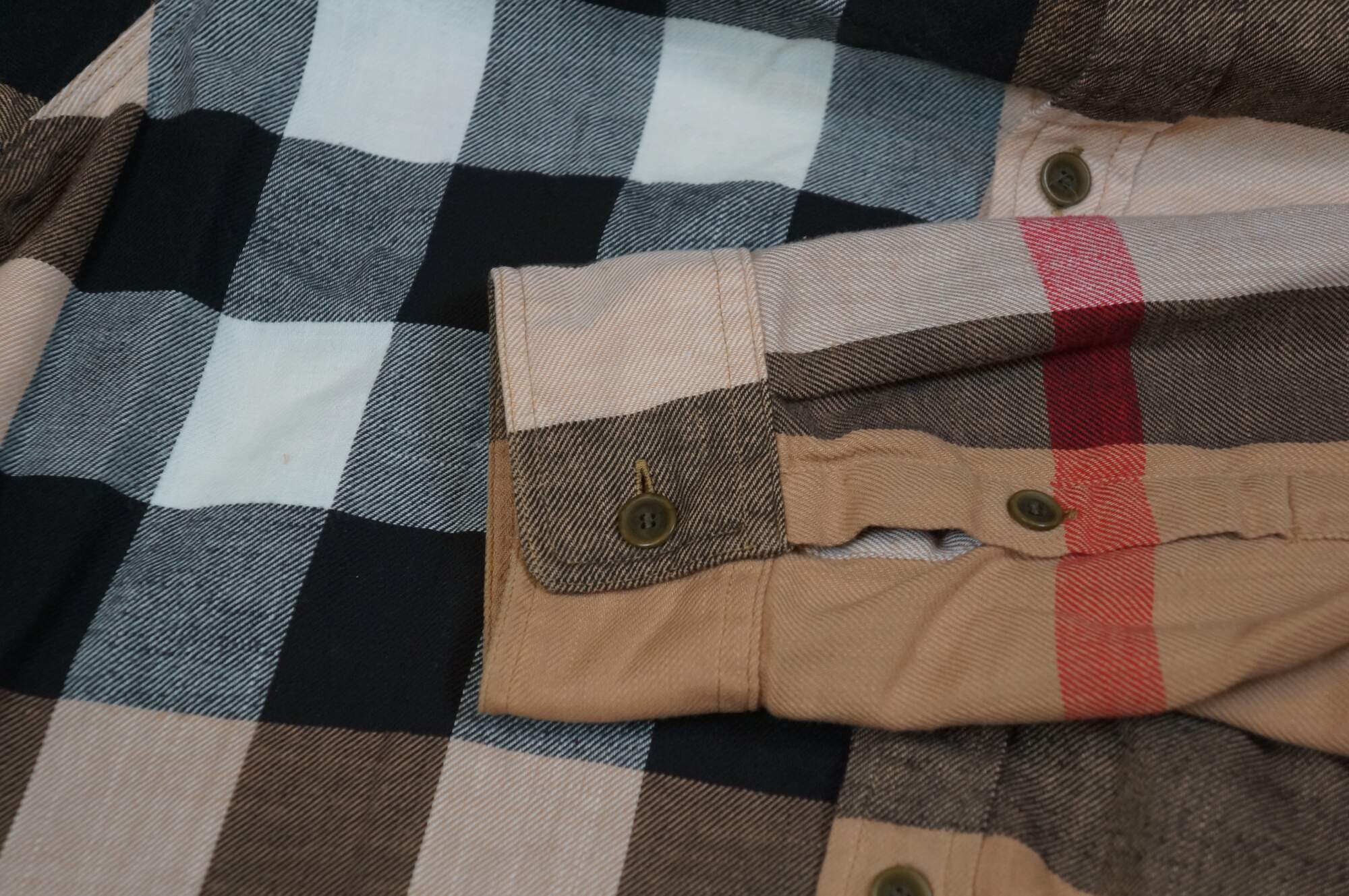 Vintage pair of Burberry Brit men's long sleeve, button up, 100% Cotton flannel shirts. Siganture Nova Check and Dark Pink / Red Plaid with button down collar. Made in Thailand.