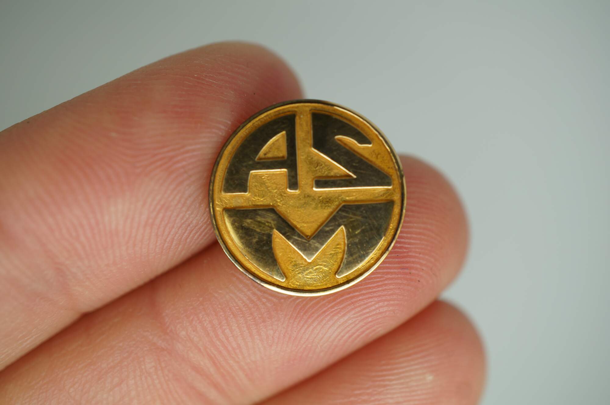 Vintage 10K gold lapel pin / tie tac featuring the initials ASM in art deco font. Marked 10K SG on reverse.