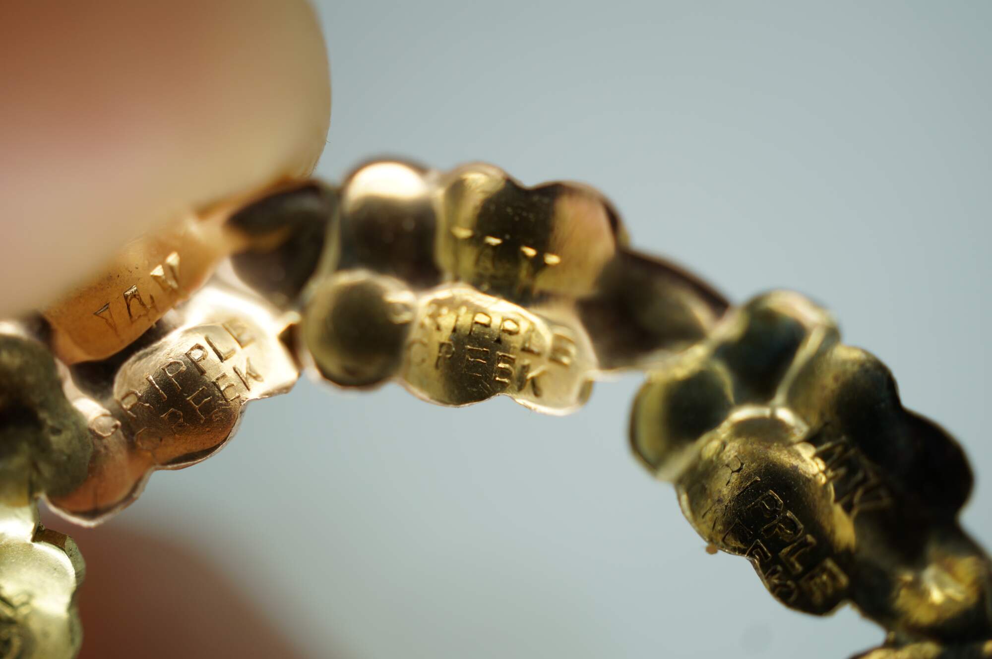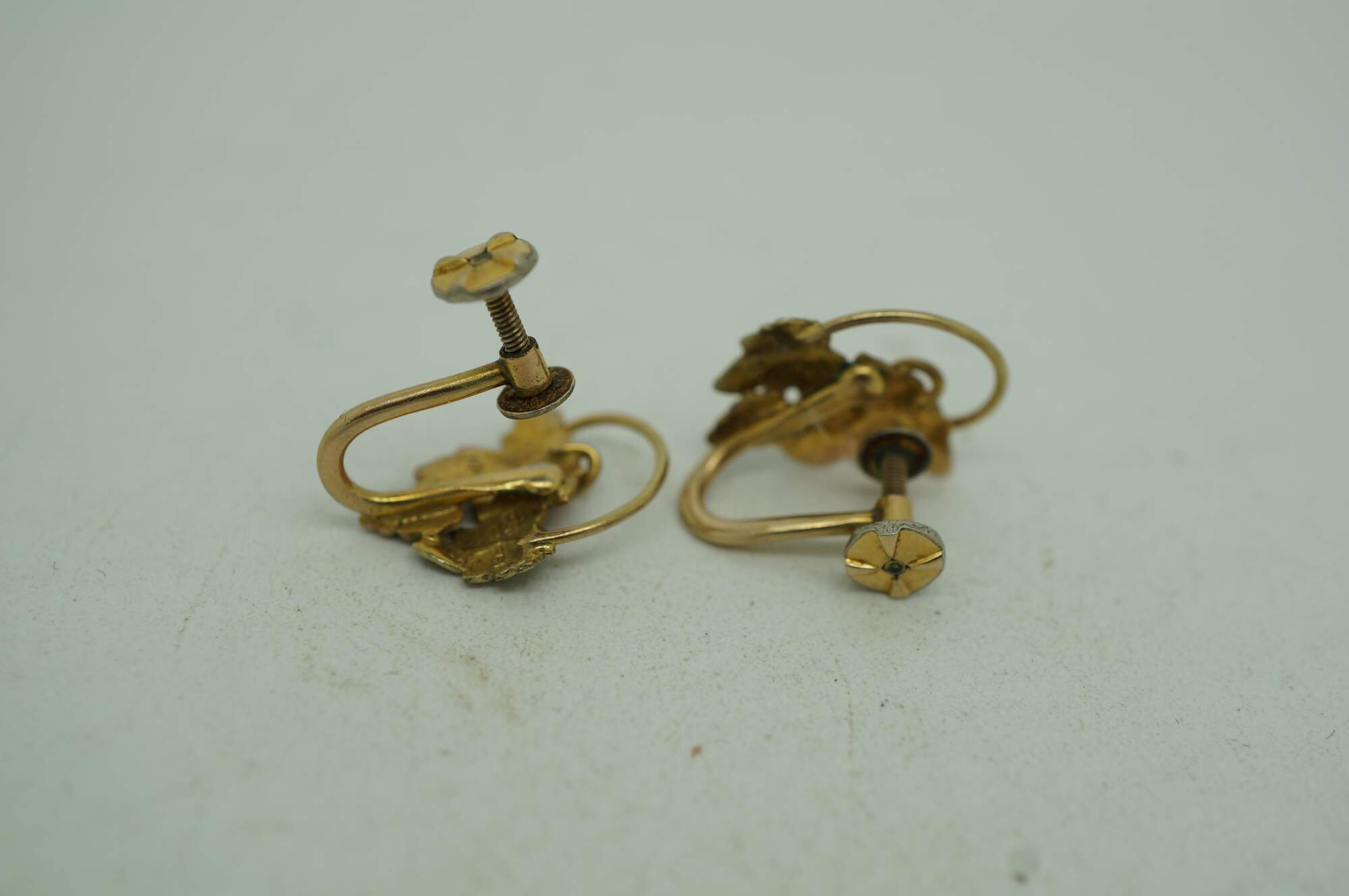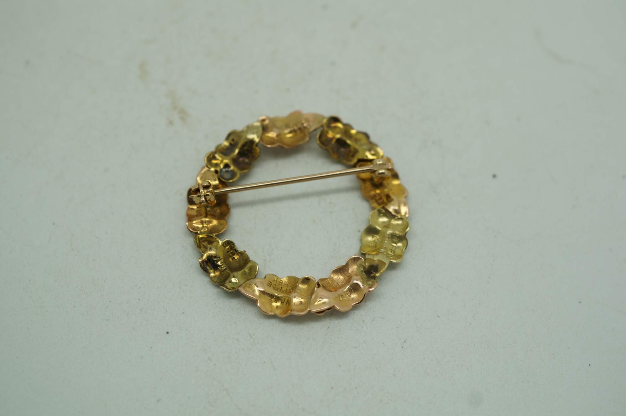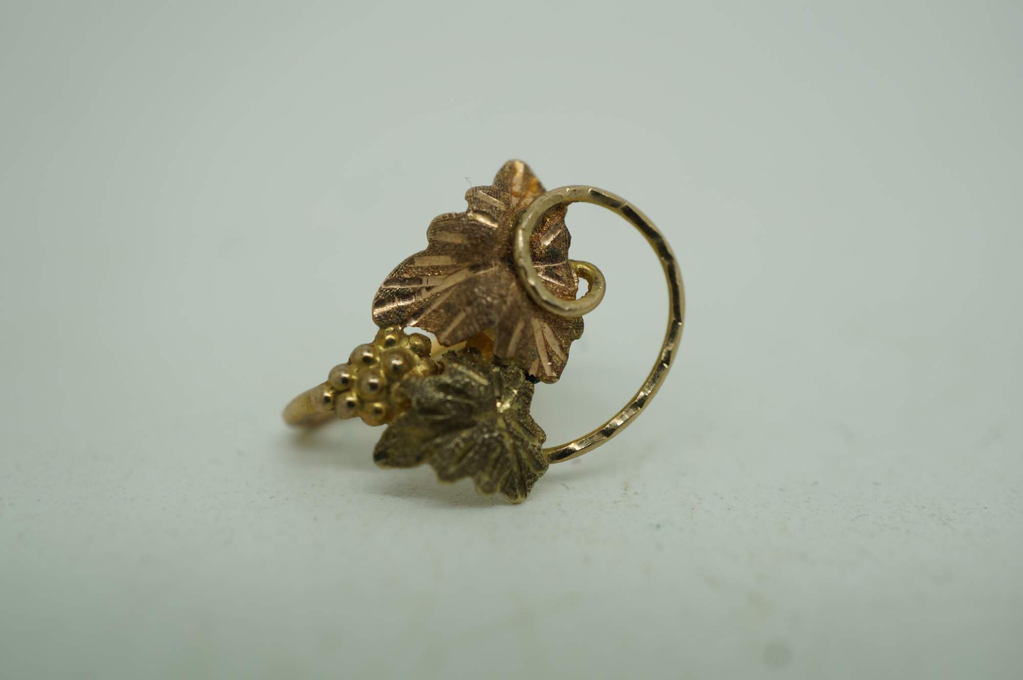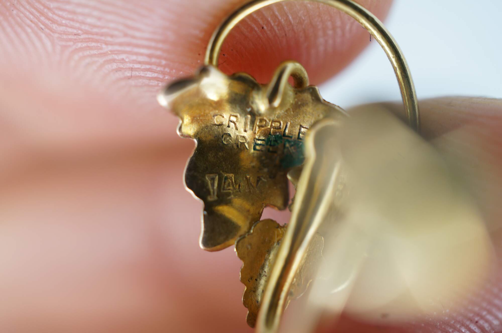 Vintage Cripple Creek 14 K Gold screw back earrings and pin / brooch featuring a delicately tinted green and rose gold grapevine / Black Hills Wreath design. Screw backs are 14k with 1/20 12K GF stems.