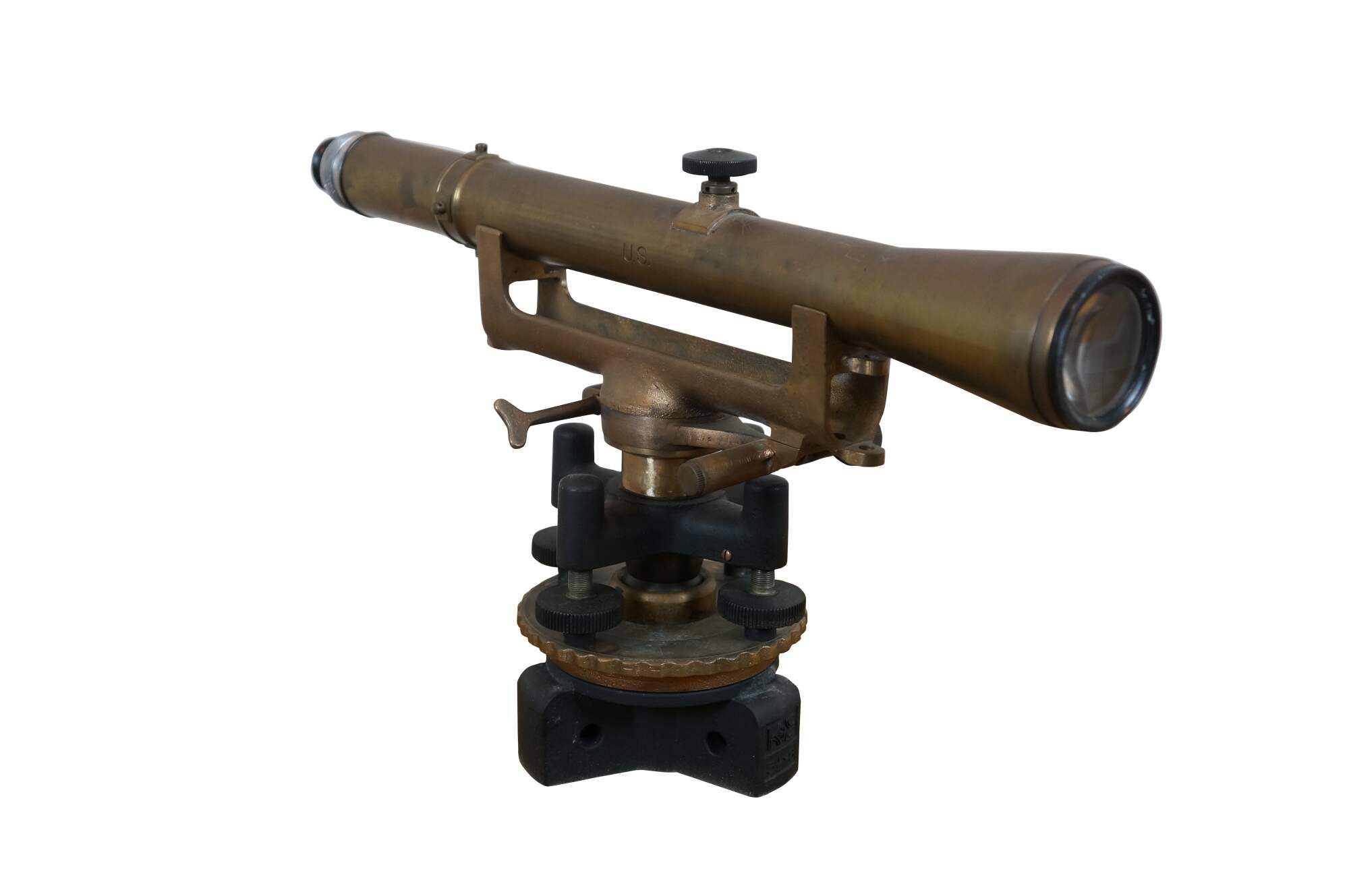 Mid 20th century US Army issue Keuffel and Esser / Gurley surveyor's scope / transit level. Scope marked W. & L.E. Gurley, Troy, NY, USA - 431915. Base marked 8 THDS - K&E - 3 1/2 x 8.