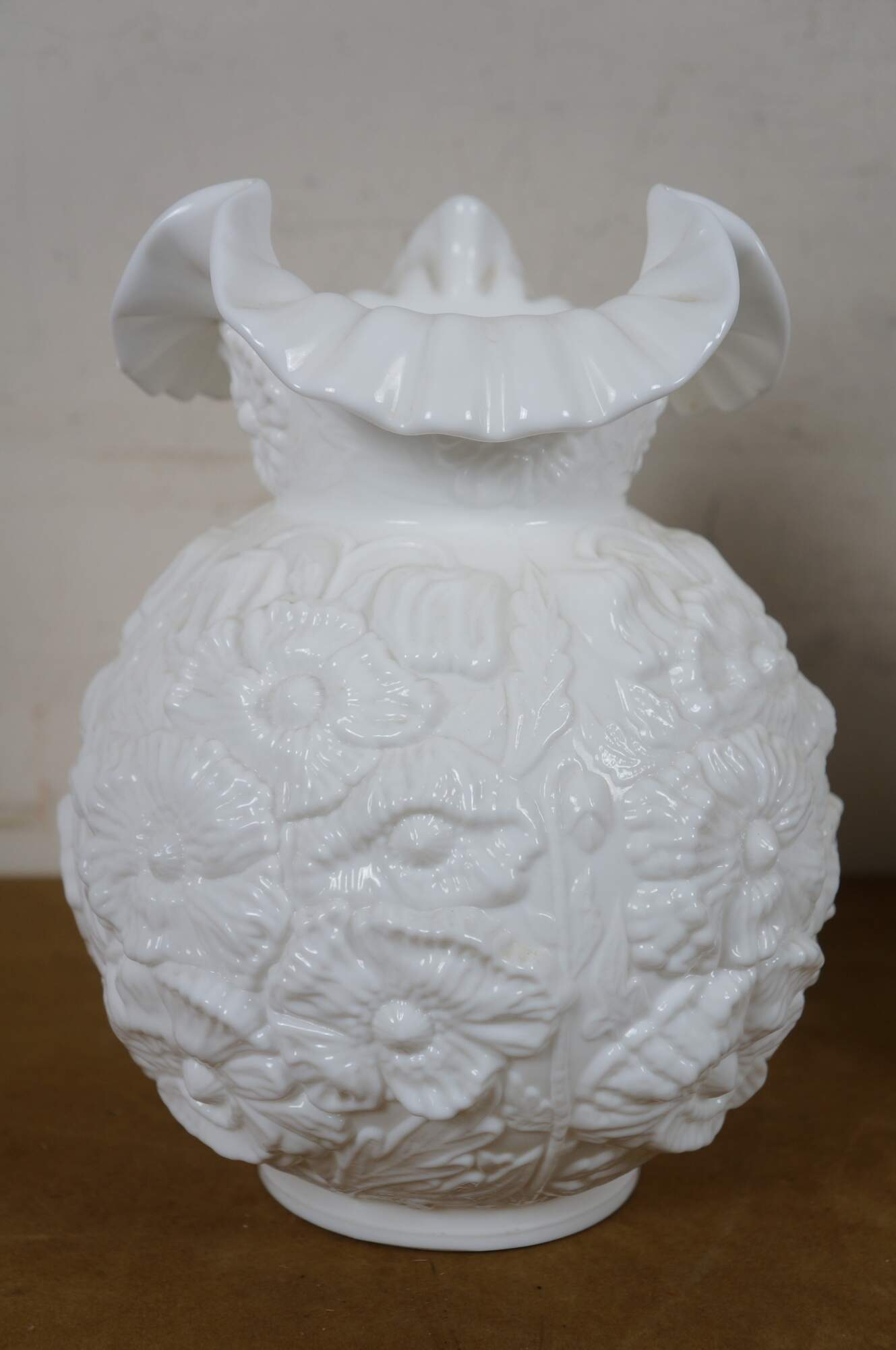 "Fenton Art Glass Company is the largest manufacturer of handmade colored glass in the United States today and among the foremost glass manufacturers in the world. Known for its beautiful colors and patterns, Fenton Art Glass continues an American tradition with its skilled glassworkers and talented decorators. Fenton Art Glass was founded in 1905 by brothers Frank L. and John W. Fenton. They began their business In Martins Ferry, Ohio, by painting decorations on glassware made by nearby manufacturers. Prompted in part by the desire to work with a broader range of colors, the brothers soon decided to produce their own glass, and opened the Fenton Art Glass factory in Williamstown, West Virginia in 1907. In fact, Fenton introduced "iridescent ware" later that same year. Now known as "Carnival" glass, it's a popular collectible item today. Frank L. Fenton's love of color and his admiration for glass artisans like those at Tiffany and Steuben helped keep Fenton Art Glass in the forefront of the handmade art glass industry for the next few decades, but during the Depression Era and the early years of World War II, Fenton also produced practical items such as mixing bowls and perfume bottles. By the late 1940s, a new generation of Fentons was running the company. Brothers Frank M. and Wilmer C. (Bill) Fenton would lead the Fenton factory through significant growth for the next 30 years. In 1986, George W. Fenton, Frank's son and a third-generation family member, became president of the company. Eight Fenton family members worked together along with more than 100 employees in Williamstown, West Virginia, creating new colors, patterns and handpainted decorations that result in handmade glass artistry that is loved by collectors around the world. Traditional glassmaking ceased in 2011. The Fenton Art Glass Company property was sold in 2017 to Wood County Schools. Plans are for the factory to be demolished and a new elementary school built on the site." (Source: Fenton Art Glass)