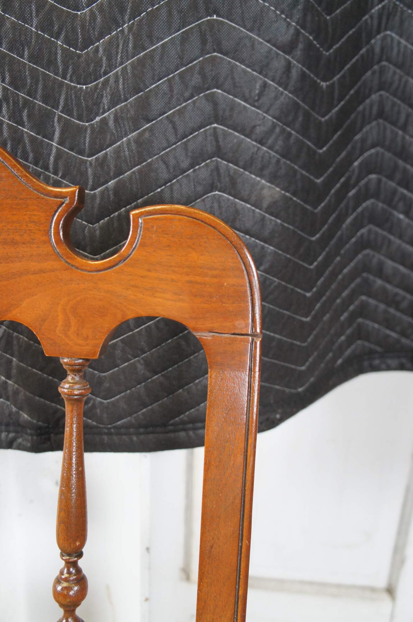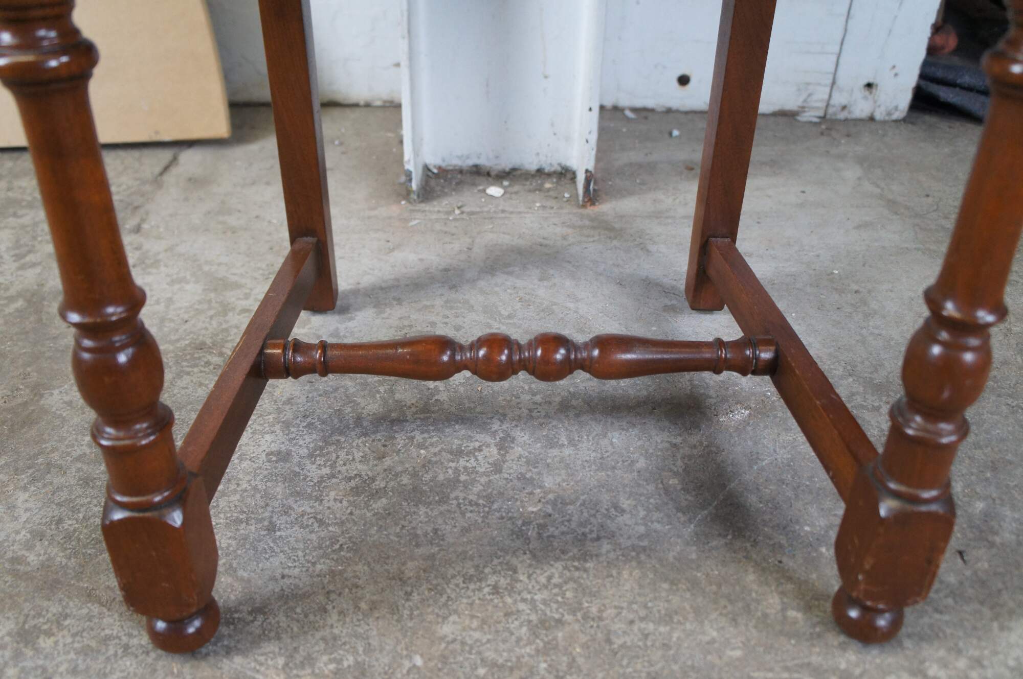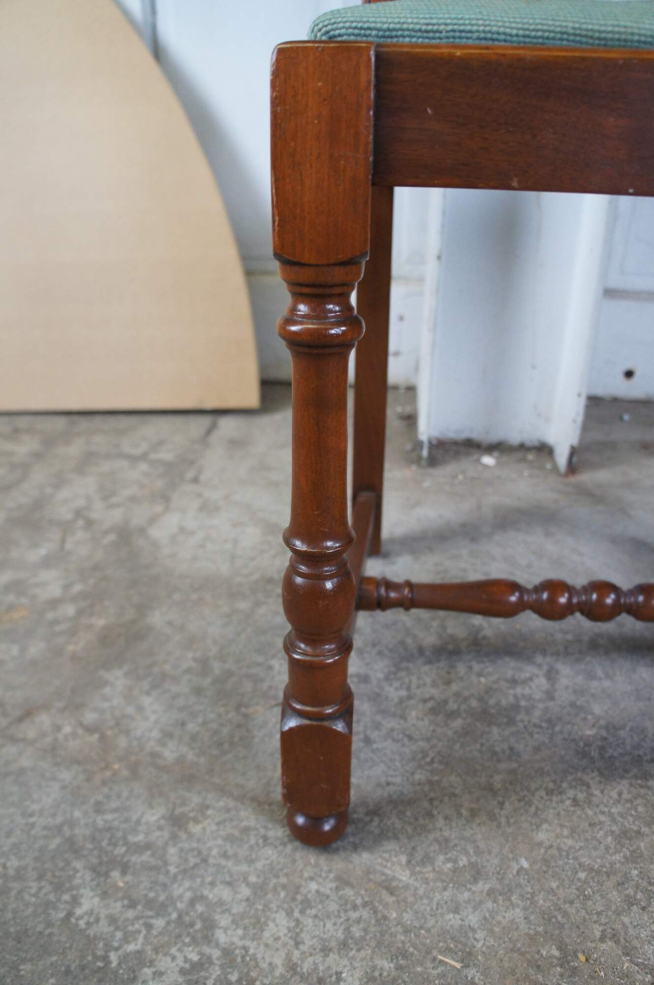Michigan Chair Company Victorian style side or desk chair, circa 1910-20. Made from walnut with an ornate crest rail and spindled back. Features a floral embroidered seat over turned legs connected by an H stretcher.