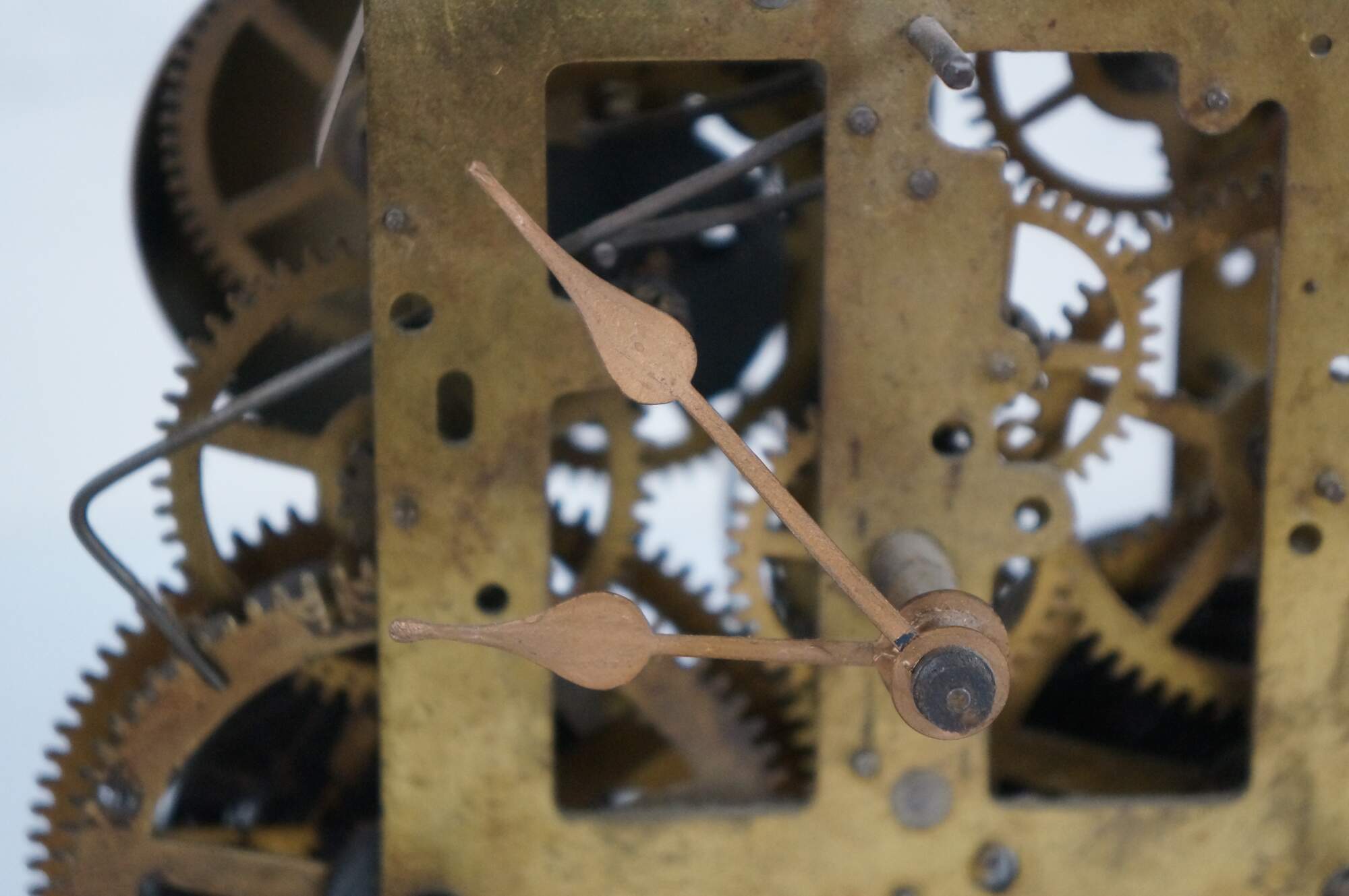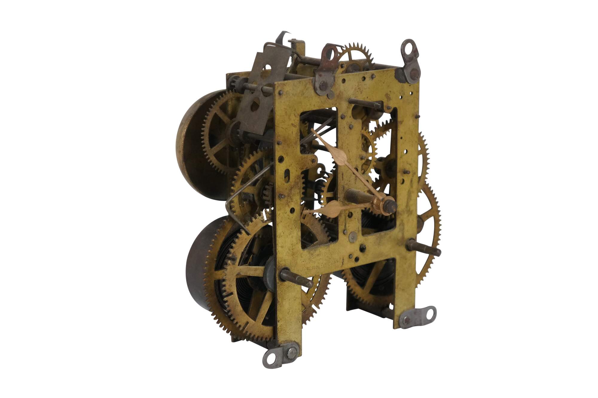 Early 20th century Sessions key wound, chiming clock movement with painted brass hands. The Sessions Clock Company - Forestville, Conn, USA.