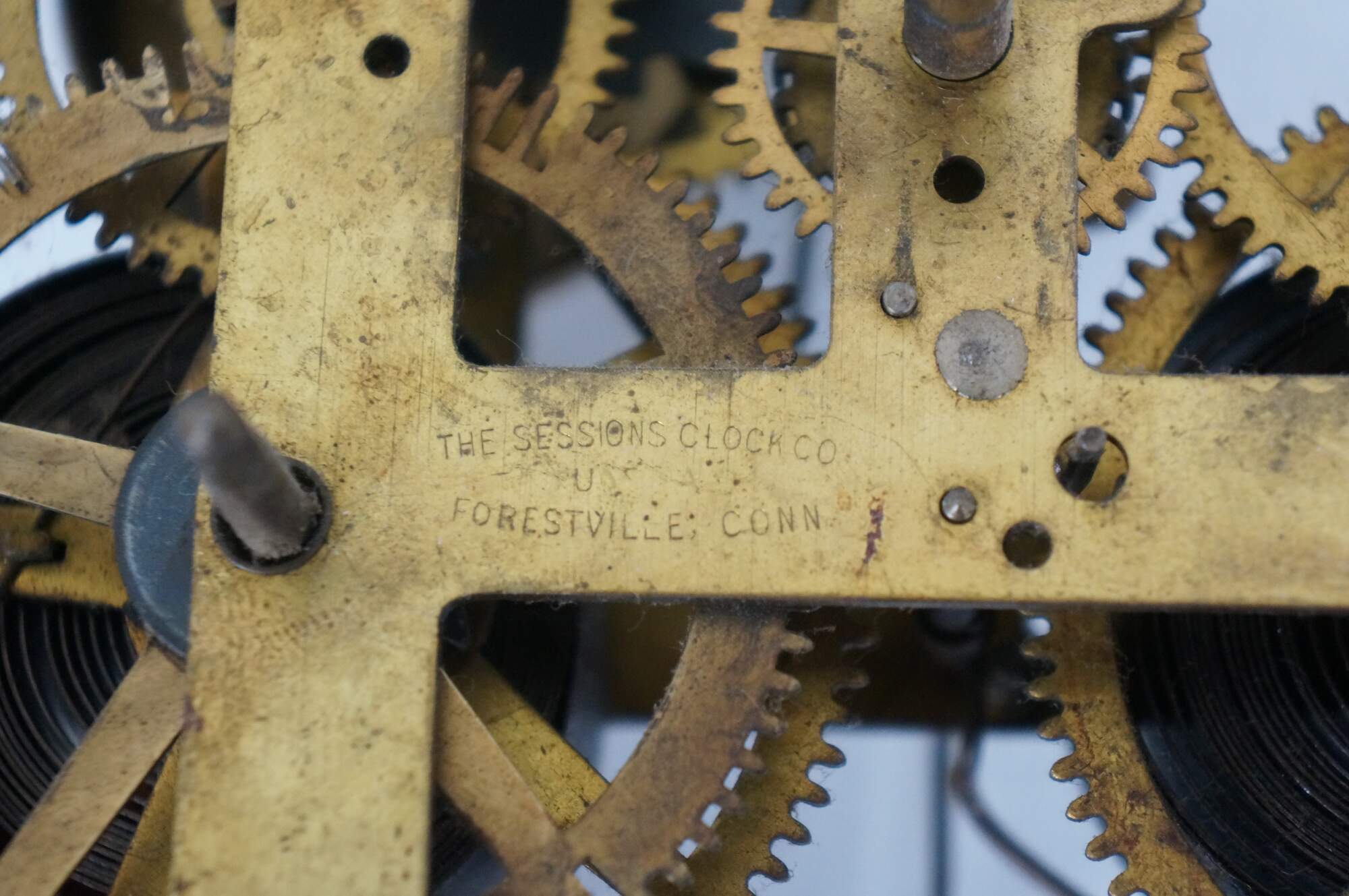 "The Sessions Clock Company ("Sessions") was one of several notable American clock companies centered in Connecticut. Sessions and its predecessor (E.N. Welch Company), along with the E. Ingraham Company, the Ansonia Clock Company, the New Haven Clock Company, the Seth Thomas Clock Company, the William L. Gilbert Clock Company, and the Waterbury Clock Company collectively produced most of the mechanical clocks made in America between the mid-19th century and 1950. At about 1935, Sessions ended its production of mechanical clocks and produced electrical clocks exclusively. In 1902, William E Sessions and other family members purchased a controlling interest in the E.N. Welch Company, a clock manufacturer located in Forestville, Connecticut. Sessions' father owned a foundry located in Bristol, Connecticut that produced cases for E.N Welch Co. On January 9, 1903, the company was reorganized as The Sessions Clock Company. Within a few years the Sessions Clock Company was producing clock movements, cases, dials, artwork and castings for their line of mechanical clocks. Between 1903 and 1933 Sessions produced 52 models of mechanical clocks, ranging from Advertisers, large and small clocks with logos of various businesses, to wall, or regulator clocks, and shelf or mantel clocks, designed for the home. Many of the Session clocks from this period are prized by collectors. In 1930, the company expanded to produce electric clocks and timers for radios, while continuing to produce traditional brass mechanical movements. Beginning at the end of World War II Sessions W Model (electric) was widely used by various casting companies for their clocks. The dial of the W Model read Movement by Sessions. In the early 1950s Sessions begin to produce timers for television. In 1956, Sessions was absorbed by a company interested mainly in their timing devices. In 1959, William K. Sessions, grandson of William E. Sessions left the Sessions Clock Company and formed the New England Clock Company. In 1960, one of the Sessions Clock buildings was sold to the Bristol Instrument Gears Company. Kept as the Sessions Company, the new owners ran the operation until 1969 when changes in the market forced the Sessions Company into liquidation. In 1970, the remaining buildings were sold to Dabko Industries, a machine parts manufacturer." (Source: Wikipedia)