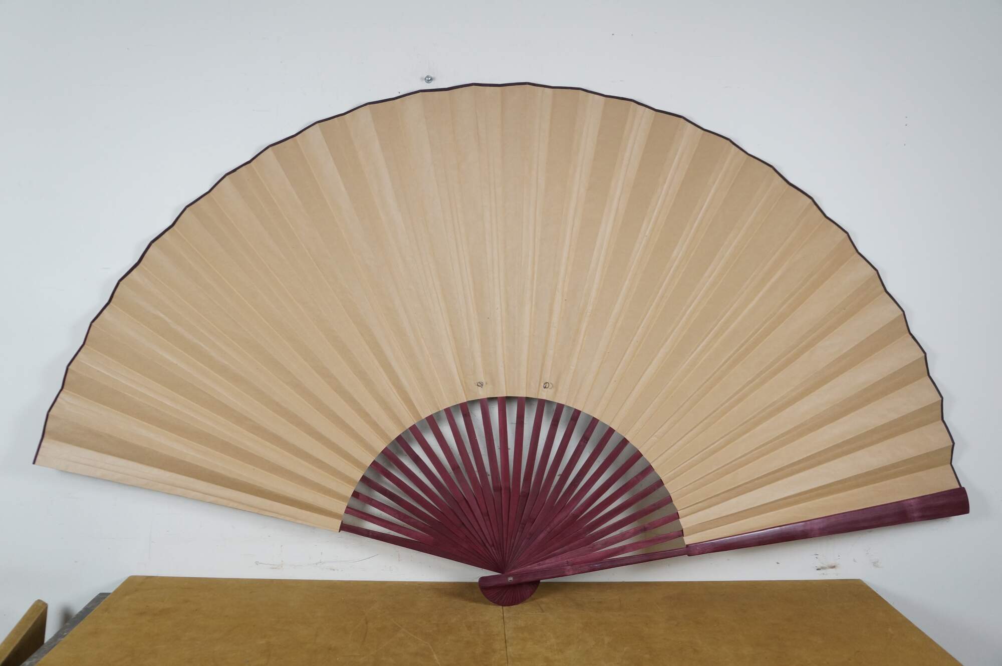 Monumental Vintage Chinese Hand Painted Peacock Wall Hanging Folding Fan 71"