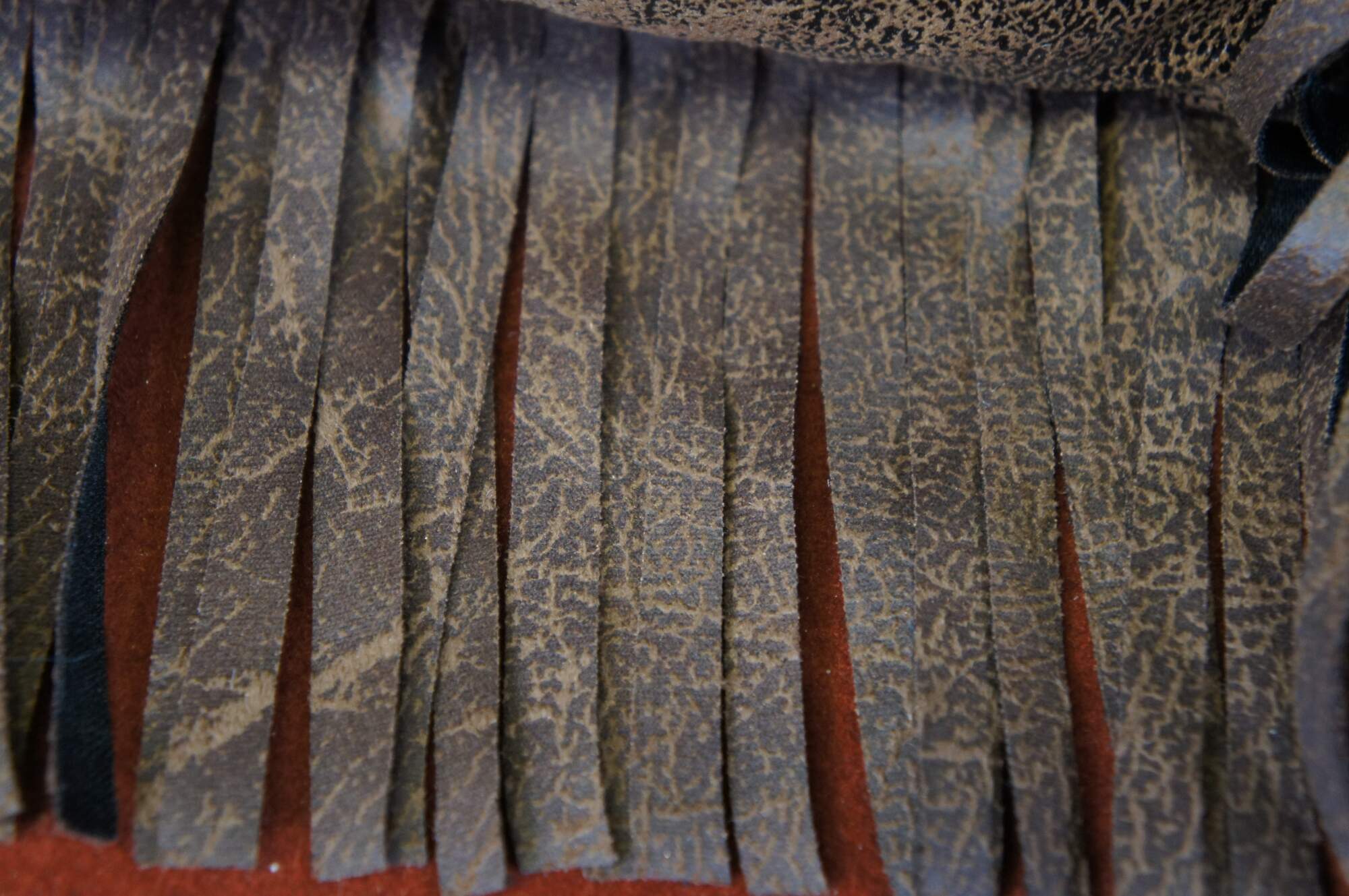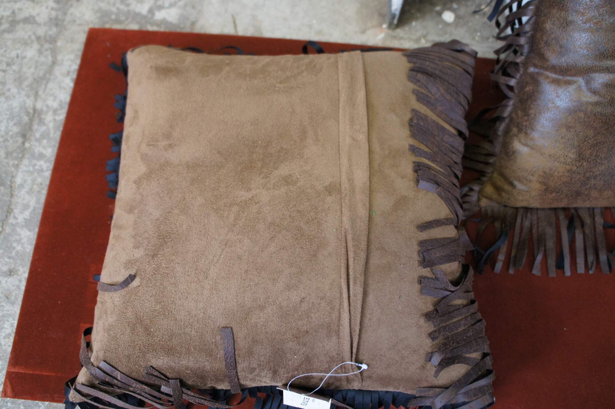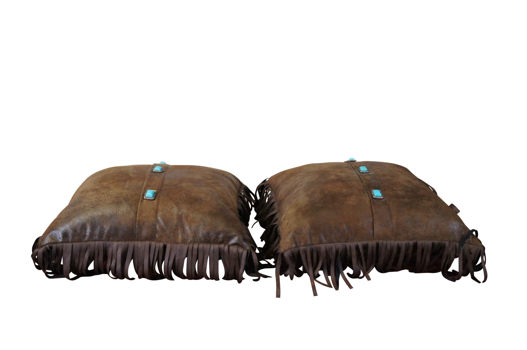 Pair of Wyoming Three Concho Pillows. Made from leather with turquoise and tassels.